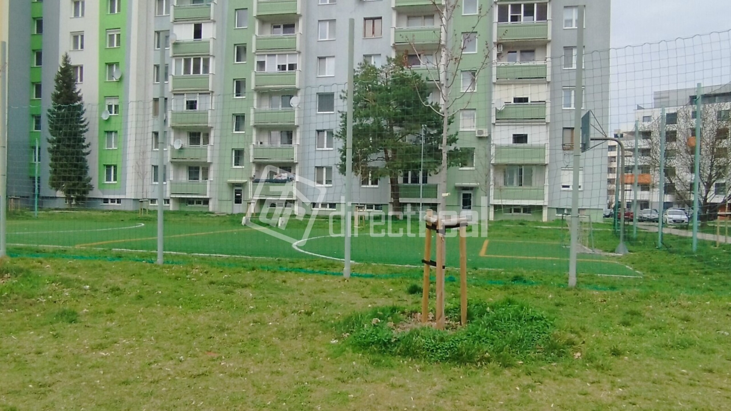 V okolí nájdete zeleň, parkovacie miesta a dokonca aj ihrisko. Výborná poloha v blízkosti reštaurácia, škola, škôlka, nemocnica uvedené robí z tohto bytu skvelú voľbu aj pre rodinu s deťmi.