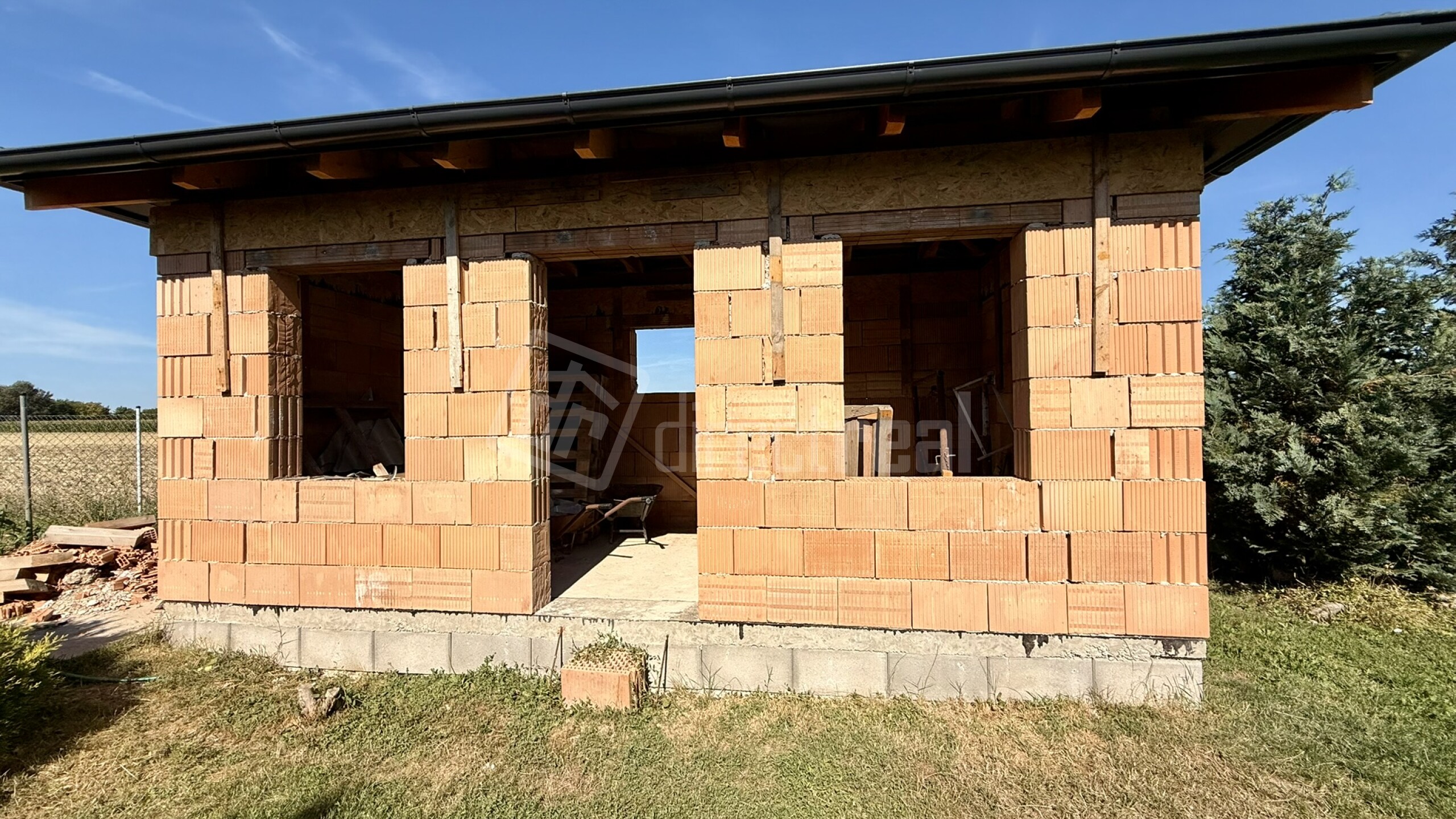 Za domom sa nachádza príjemná terasa s altánkom, ideálna na oddych či grilovanie. Na pozemku je začatá stavba záhradného domčeka (6 × 3 m), ktorá ponúka možnosť dokončenia podľa vlastných predstáv.