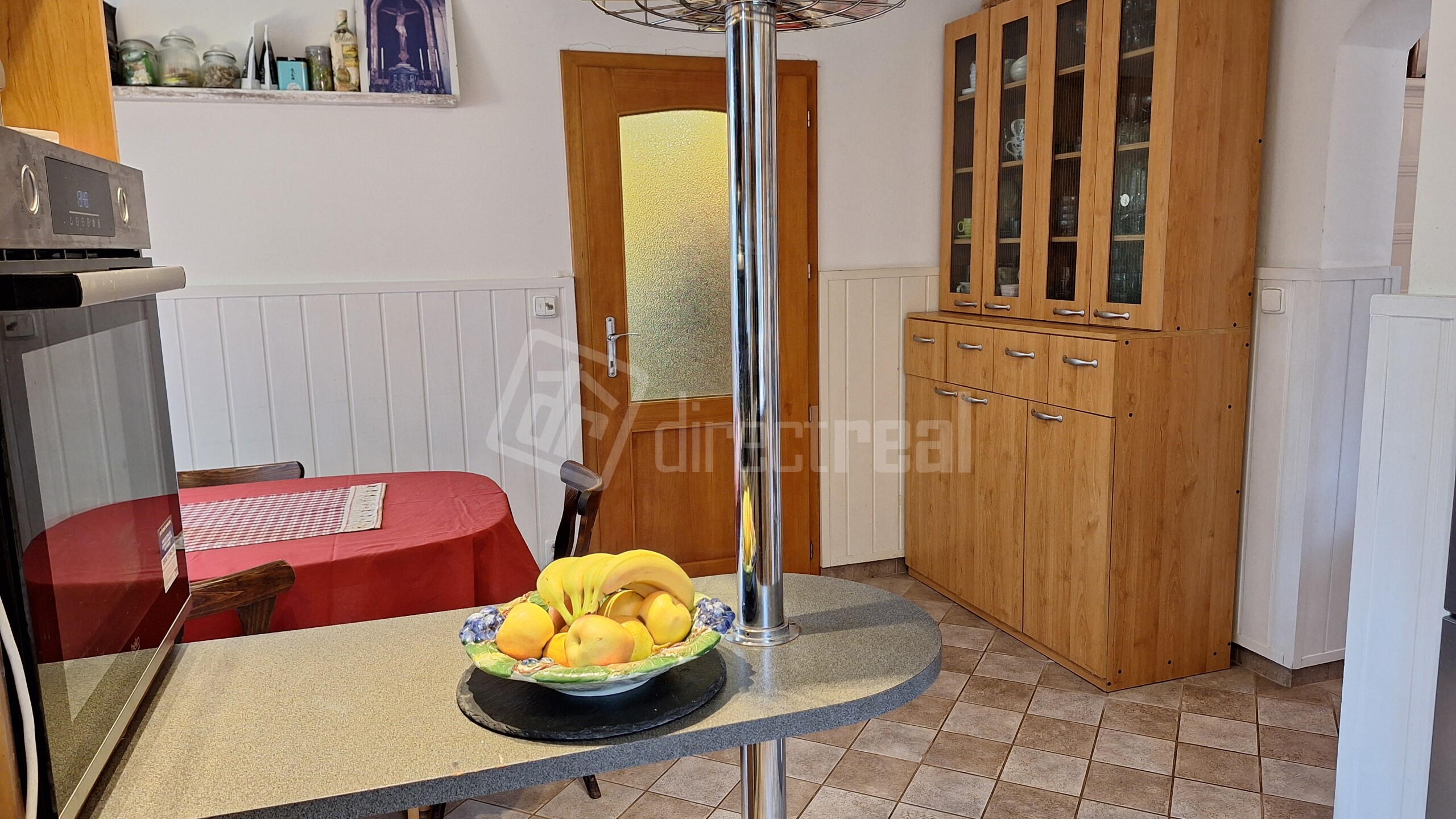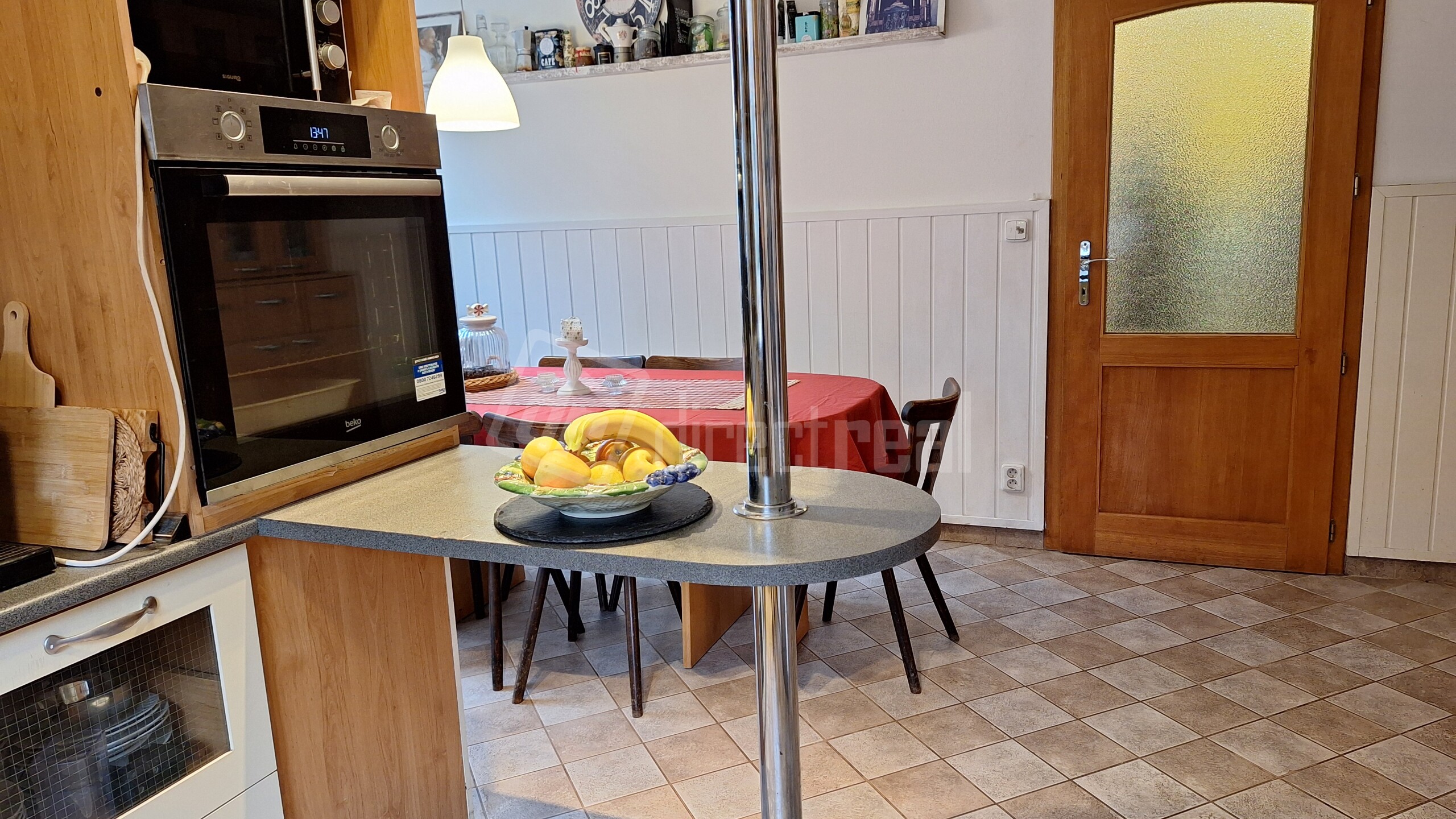 Kuchynská linka je do tvaru písmena "U" so zabudovanou 5-roč. umývačkou riadu zn. BOSCH a 2-roč. elektrickým sporákom zn. BEKO a plynovou varnou doskou. Z kuchyne sú dvere do špajze.