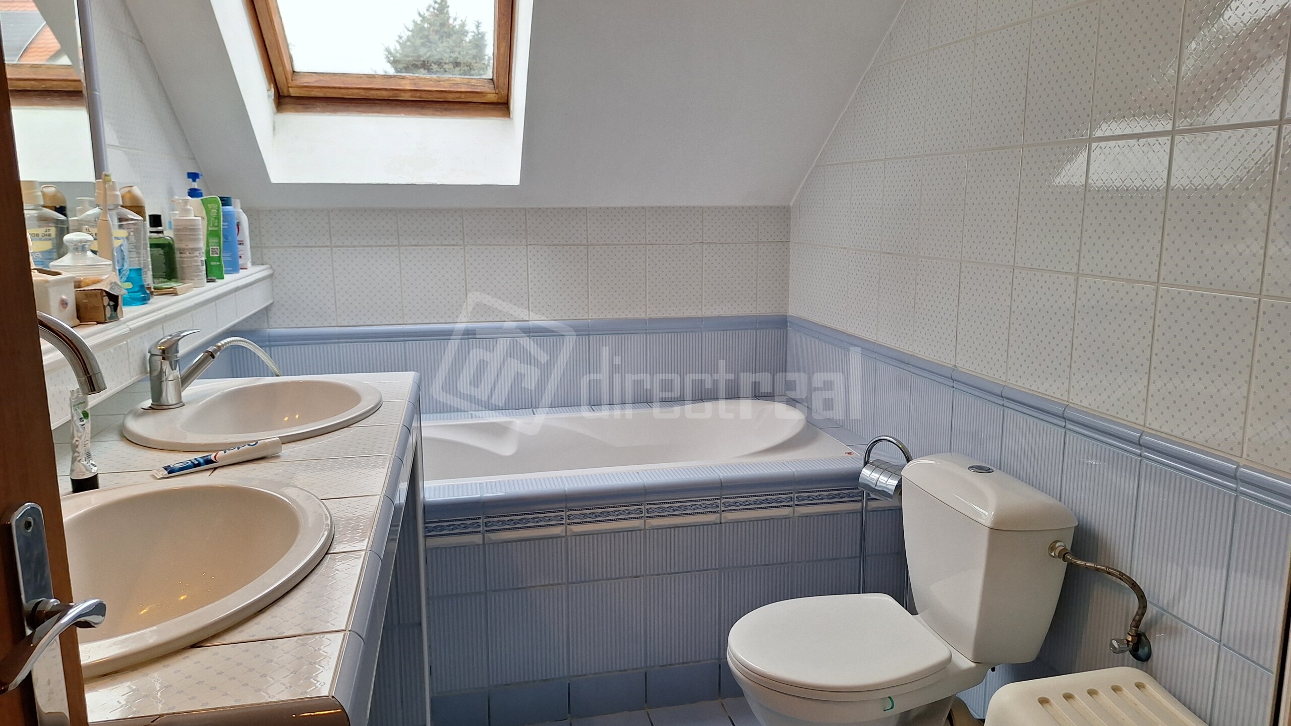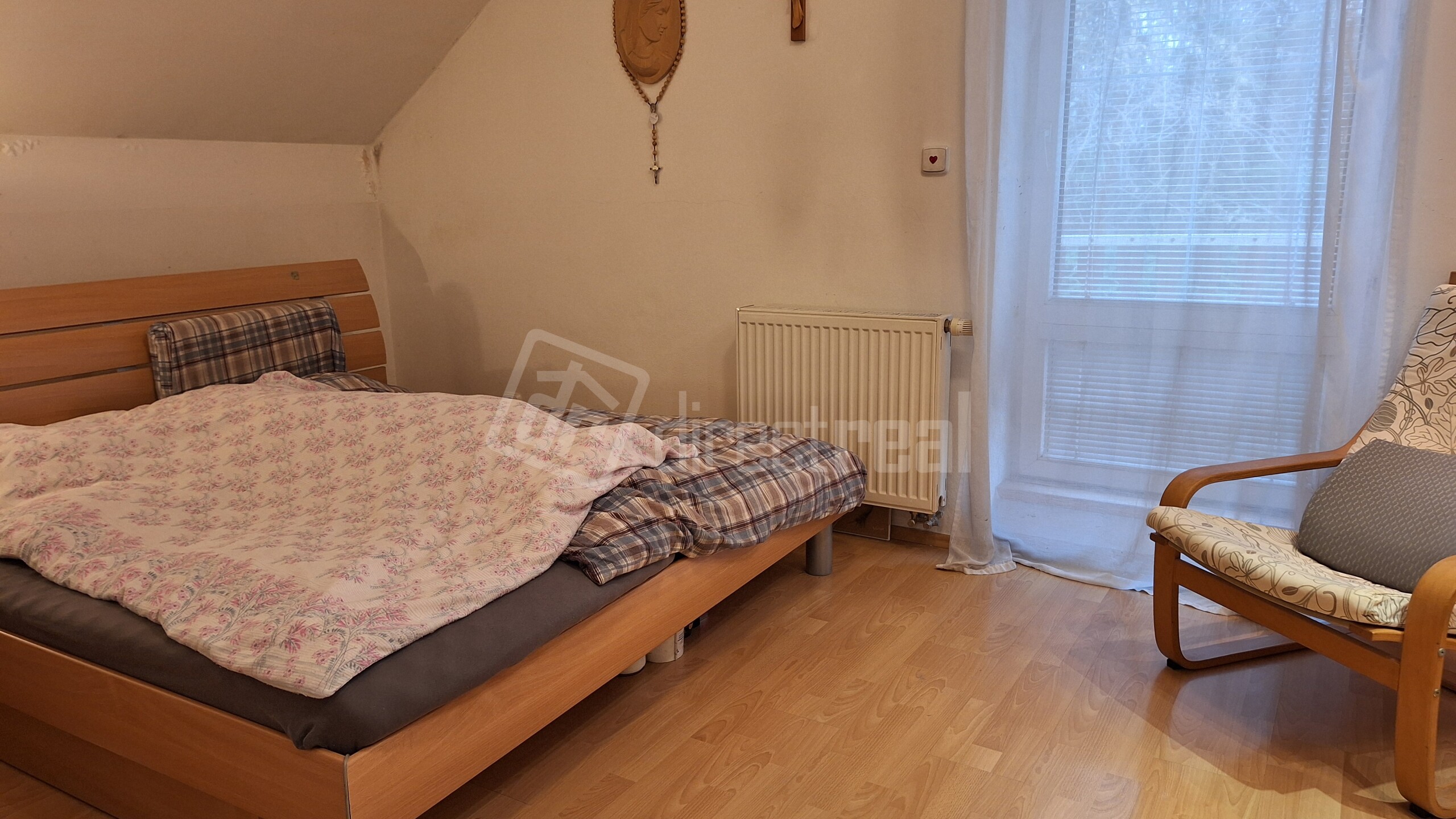 Na poschodí je tiež kúpeľňa s vaňou, sprchovacím kútom, dvoj-umývadlom a WC. V tejto kúpeľni sú nové vodovodné batérie.