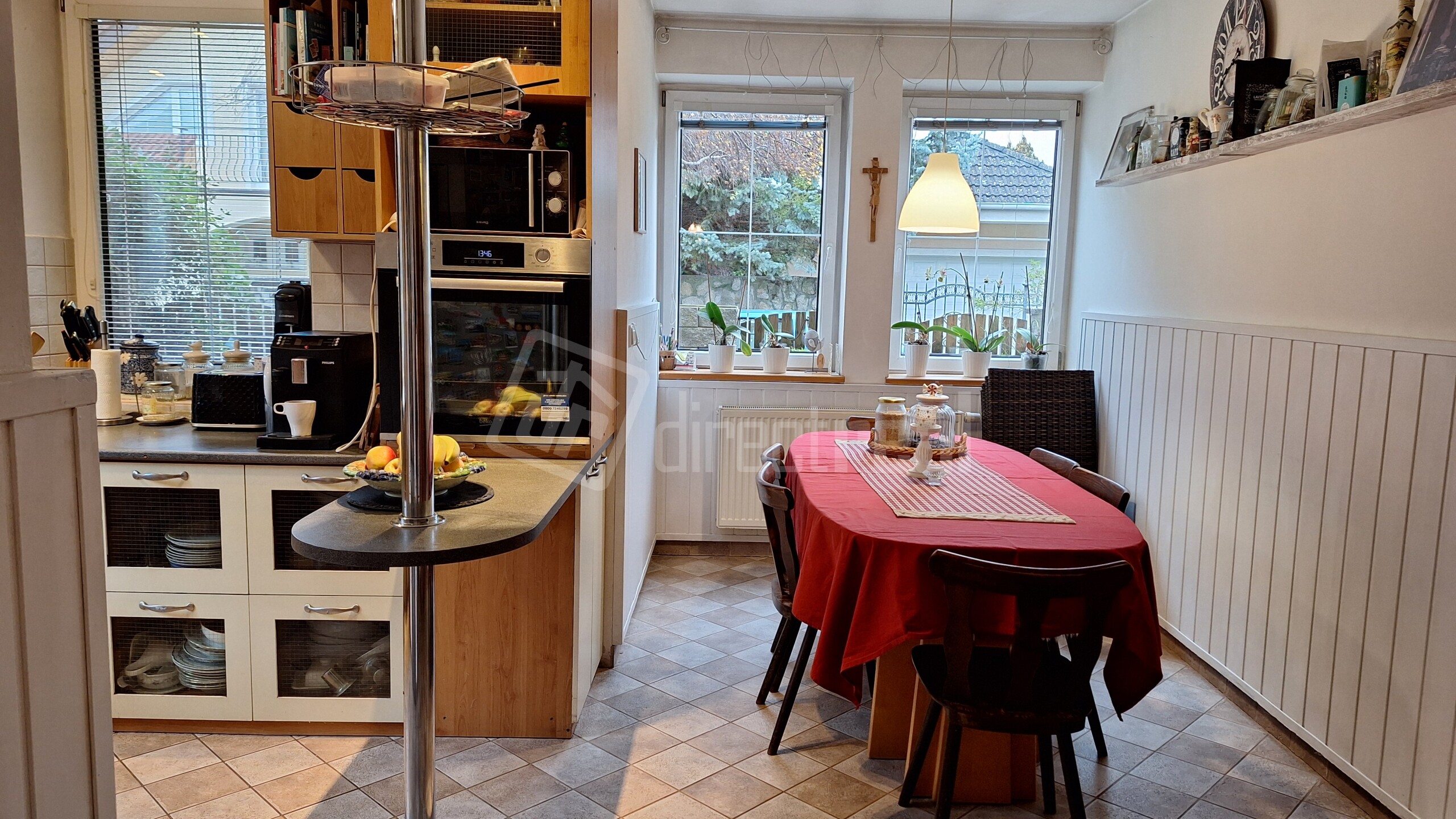 Kuchyňa má okná na juh a západ a jedáleň má 2 okná na západ.