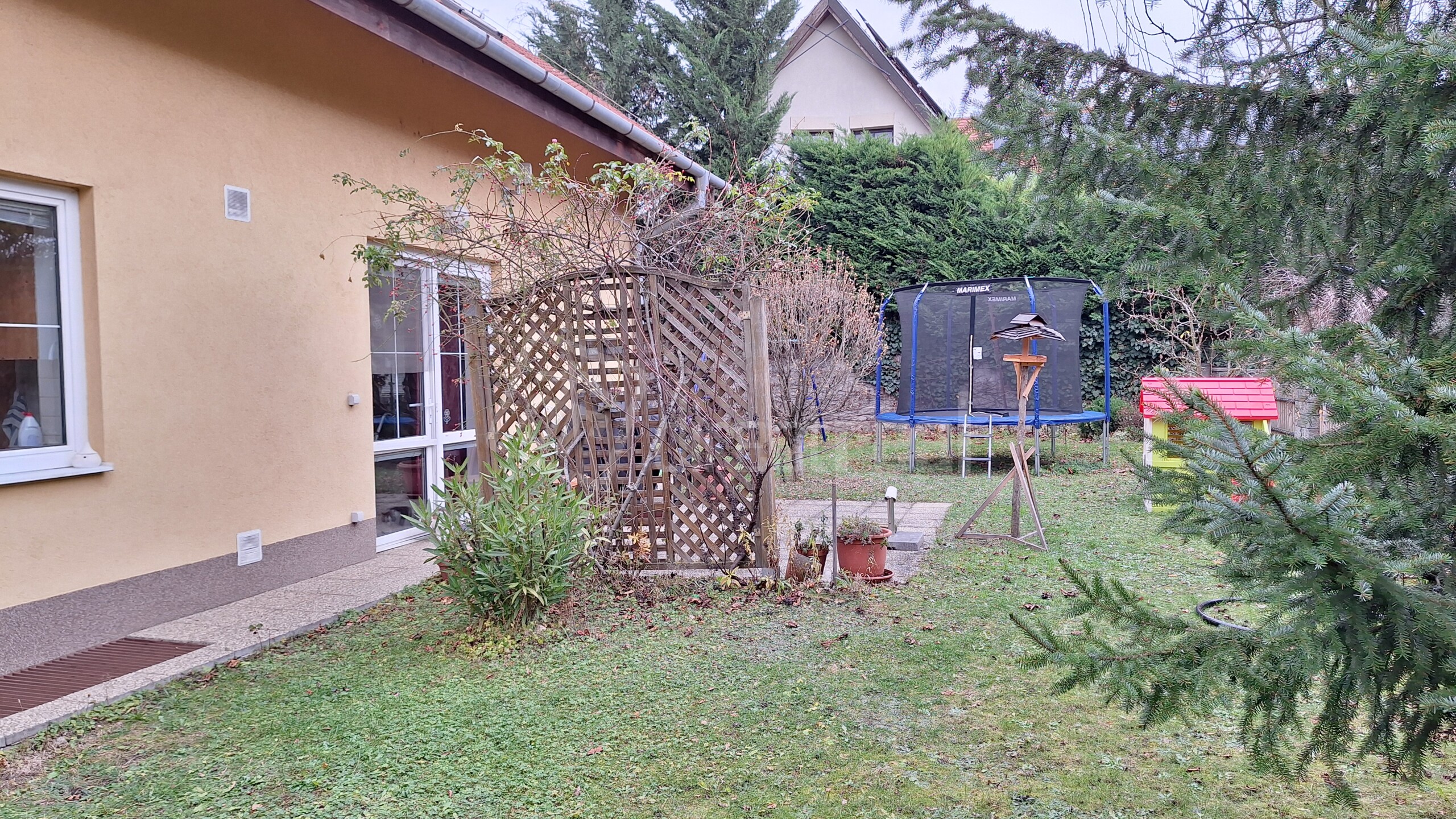 Dom má zastavanú plochu 117 m2, obytná plocha je 234 m2 a je čiastočne podpivničený s rozlohou 85 m2.