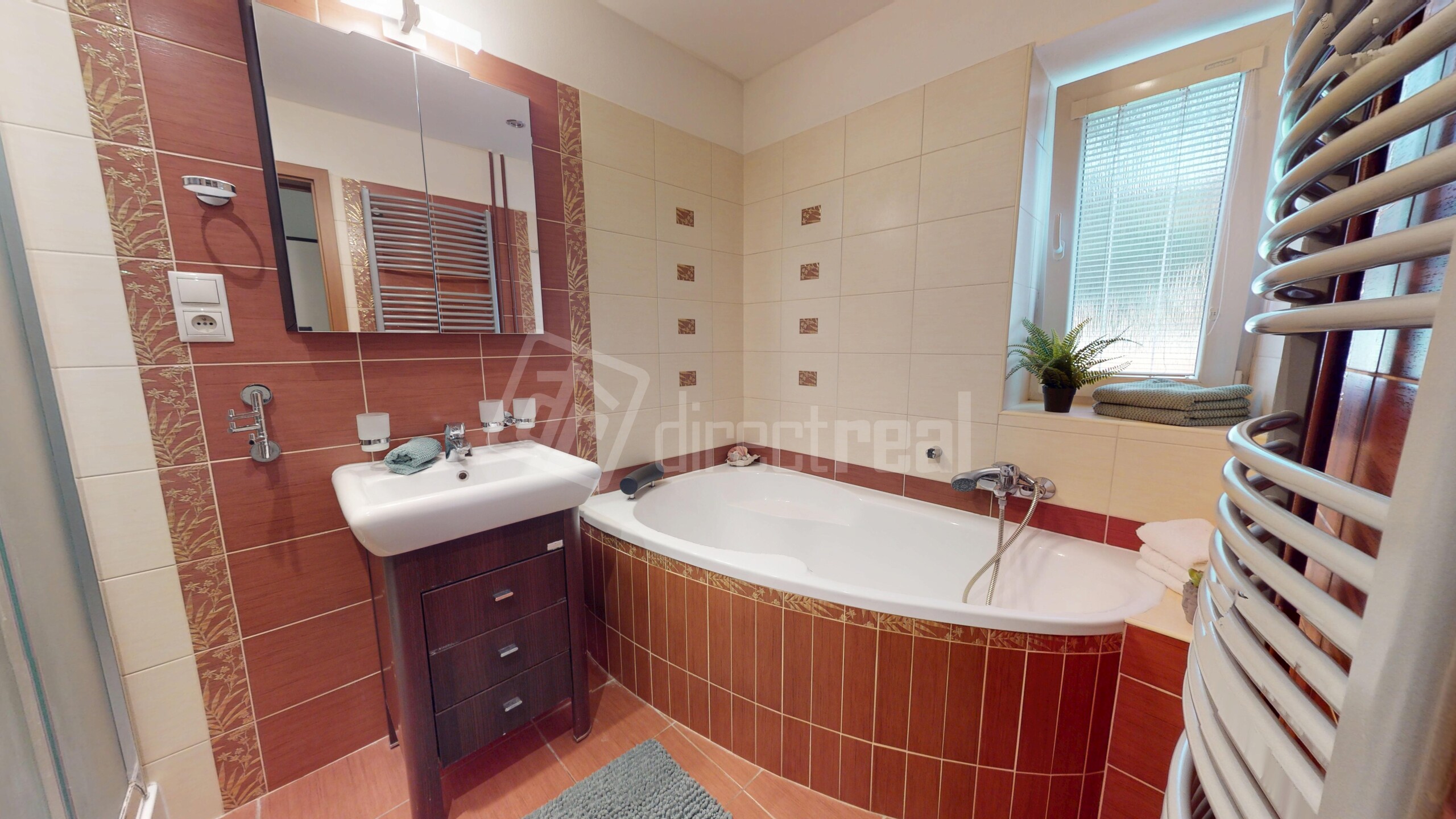 •kúpeľňa, ktorá je výnimočná – nájdete tu sprchový kút, vaňu, umývadlo a navyše aj okno, takže je vždy plná denného svetla