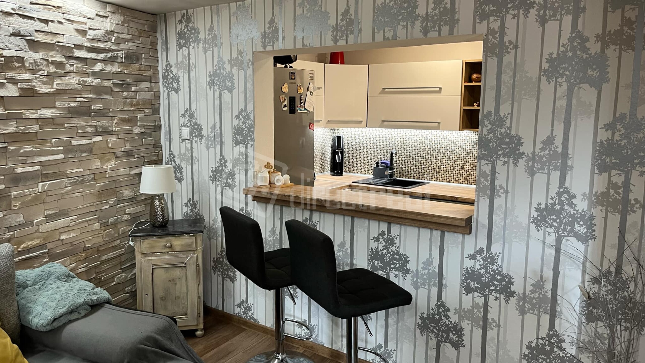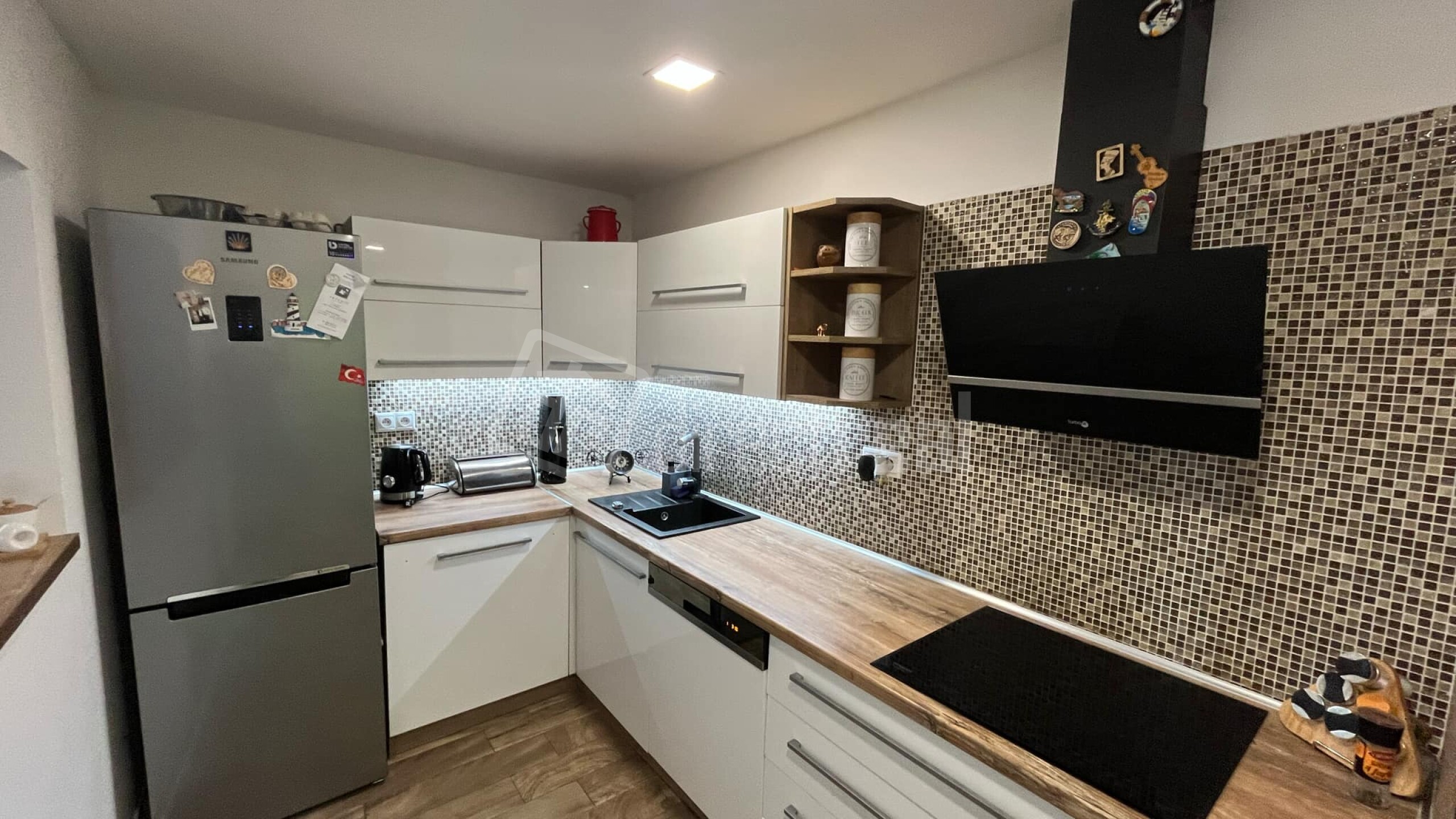 - Prízemie tvorí vstupná chodba, elegantná kuchyňa prepojená s priestrannou obývacou izbou, praktická komora a kúpeľňa so sprchovým kútom a toaletou. Kuchyňa a obývacia izba prešli kompletnou a vkusnou rekonštrukciou pred dvoma rokmi, čím vznikol moderný, no zároveň útulný obytný priestor.