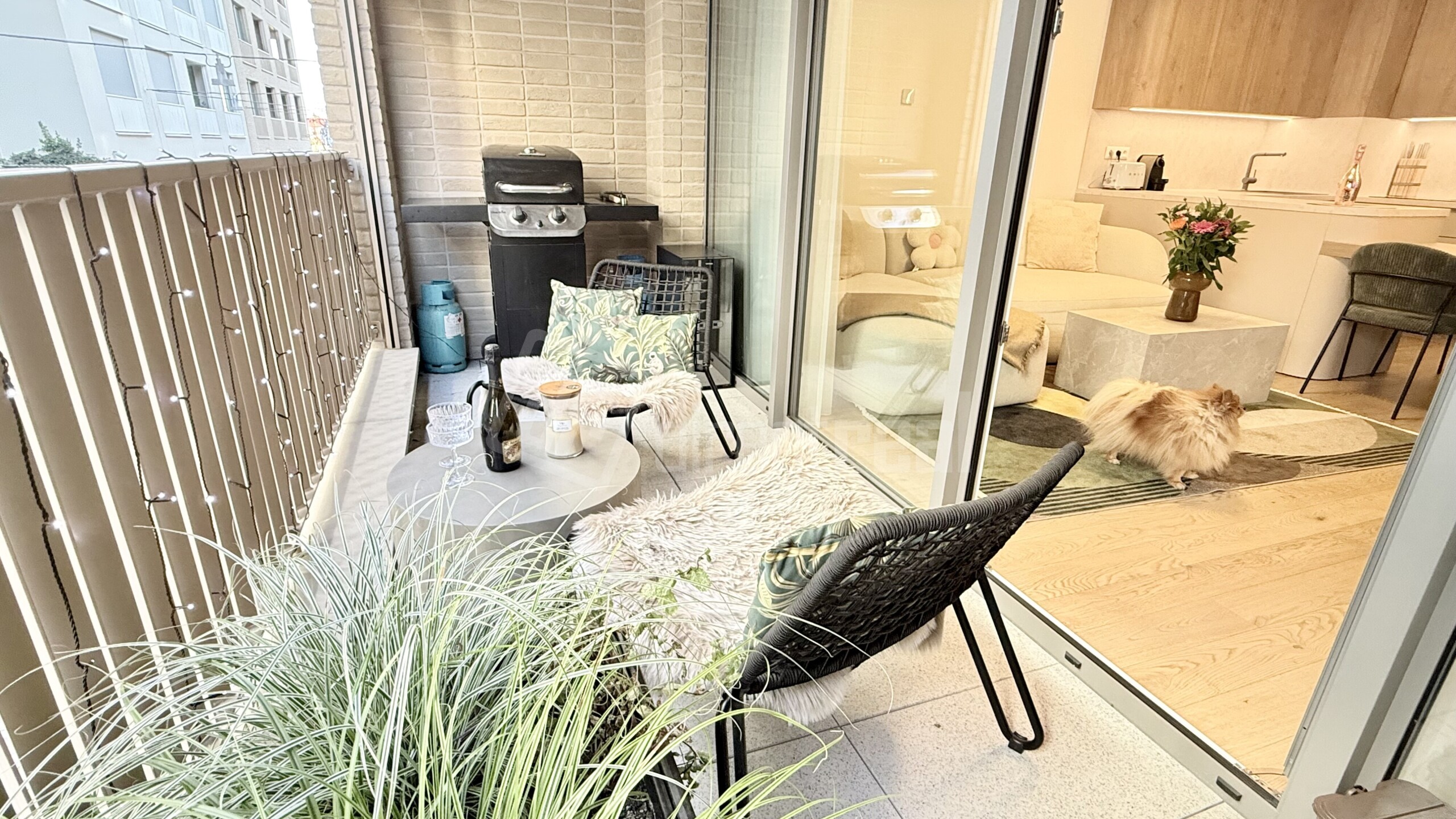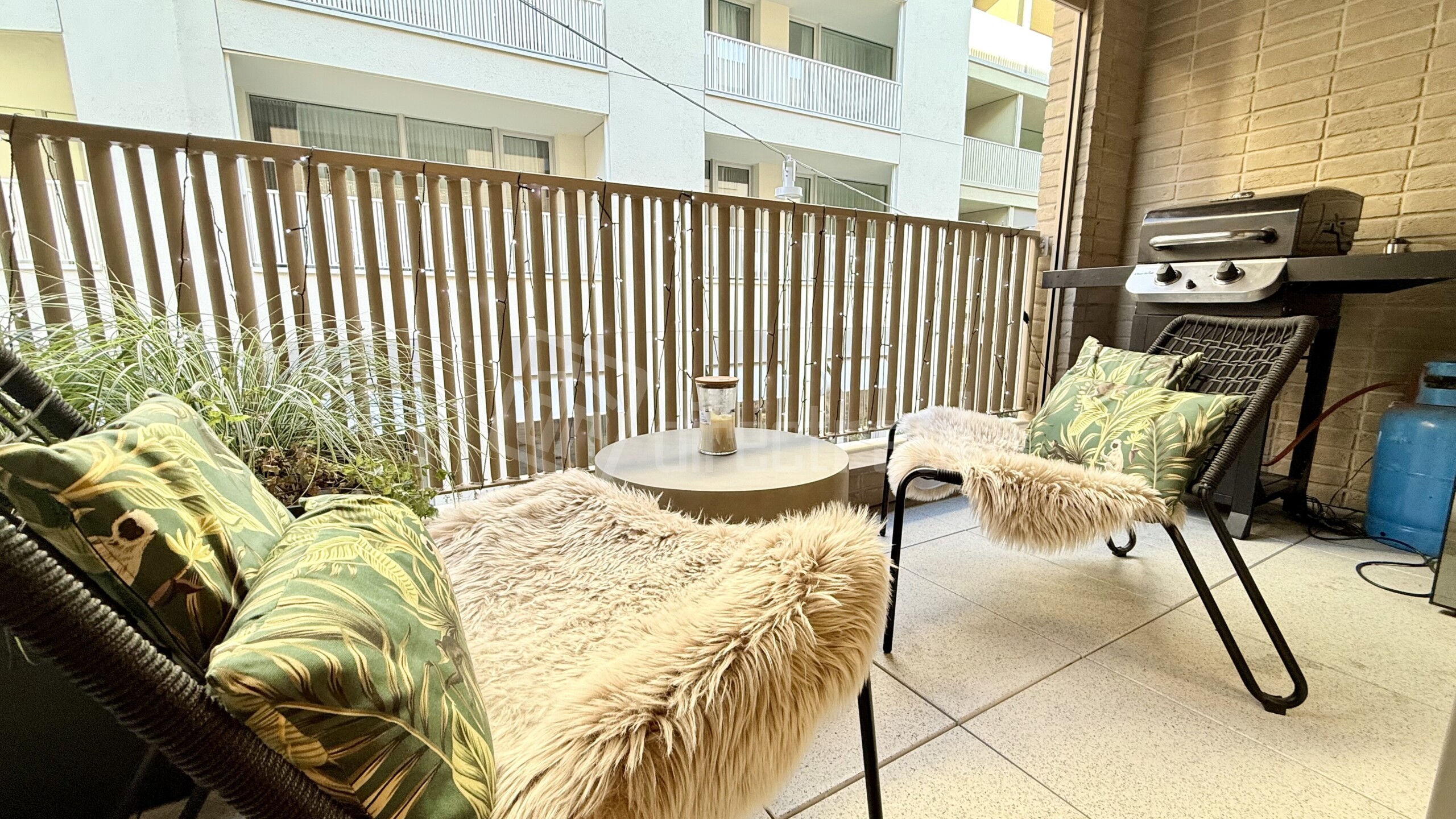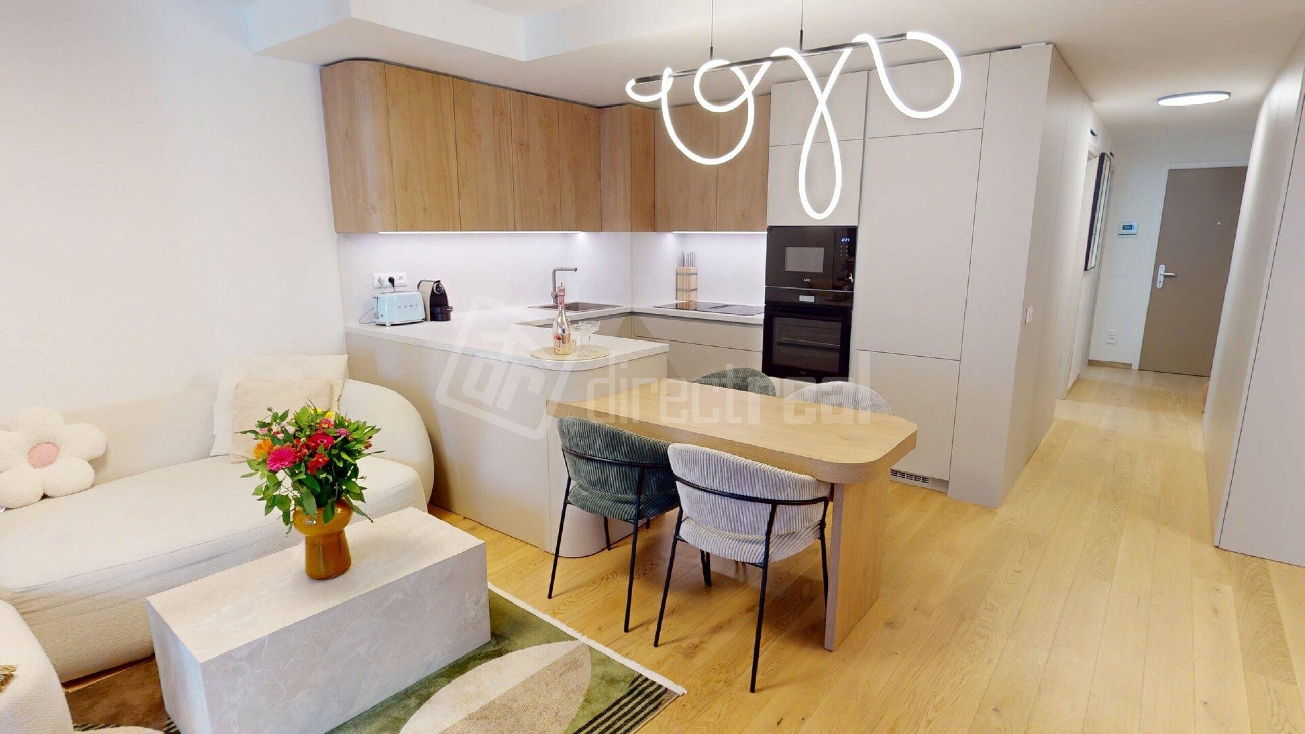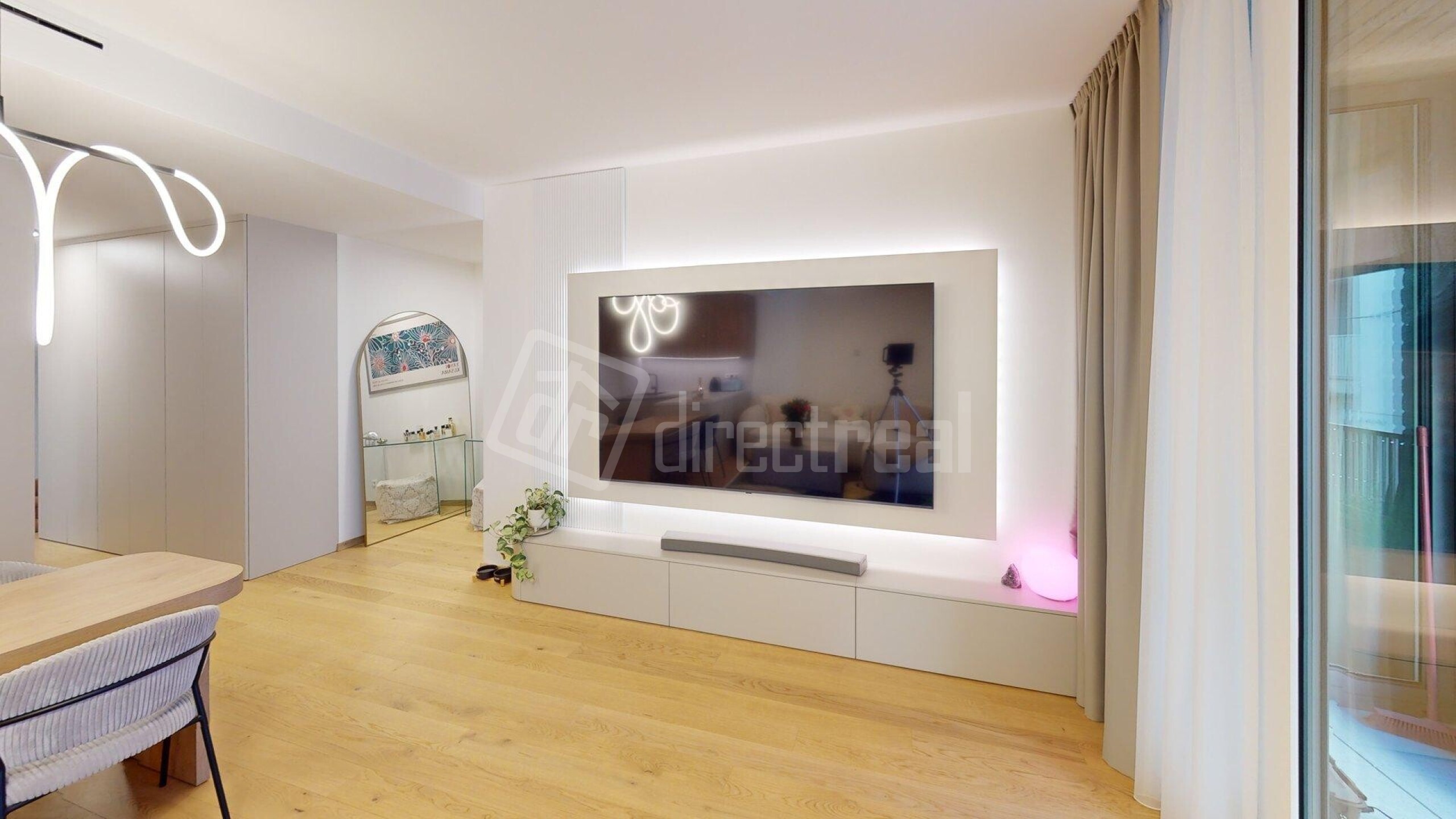 Podlahy v celom byte sú drevené s výnimkou kúpeľne a WC, kde je položená dlažba. Na oknách v byte sú blackout závesy. Kuchynská linka má zabudované spotrebiče a k dispozícii je i kuchynské náradie a náčinie. Celý byt je orientovaný na 2 svetové strany SV a SZ. V obývacej izbe je TV s impozantnou uhlopriečkou 217cm. Optimálnu vlhkosť v byte a kvalitu vzduchu v interieri vám zabezpečí rekuperácia. Lódžia je miesto pre oddych i v letných horúcich mesiacoch, pretože poskytuje príjemný i dostatok súkromia vdaka screen rolete. The floors throughout the apartment are wooden, except for the bathroom and toilet, where tiles are laid. The windows in the apartment have blackout curtains. The kitchen unit includes built-in appliances and is equipped with kitchen utensils and tools. The entire apartment faces two directions: northeast and northwest. In the living room, there is a TV with an impressive 217 cm diagonal. Optimal humidity and indoor air quality are ensured by the heat recovery ventilation system. The loggia is a place for relaxation even during the hot summer months, as it provides comfort and plenty of privacy thanks to the screen blind.