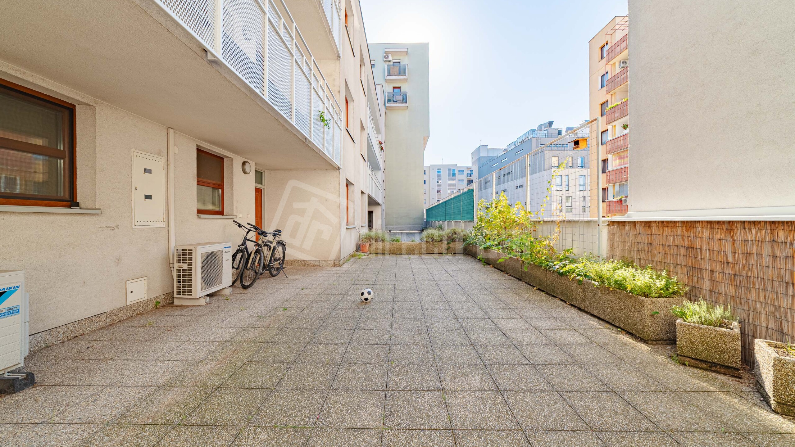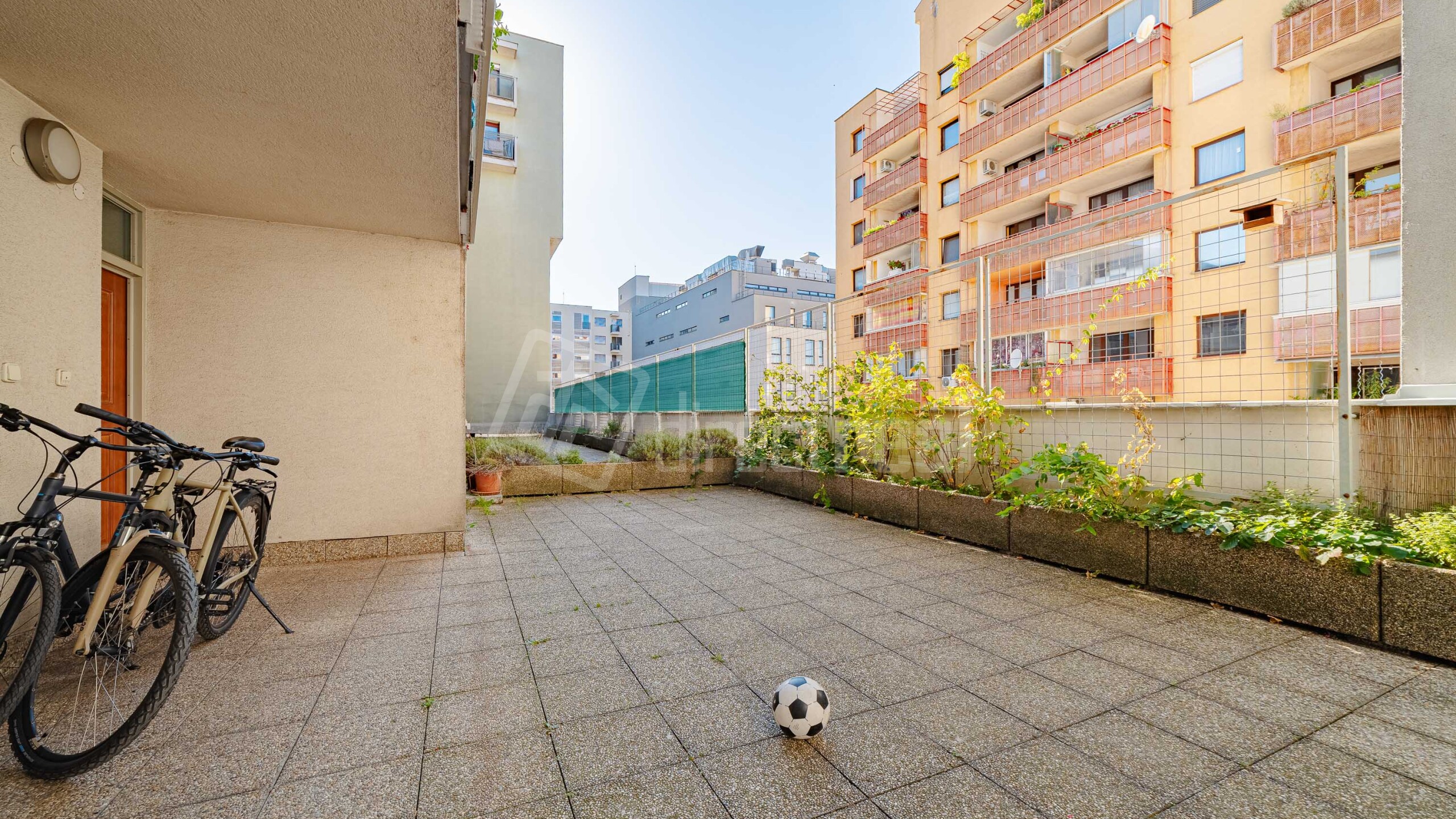 - Vnútroblok a komunitná terasa: bezpečný mikro-svet v centre mesta. Vaši bývanie získa úplne nový rozmer. Uzavretý dvor kam pustite deti bez toho, aby ste sa o ne báli. Nájdete tu športoviská, priestor pre deti, pokojné posedenie pre dospelých.