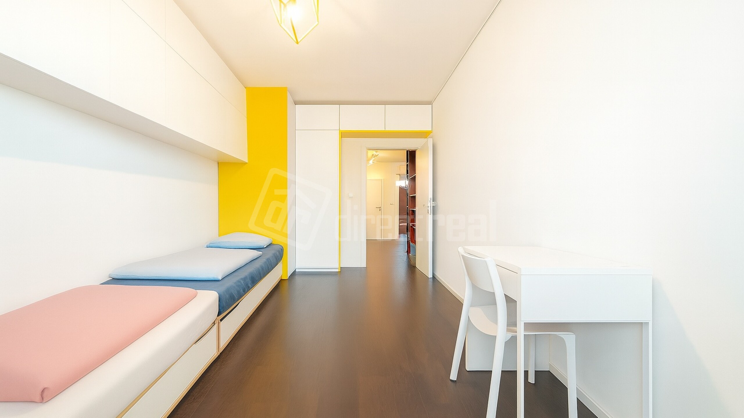 - Izba so vstavanými skriňami ponúka súkromie aj flexibilitu – ľahko z nej spravíte pracovňu alebo hosťovskú izbu. Aj z nej sa dostanete na loggiu, čo izbe pridáva svetlo a priestor.