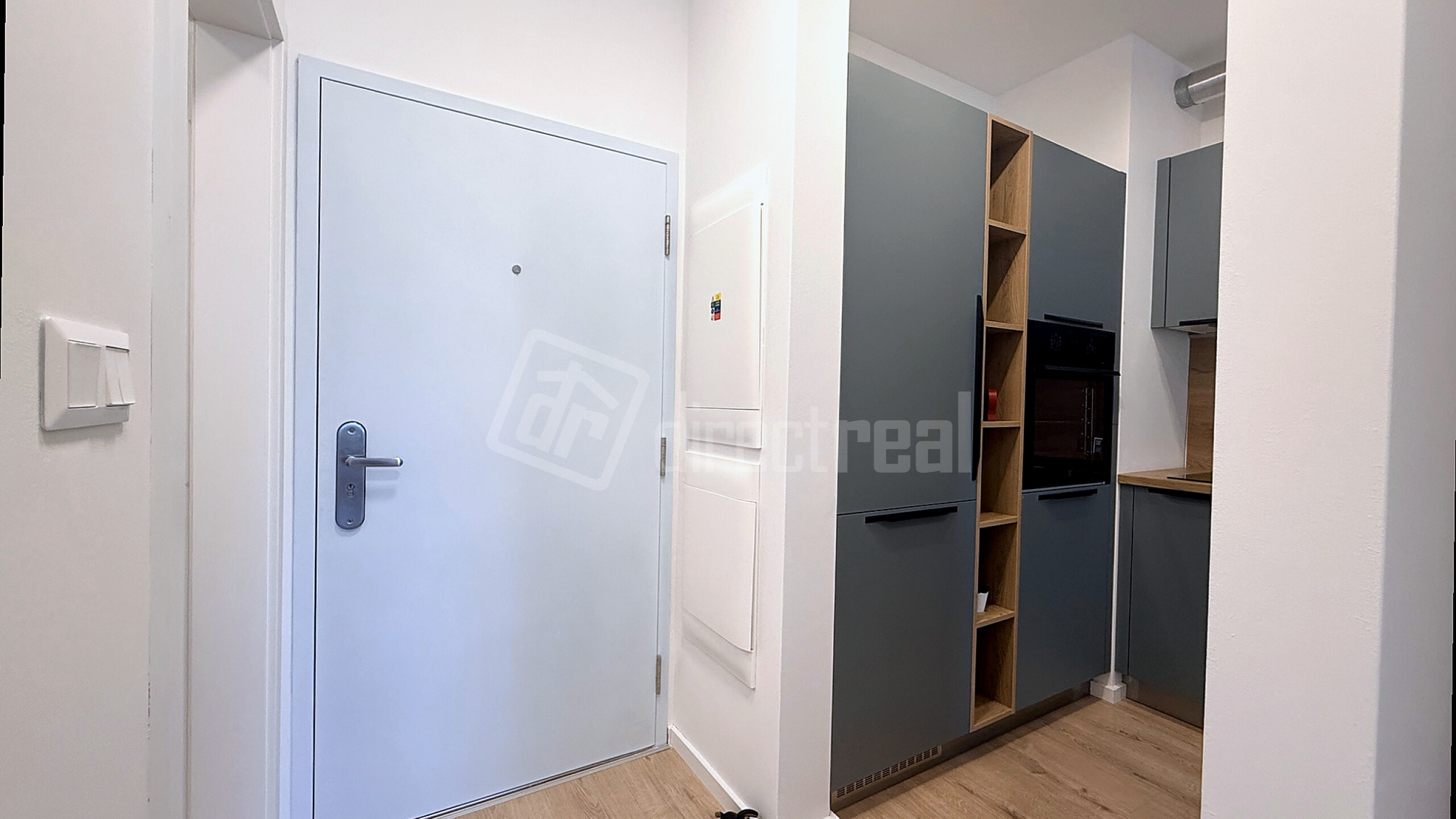 Kuchyňa: Moderná linka (sivo-modrý dizajn) so vstavanou , varnou doskou a rúrou.