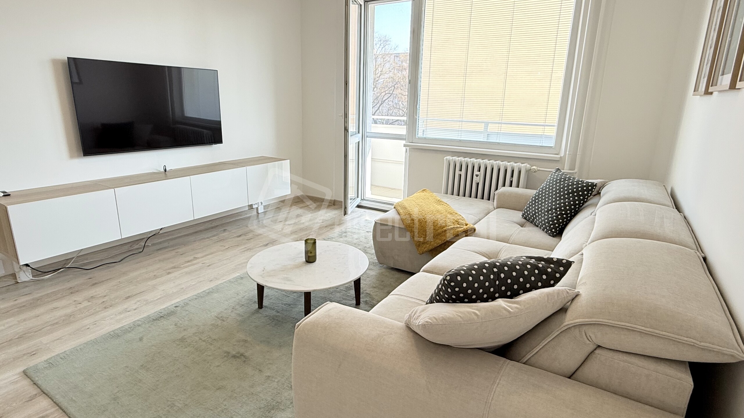 Celý byt je po rekonštrukcii s novými maľovkami a vybavený novým nábytkom a zariadením. Kuchynská linka ma zabudovanú elektrickú rúru a indukčnú várnu dosku s digestorom. Chladnička s mrazničkou je samostatne stojaca. Vybavenie kuchynským náčiním je základné. Sedacia súprava má elektrický ovládač na výsuv sedákov pre ešte väčší komfort. Na lódžii je súprava stoličiek so stolíkom pre relax počas voľných chvíľ. Optický internet pre nerušený work-from-home v cene.
