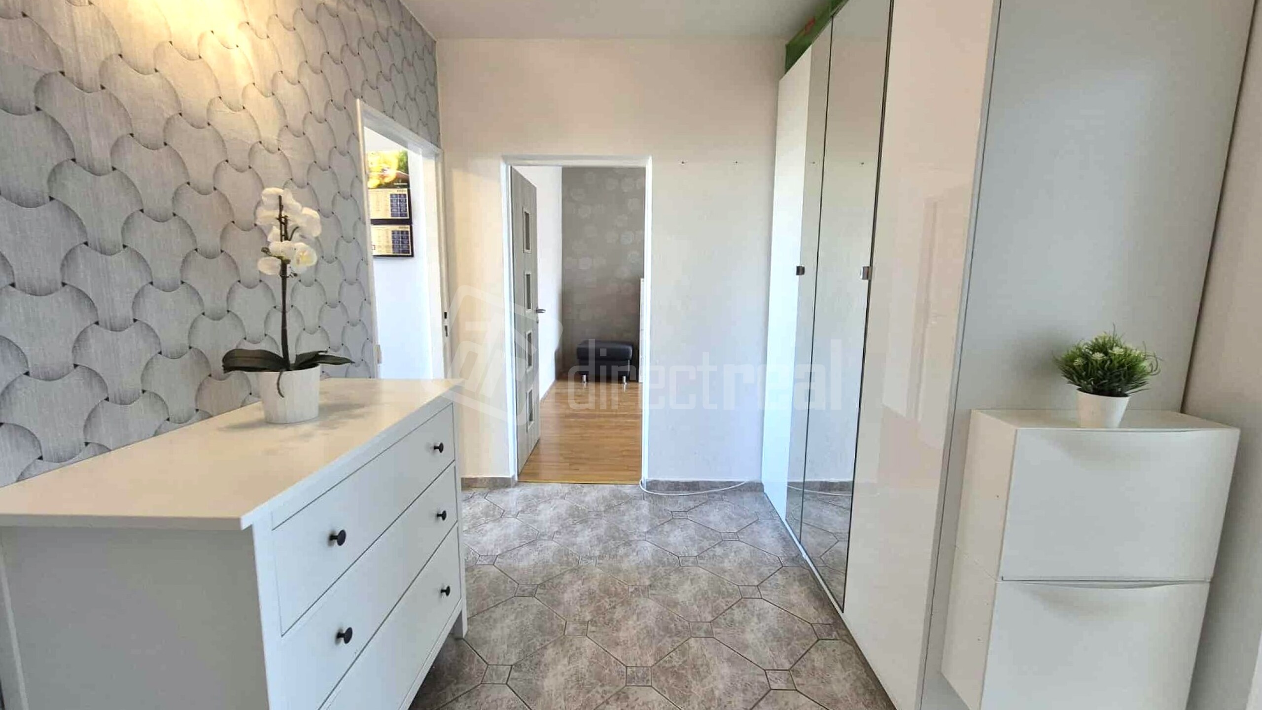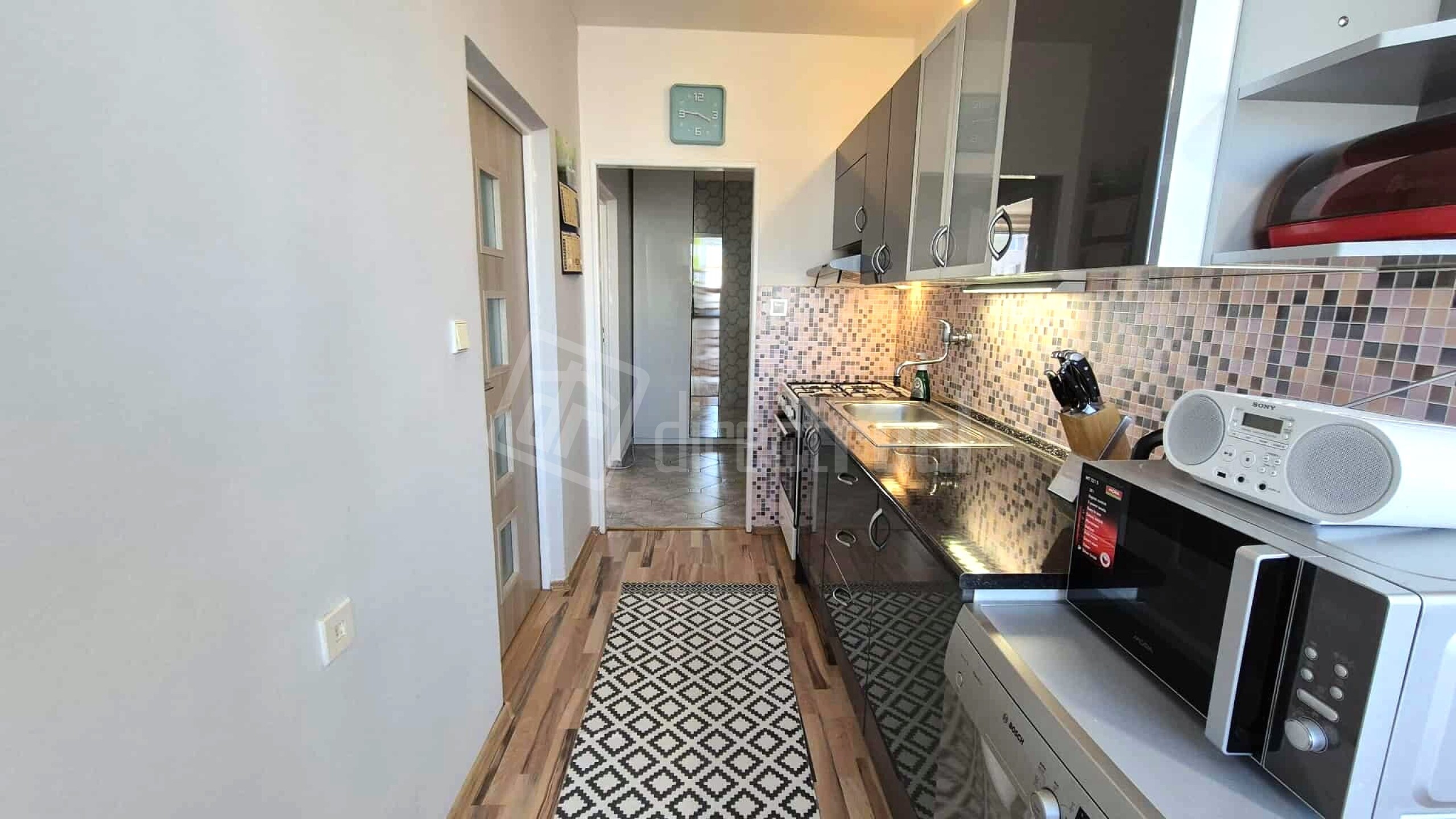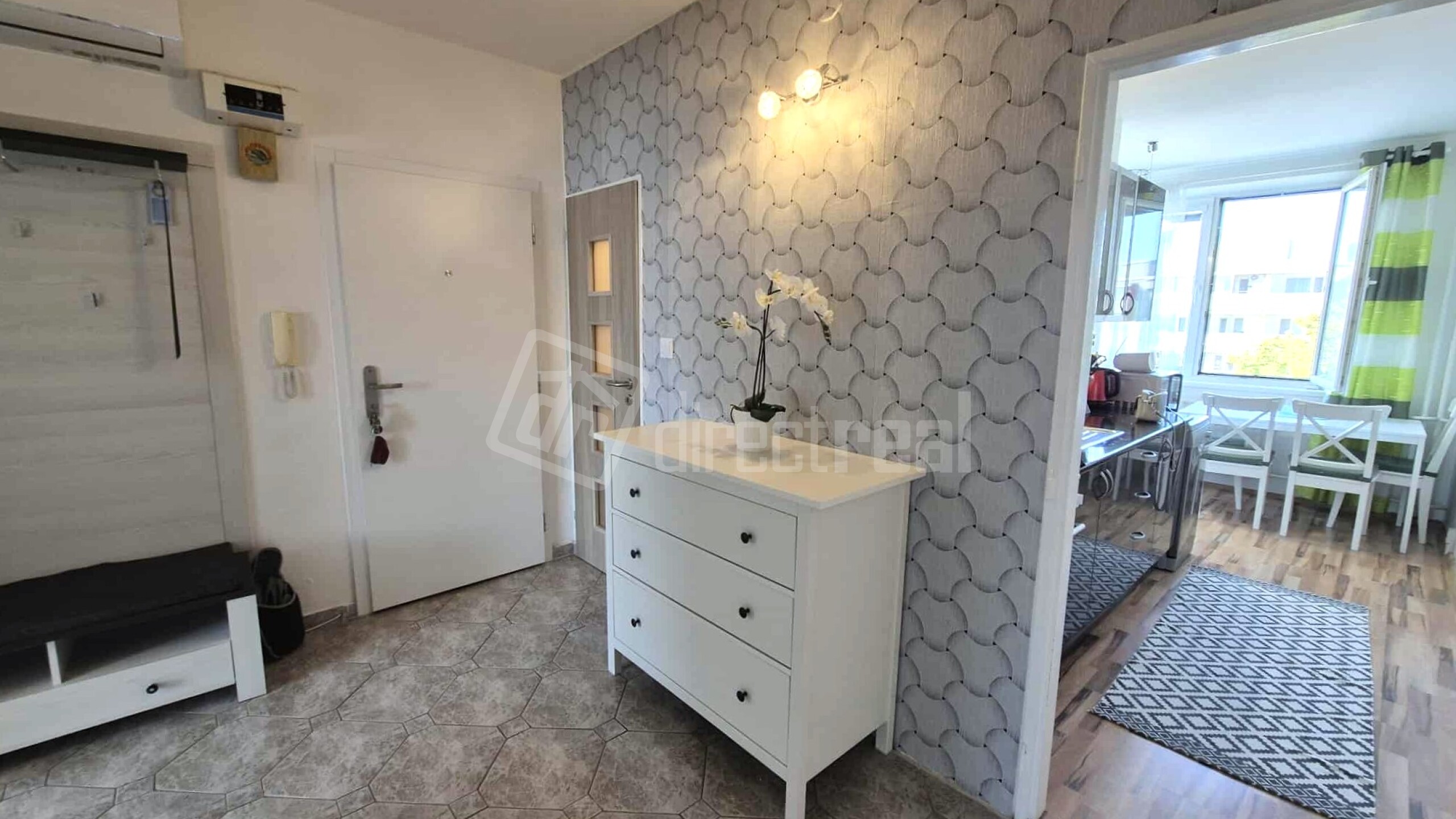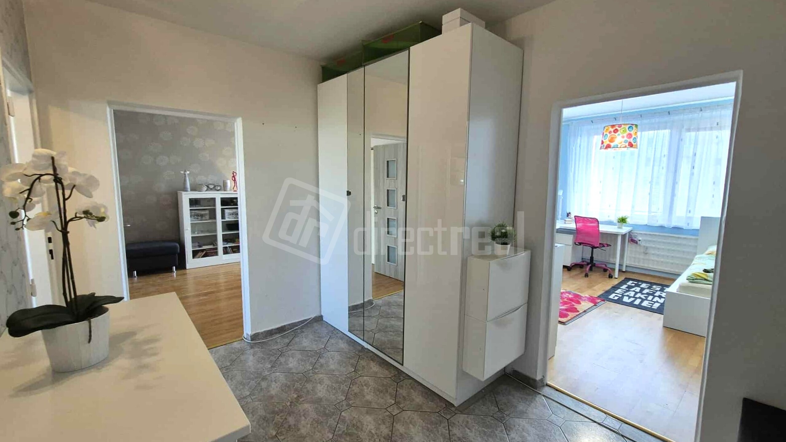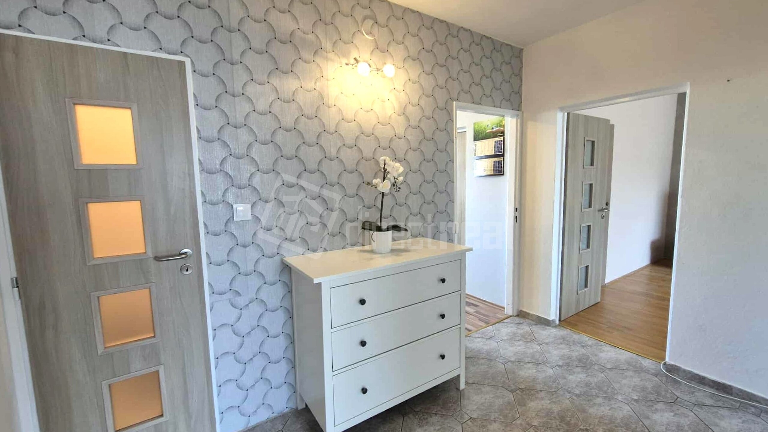 Vstup do bytu je cez bezpečnostné dvere do priestrannej chodby. Z nej je vstup do kuchyne, obývačky, detskej izby a na WC.