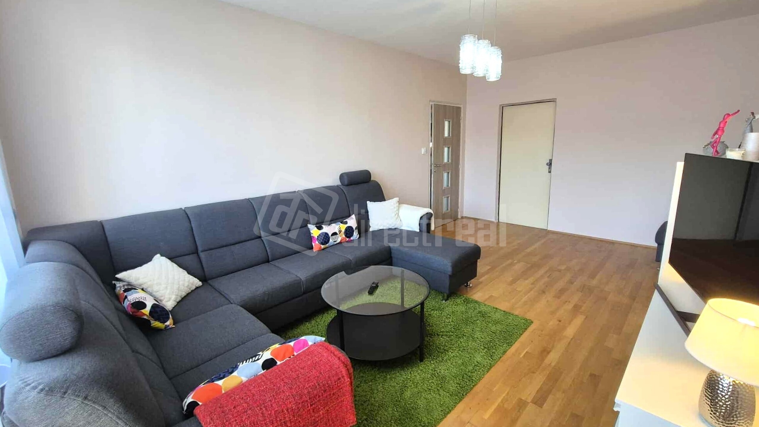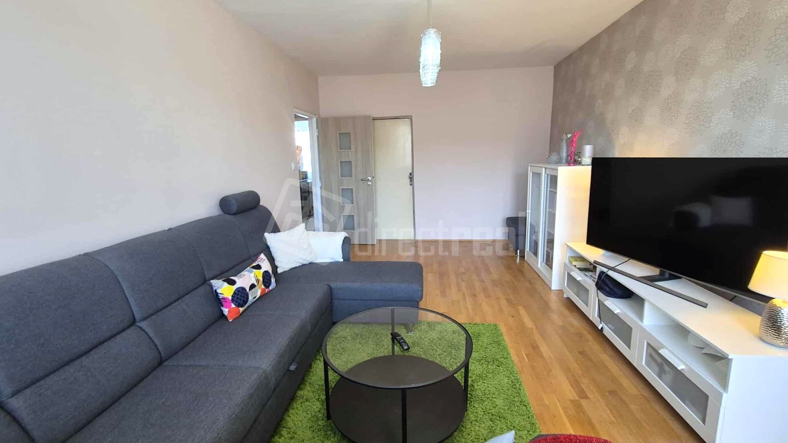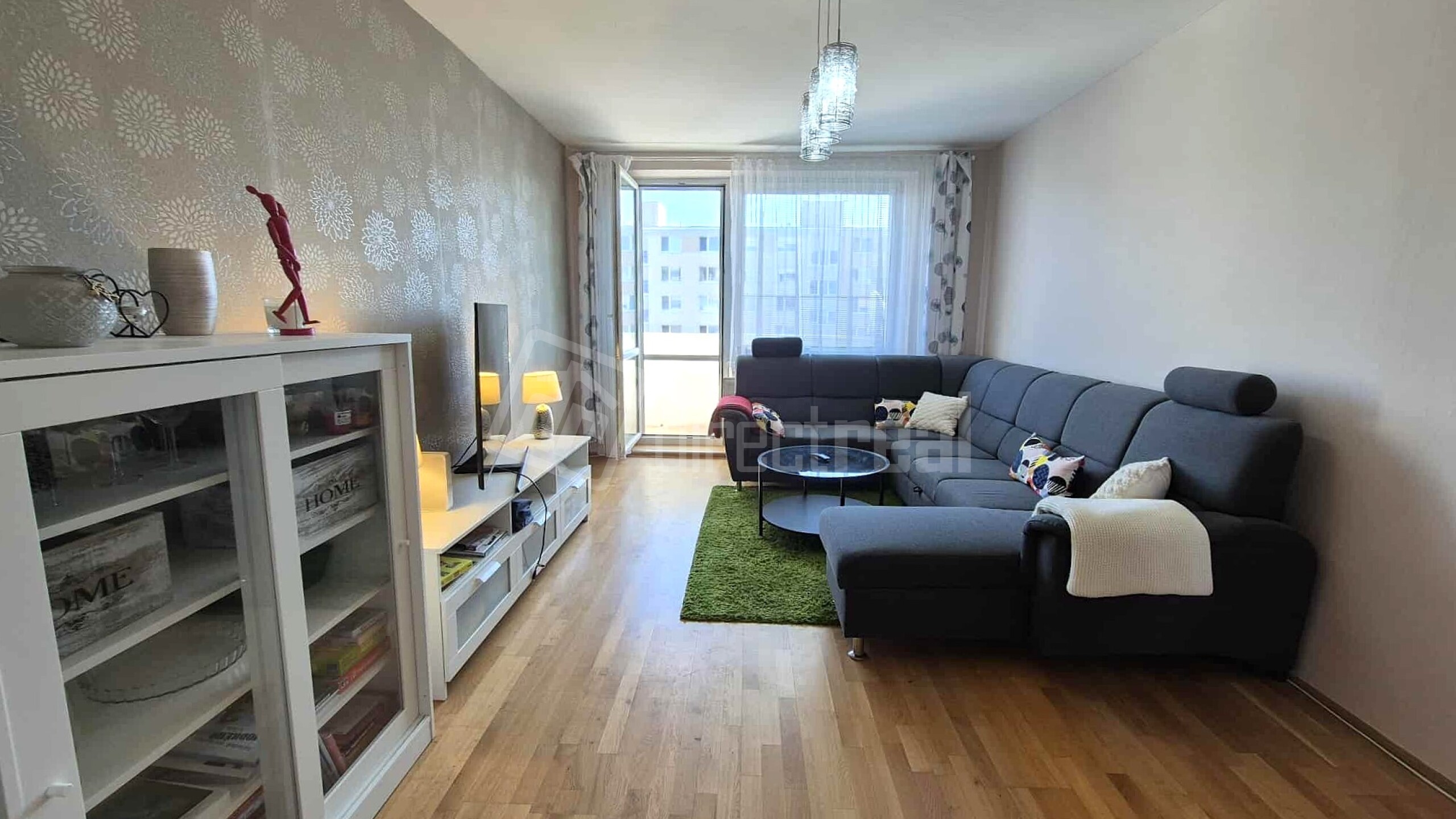 Obývačka je najväčšou izbou v byte (20,4 m2). Vstupuje sa z nej na loggiu s exteriérovým sedením. V miestnosti je rozkladacia sedačka, obývačkový nábytok, TV.