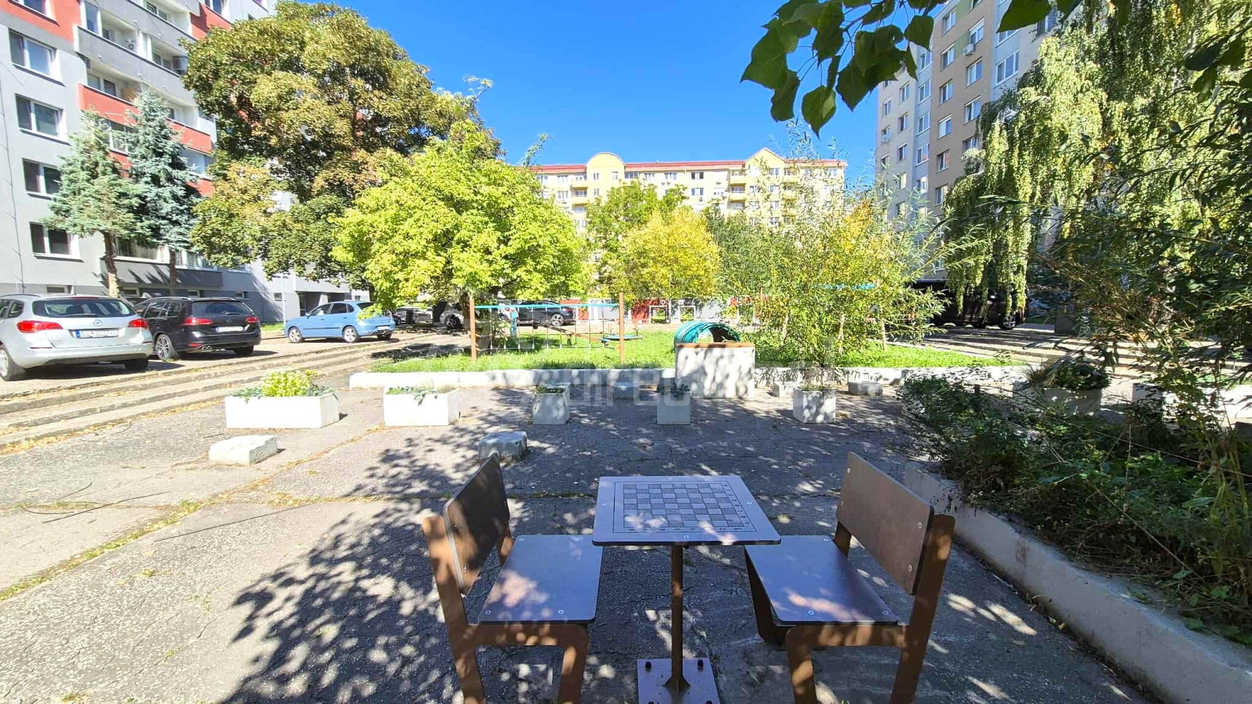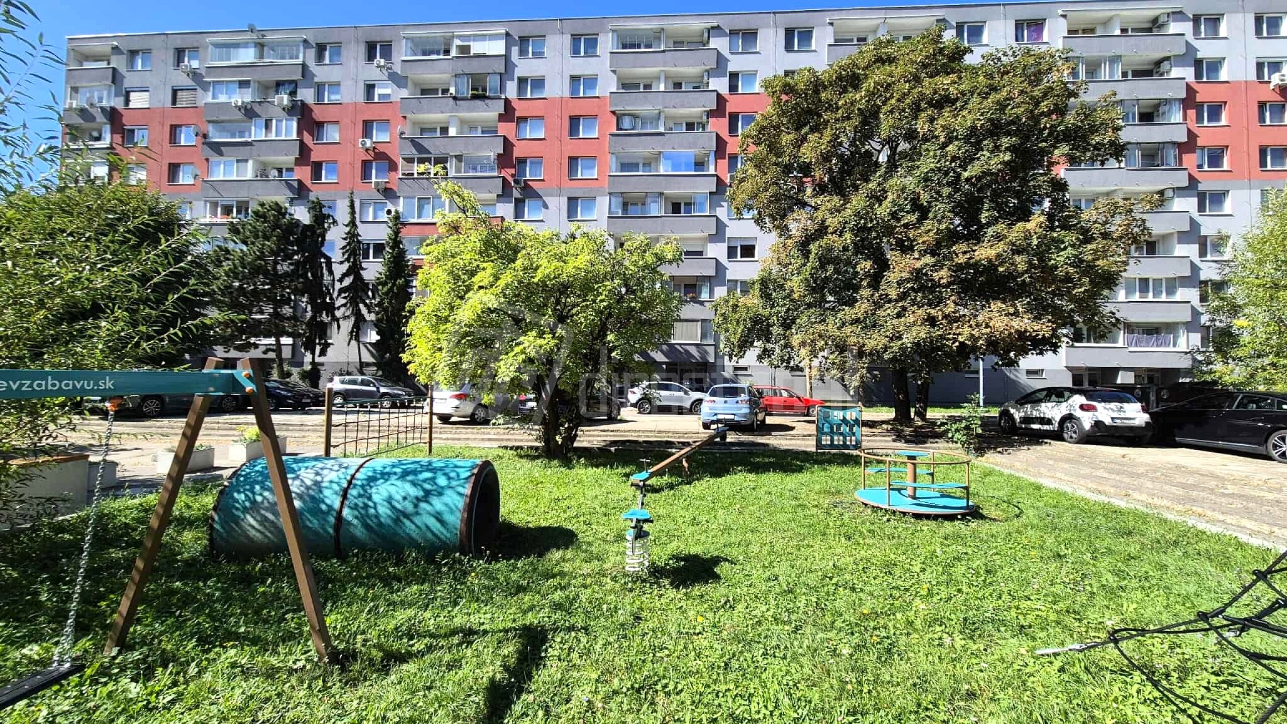 Pod bytom zatiaľ bezplatné parkovanie po oboch stranách domu. Pred vchodom veľa zelene a oddychových plôch.