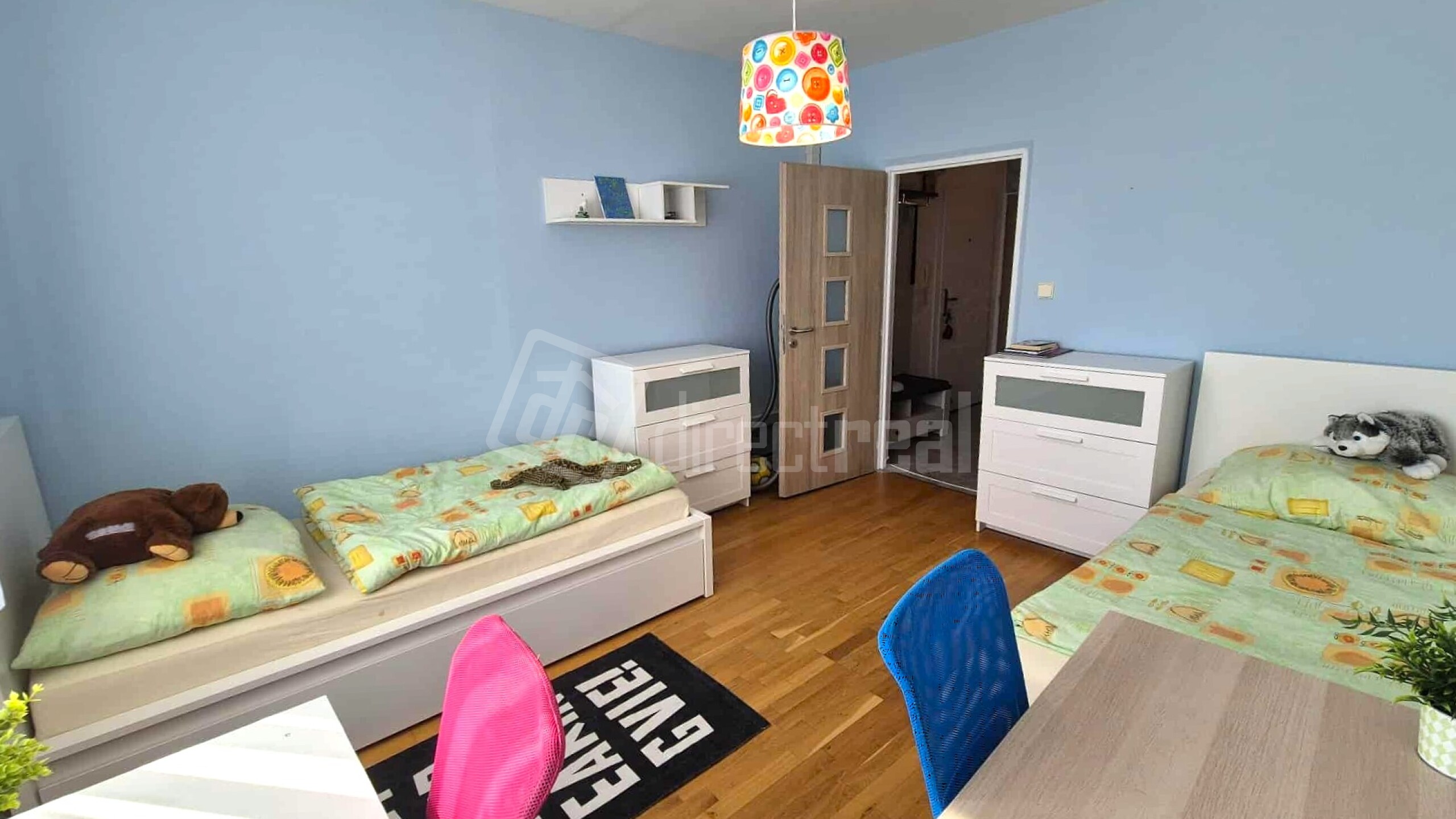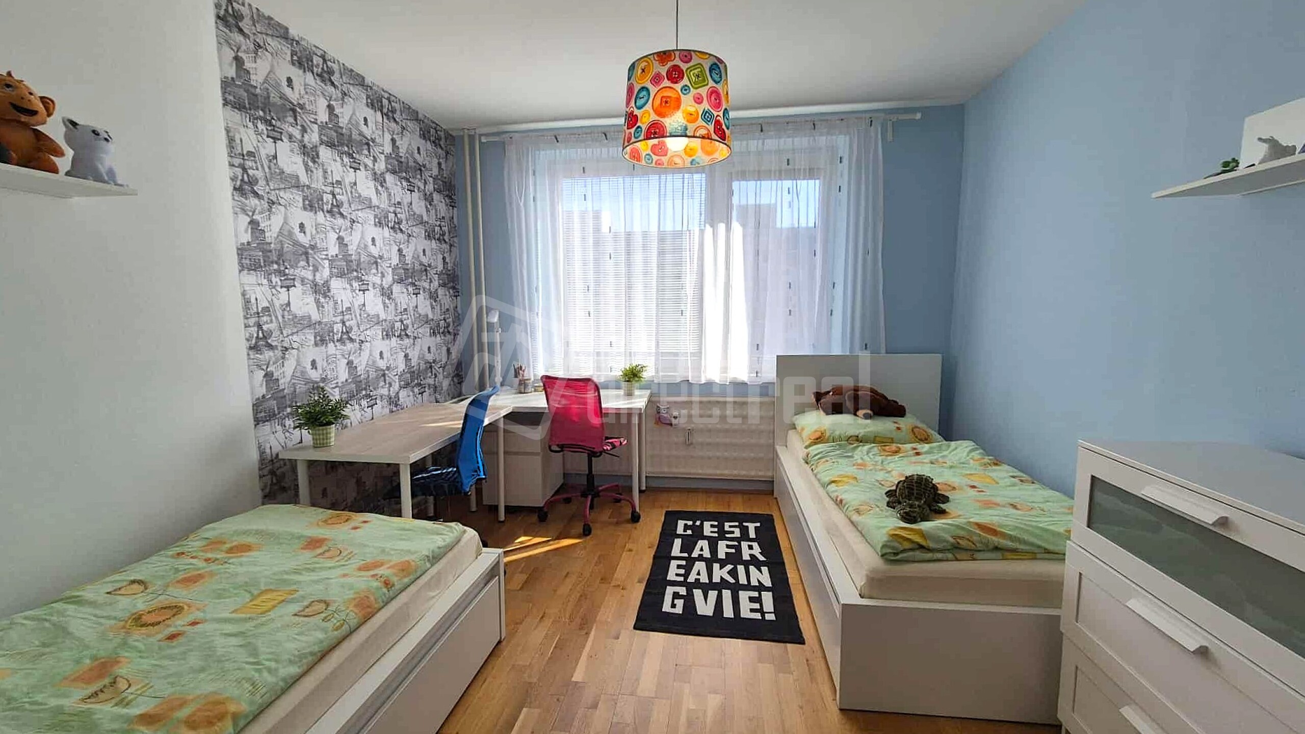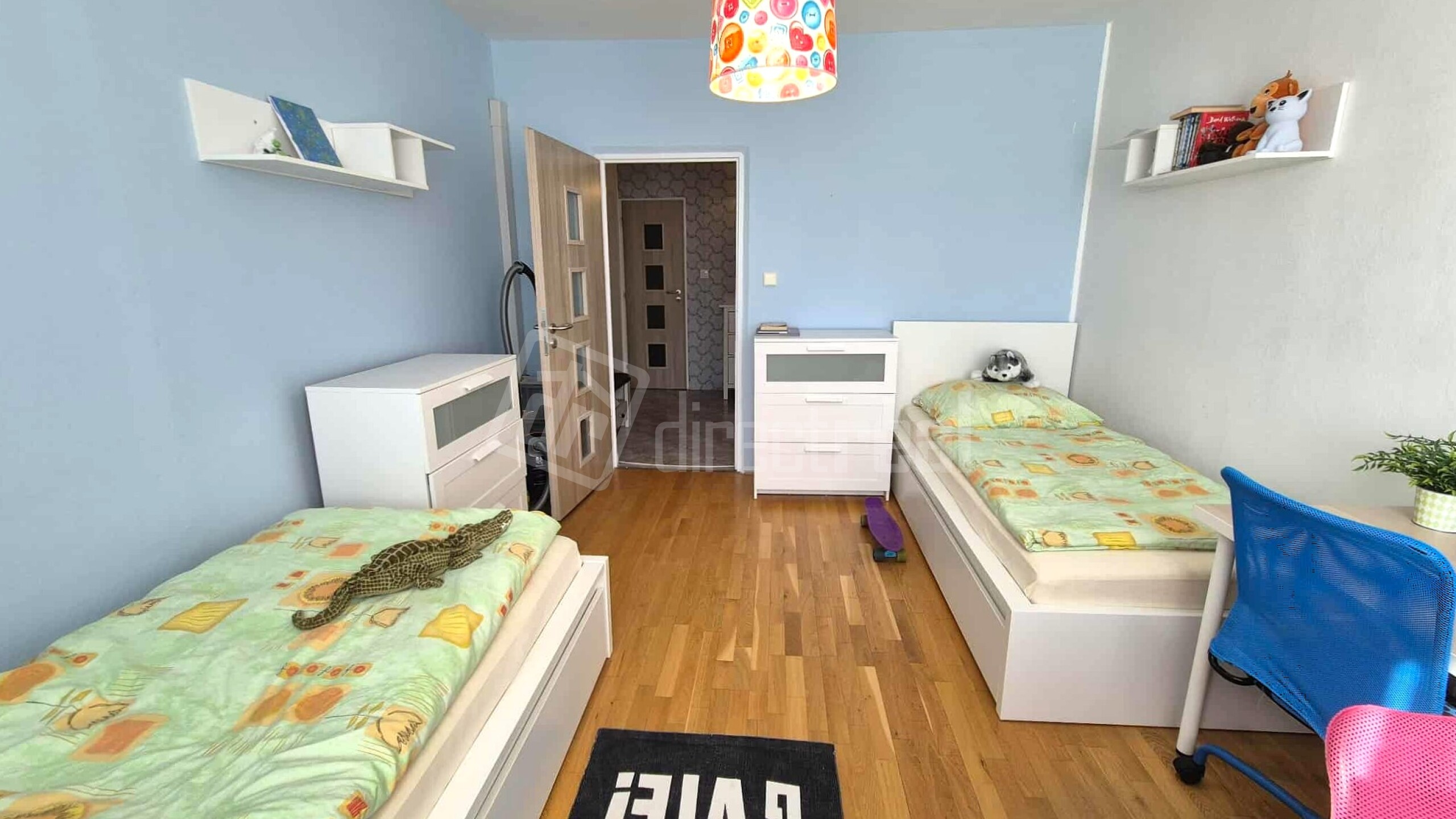 Detská izba s výmerou 16,4 m2 disponuje dvoma posteľami, pracovnými stolíkmi a úložným priestorom.