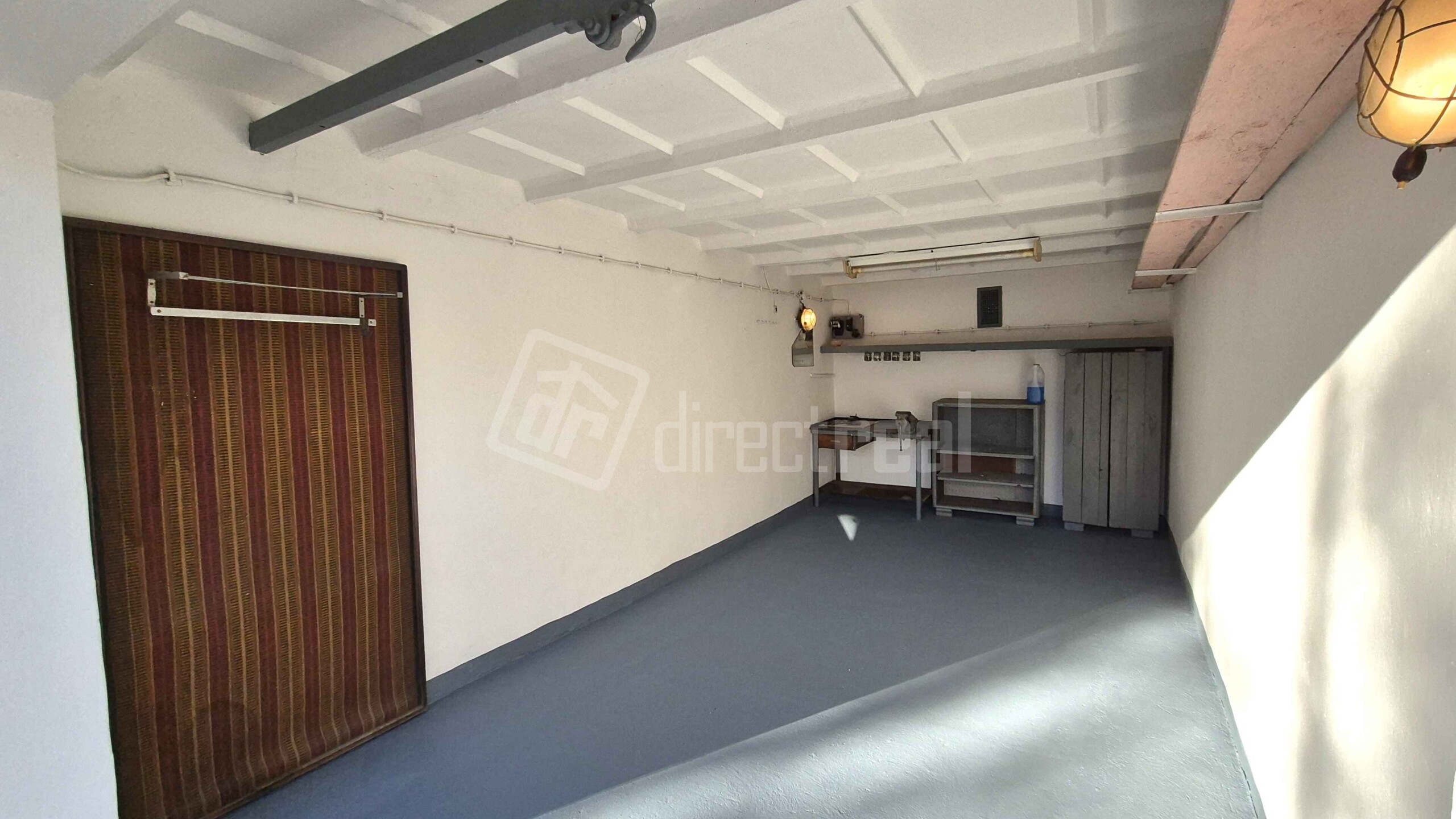 V garáži je elektrina (3x osvetlenie) aj zásuvka. Je čerstvo zrenovovaná, vymaľovaná a suchá. Disponuje dielenským stolom so zverákom a 2 policovými skrinkami.
