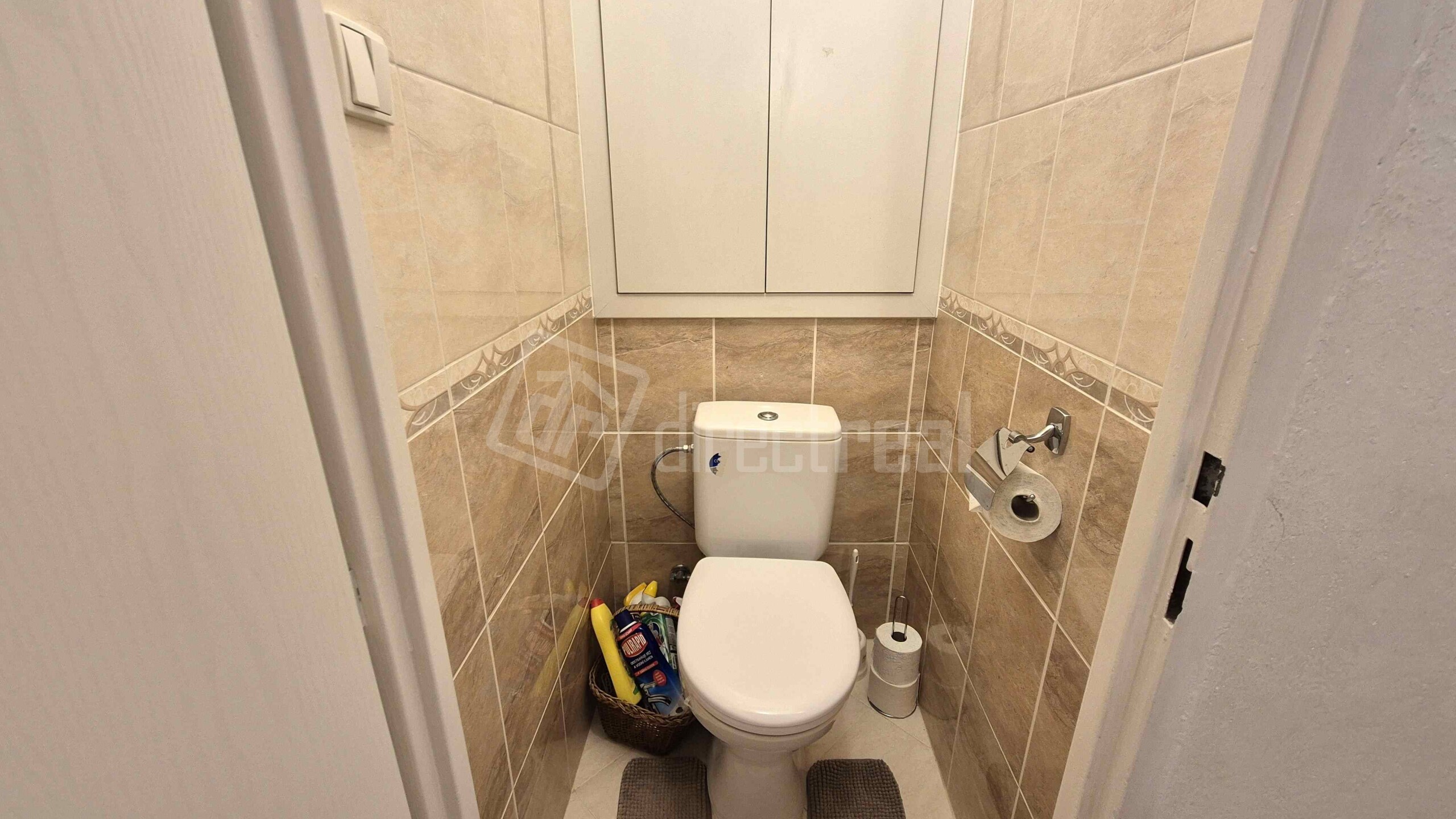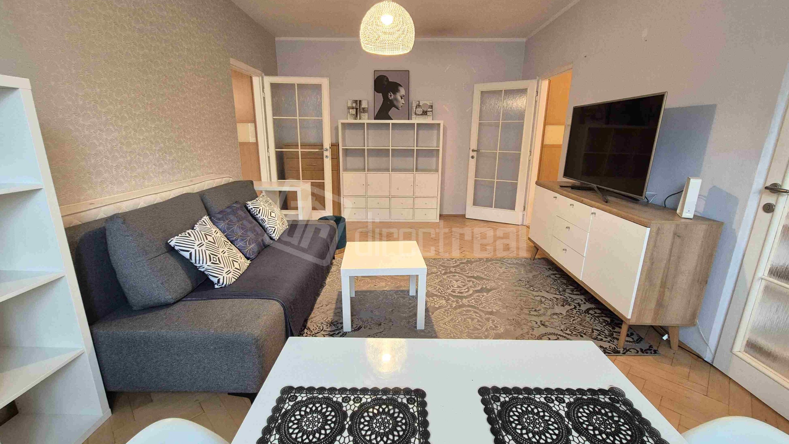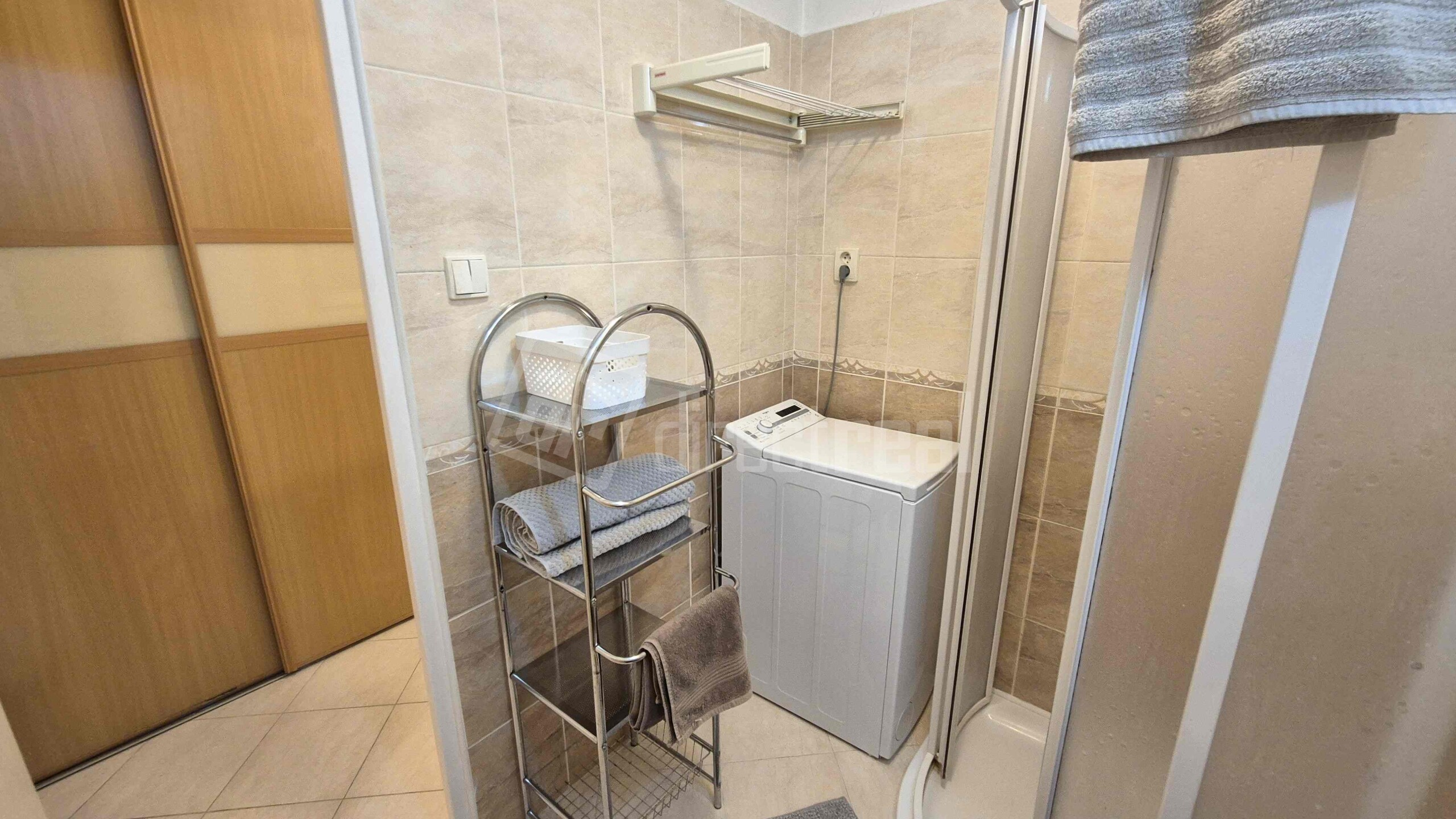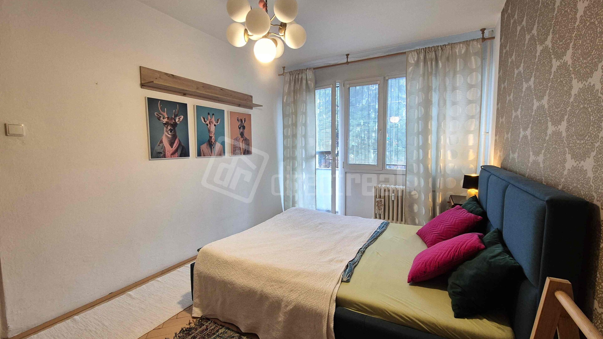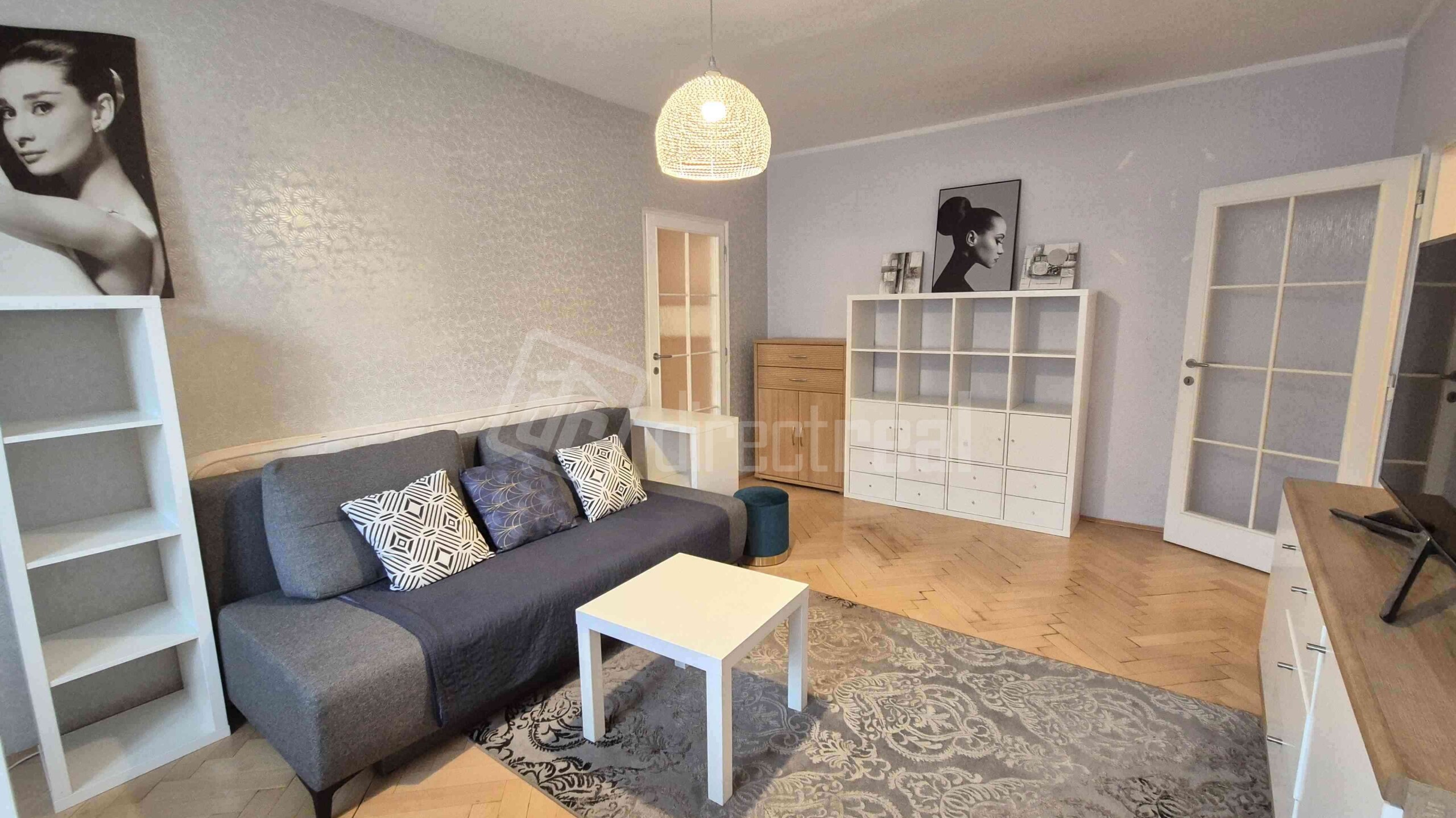 Vstup do bytu je cez bezpečnostné dvere do predsiene s úložným nábytkom. Z predsiene sa vchádza na samostatné WC a do kúpeľne so sprchovým kútom a práčkou. Obývačka je priestranná, vybavená rozkladacou sedačkou, jedálenským sedením a obývačkovým nábytkom. Prechádza sa z nej do kuchyne, vybavenej plynovou varnou doskou, elektrickou rúrou, mikrovlnnou rúrou, umývačkou riadu, chladničkou a mrazničkou. V spálni je manželská posteľ a vstavaná skriňa. Z miestnosti je vstup na loggiu.