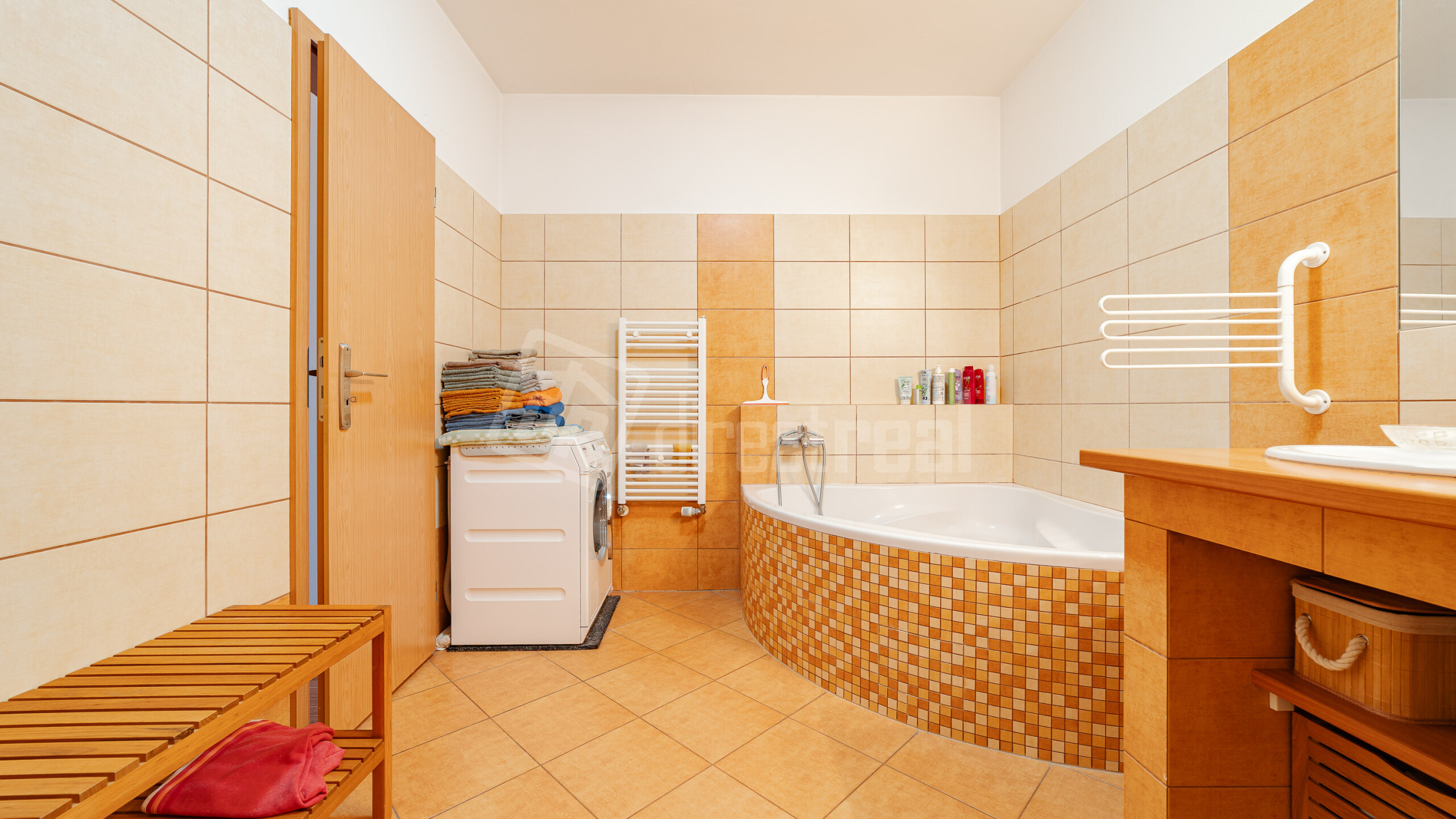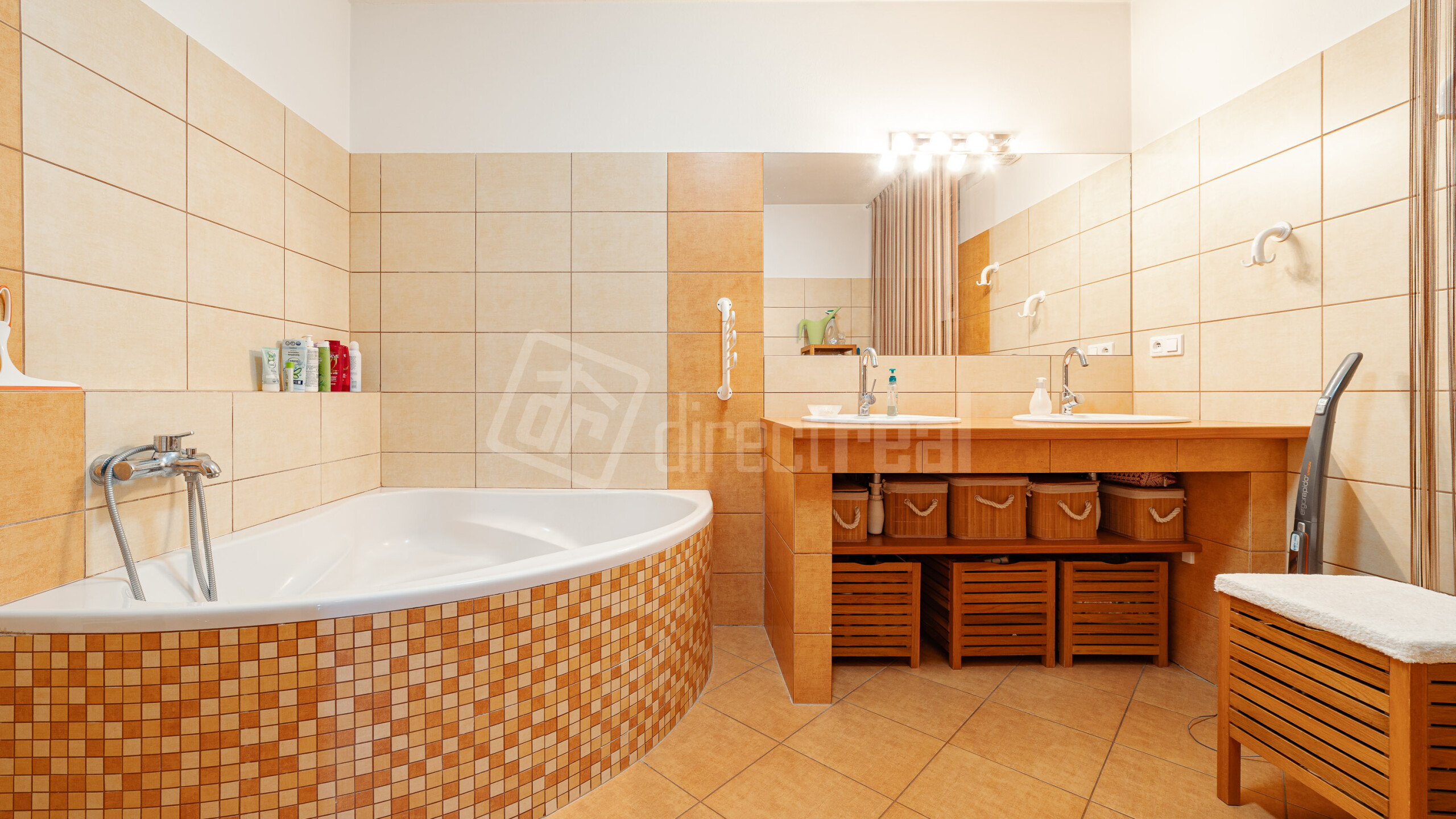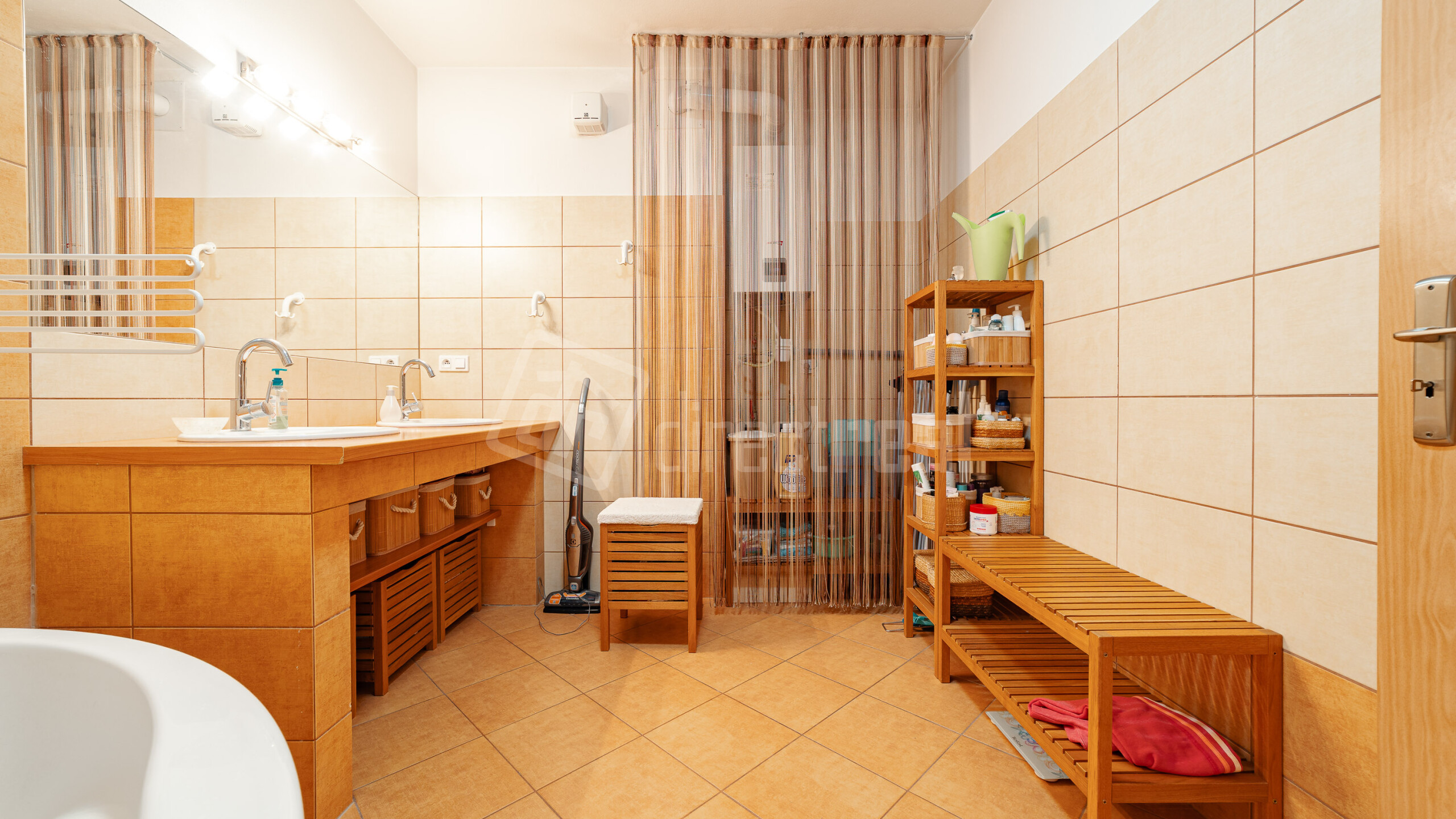 -Priestranná kúpeľňa (9,32 m²) s vaňou a dvomi umývadlami. V prípade potreby si viete dobudovať do kúpeľne sprchový kút alebo ďalšiu toaletu.