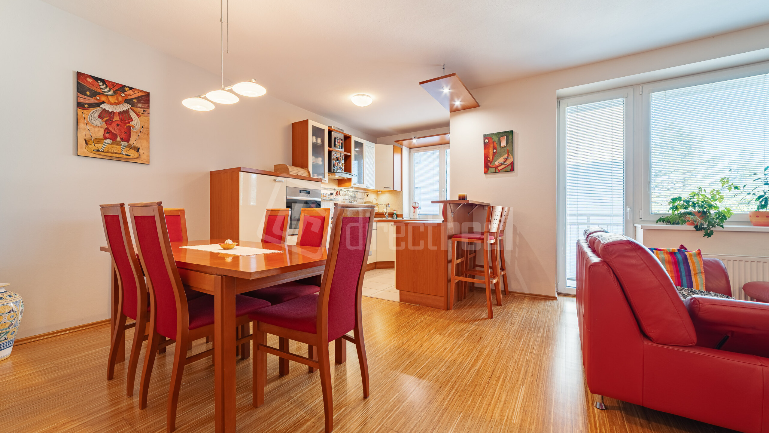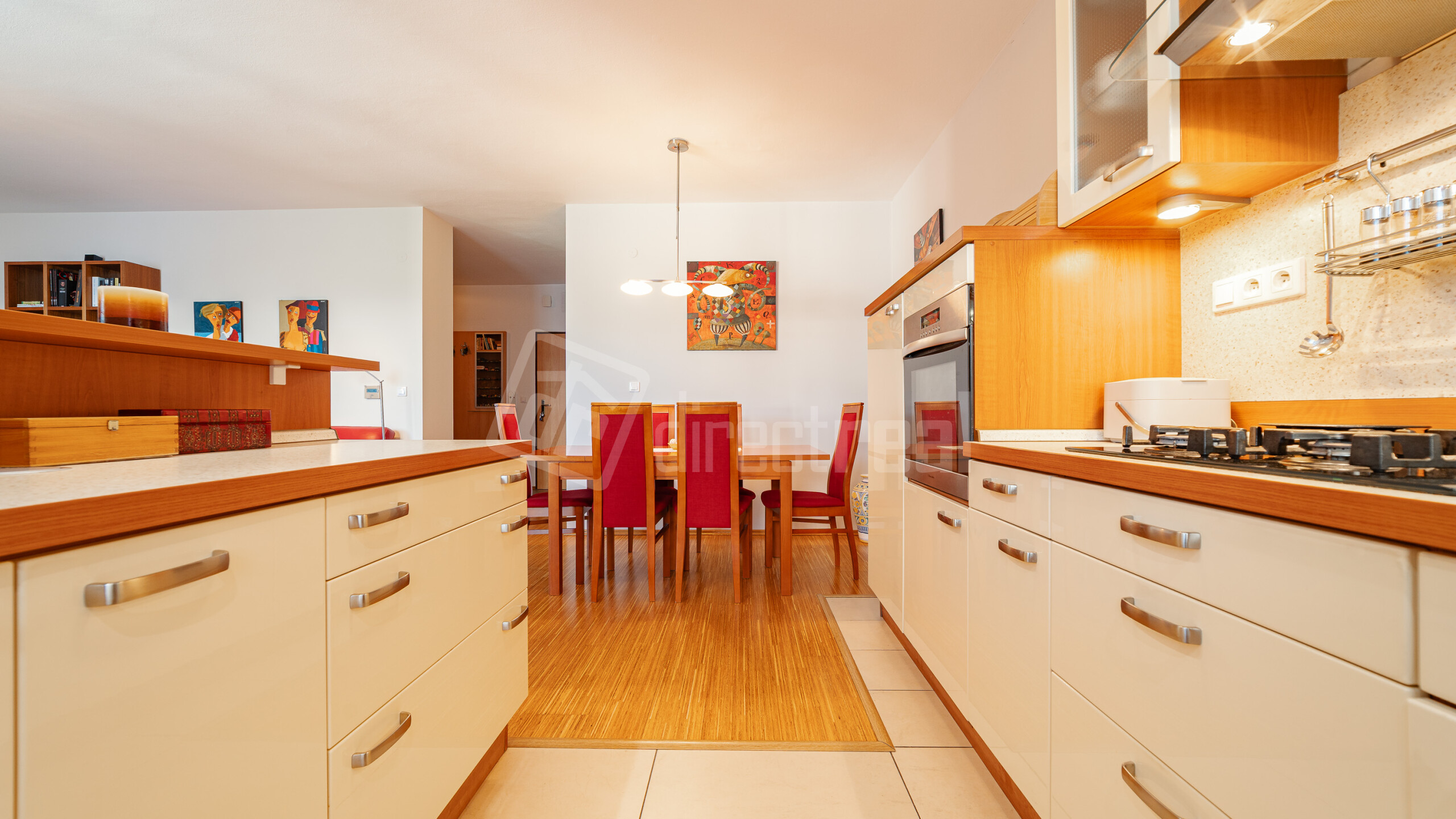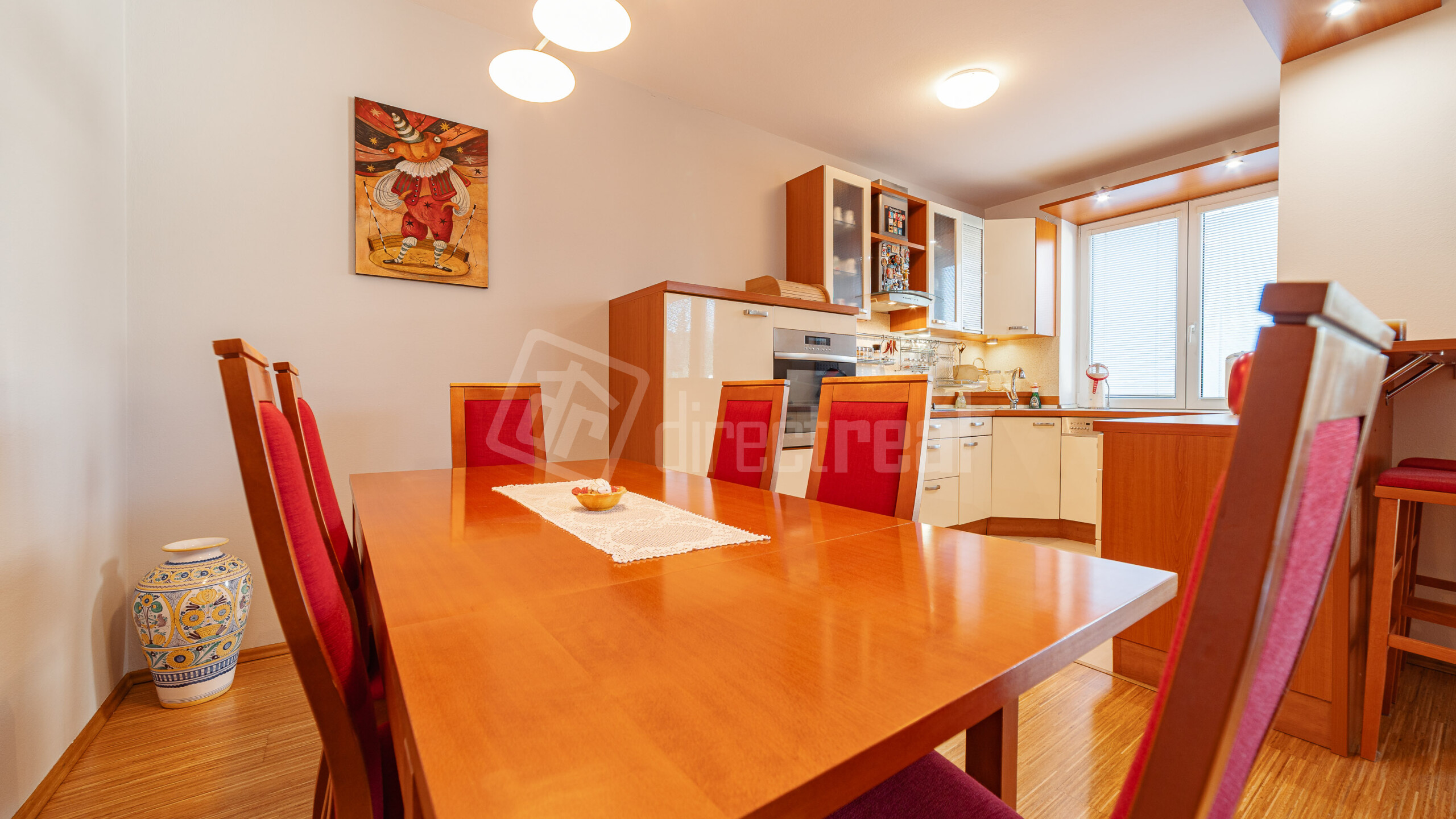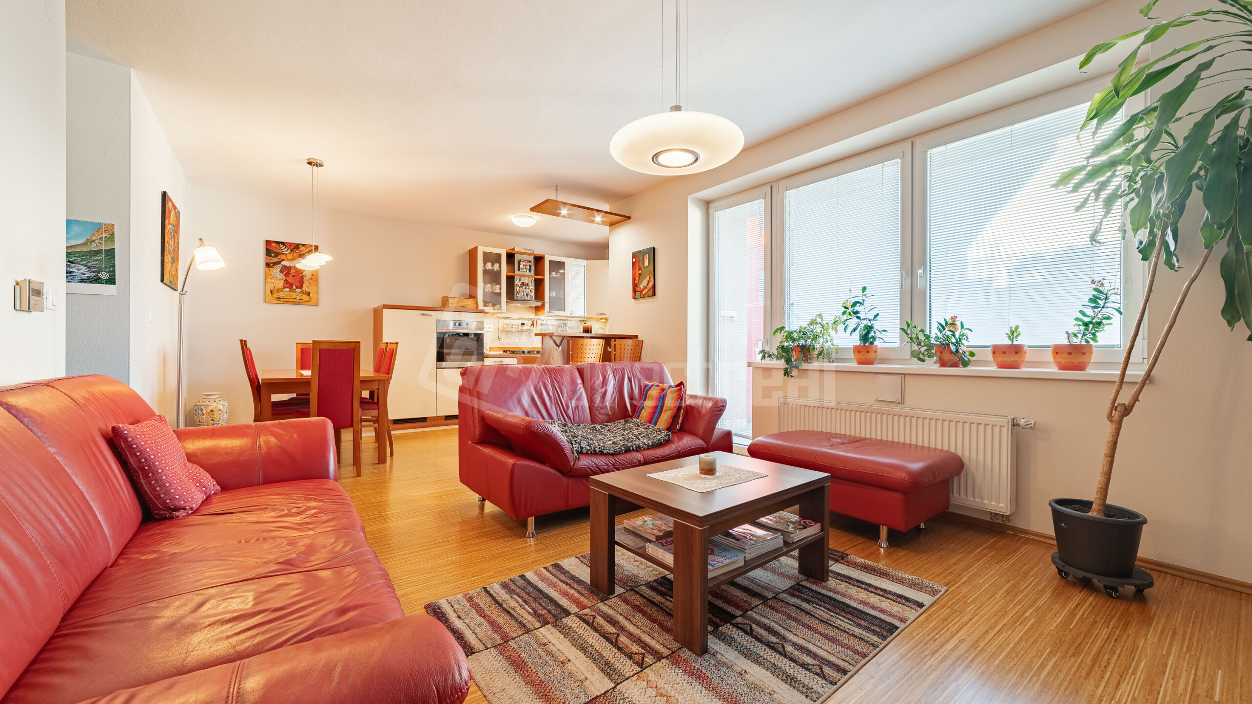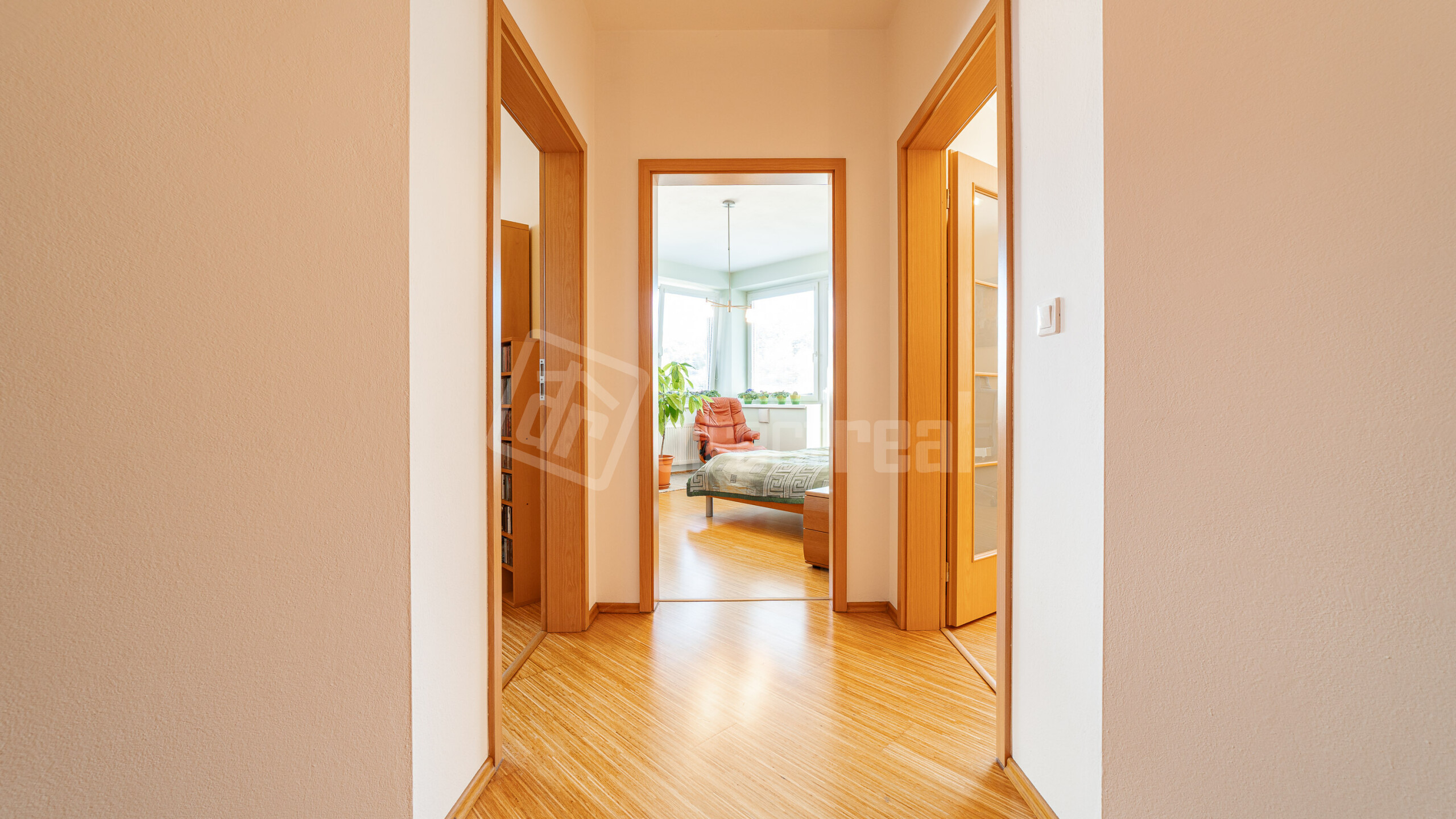 Premyslená a praktická dispozícia: poteší veľký samostatný šatník ako aj komora rovno pri kuchyni. Samostatné, priestranné a nepriechodné izby, kuchyňa spojená s obývačkou. Veľká kúpelňa s vaňou, samostatné WC. Vstupná chodba, ktorá prepája všetky miestnosti, dodáva bytu ešte viac priestoru.