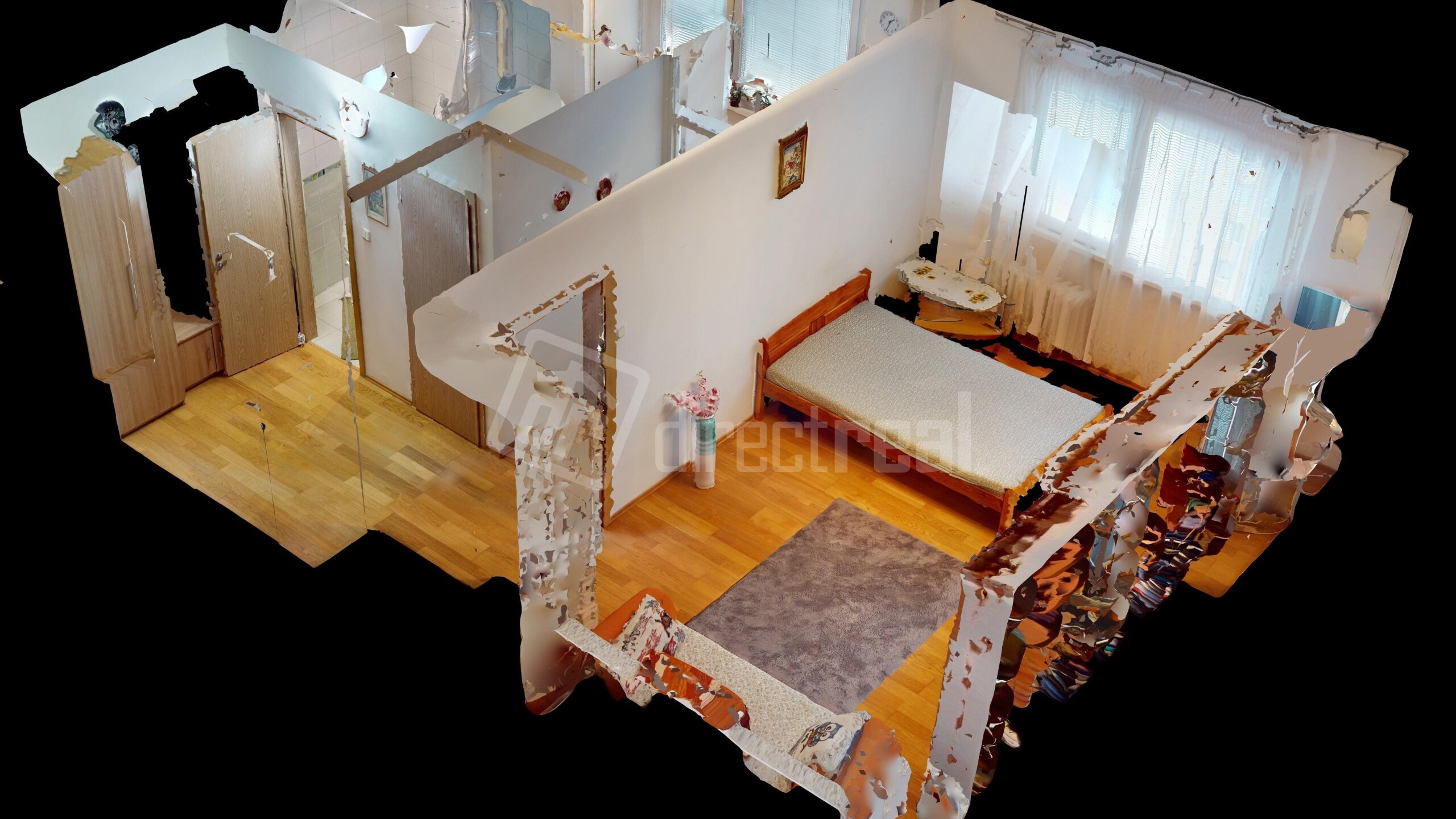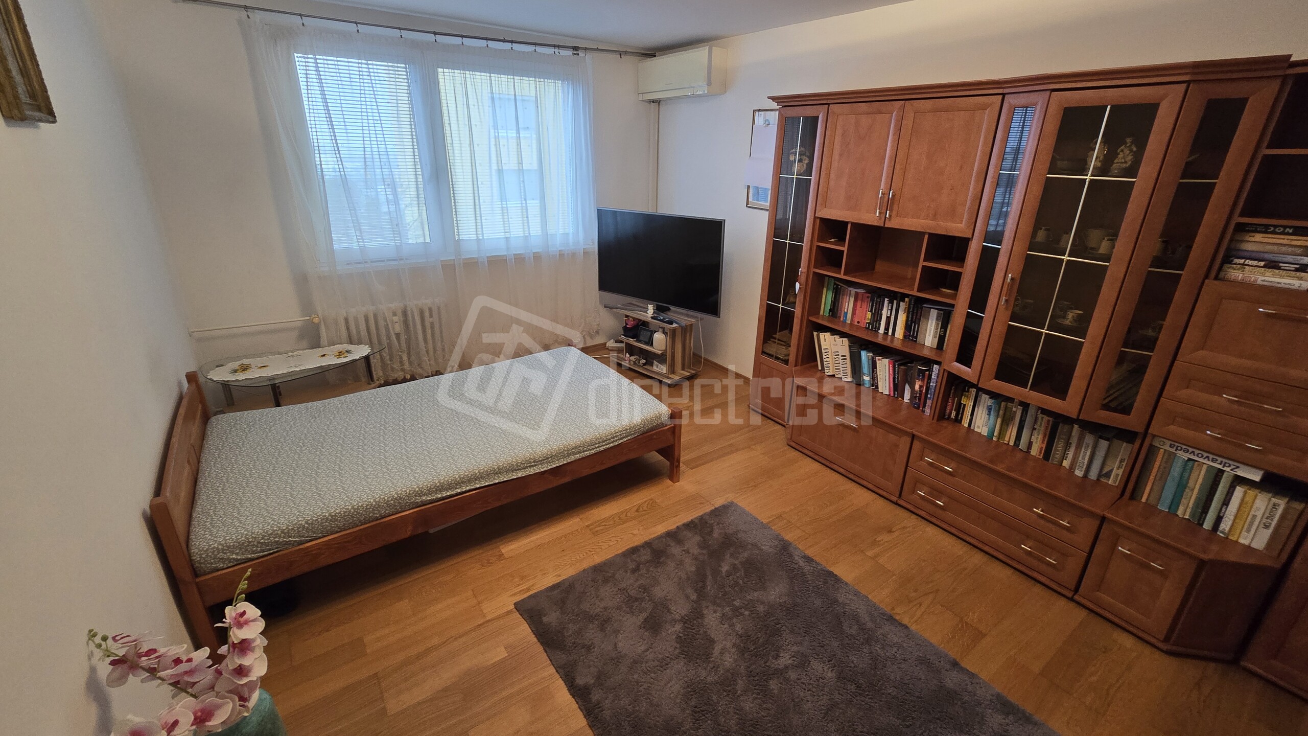DISPOZÍCIA : Podlahová plocha bytu je 38 m2 vrátane klasickej latkovej pivnice cca 1,5 m2 . Do bytu sa vchádza chodbičkou vybavenou predsieňovým nábytkom. Z chodby je vstup do kúpeľne so sprchovým kútom a do samostatného WC. Ďalej je vstup do izby zariadenej funkčným nábytkom. Tu je namontovaná aj klimatizácia. V kuchyni sa nachádza kuchynský stôl s dvoma stoličkami. Byt je orientovaný na východ.