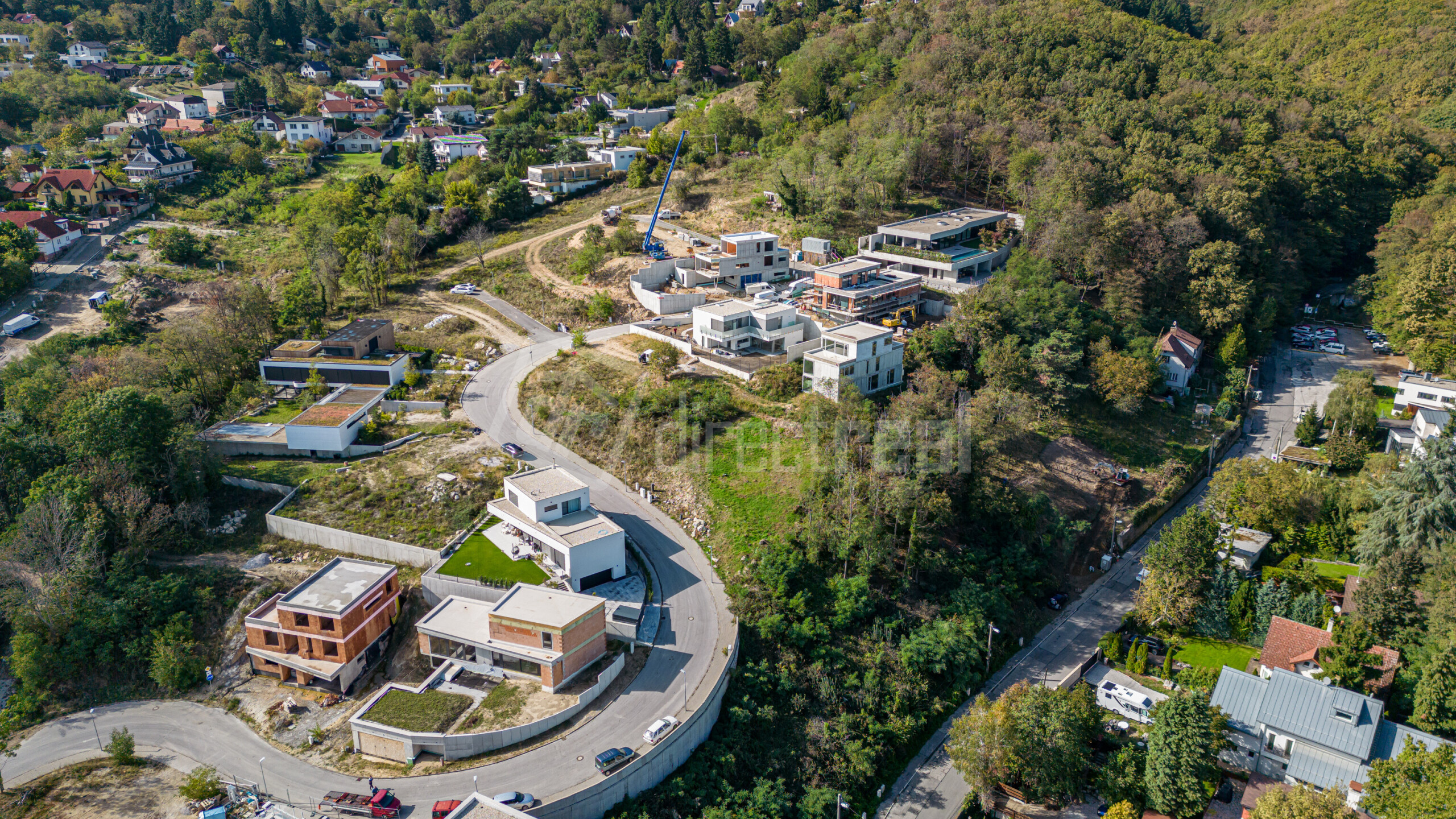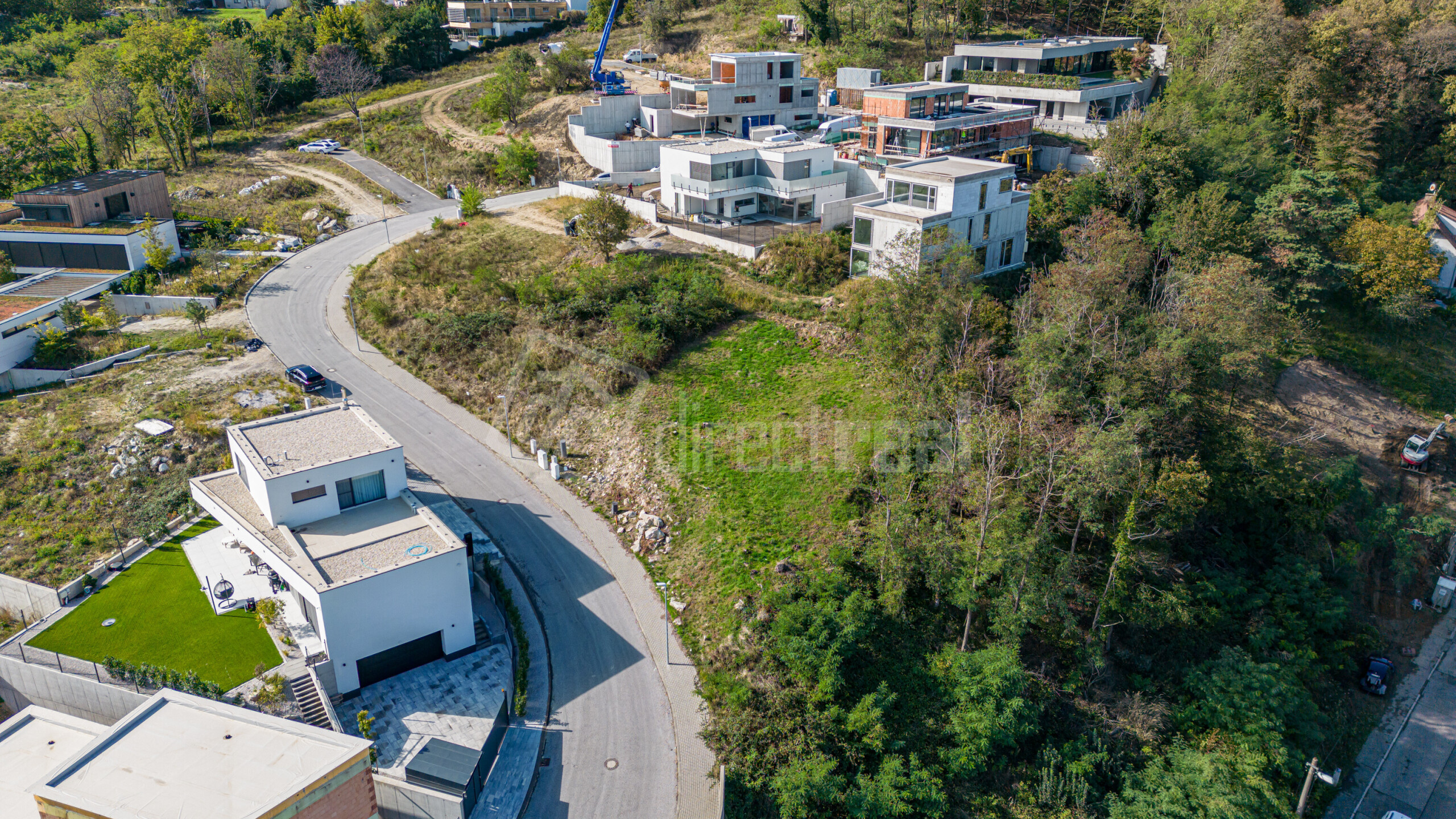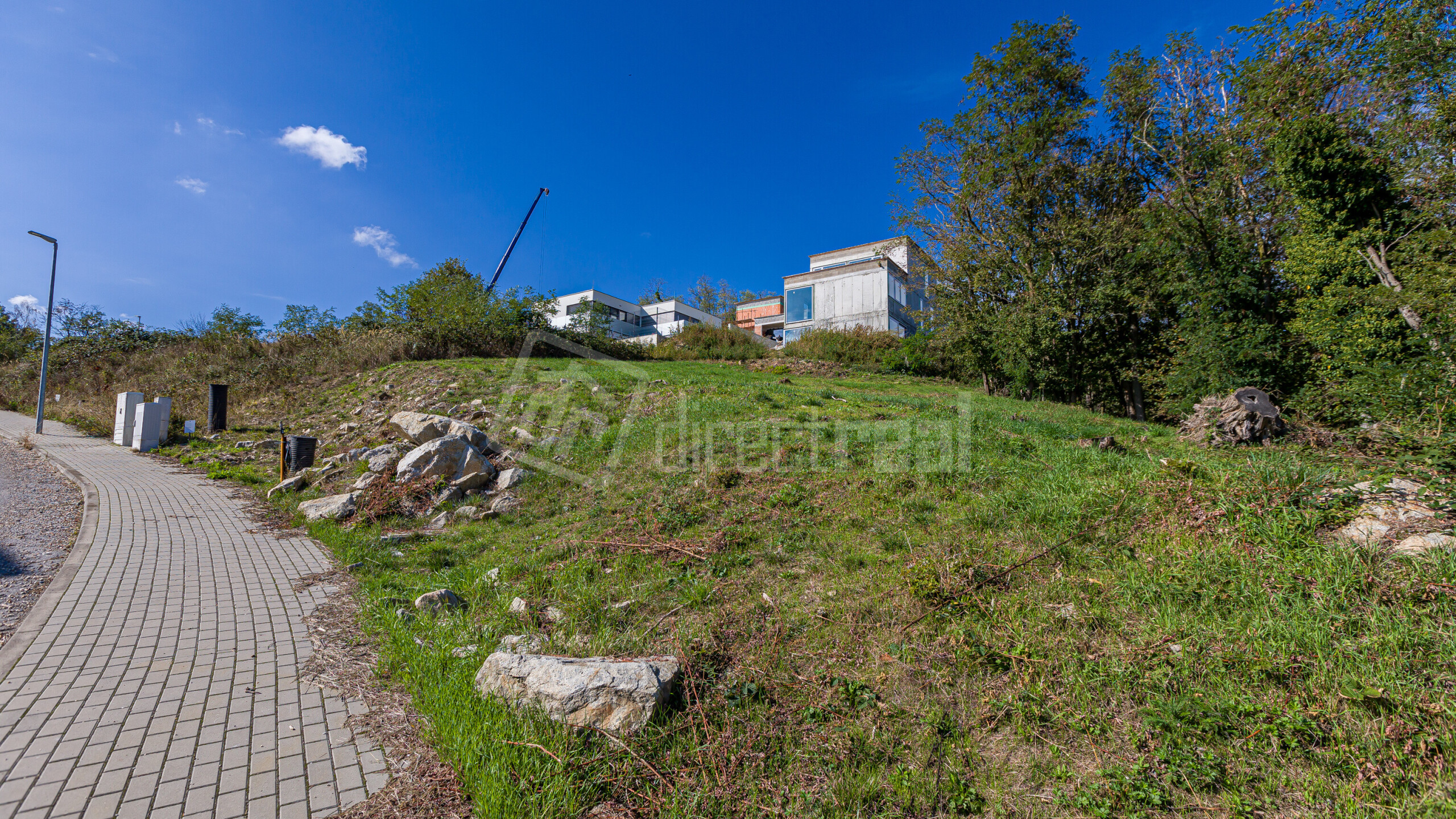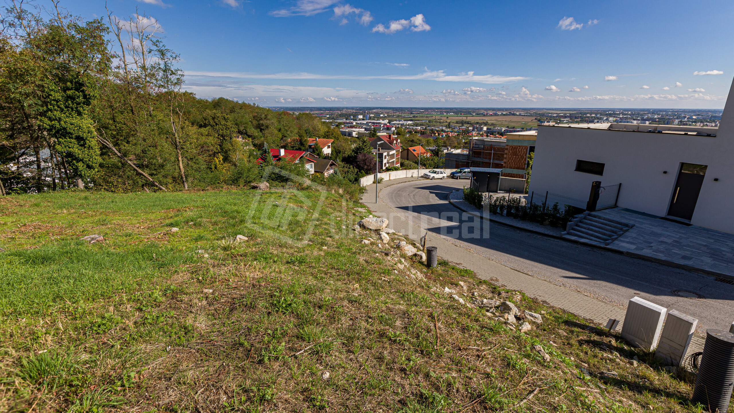 - Veľmi mierny sklon pozemku (zabezpečuje výhľady a zaujímavé architektonické riešenie).