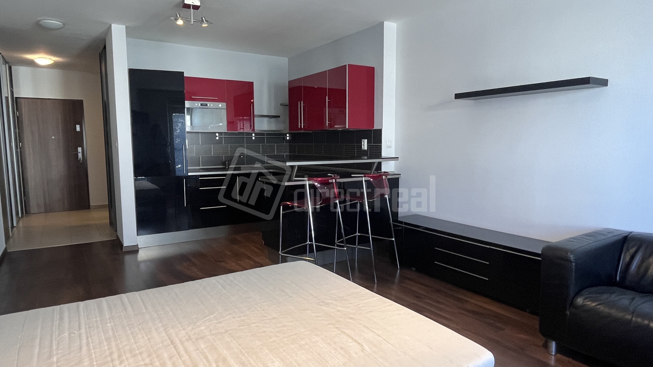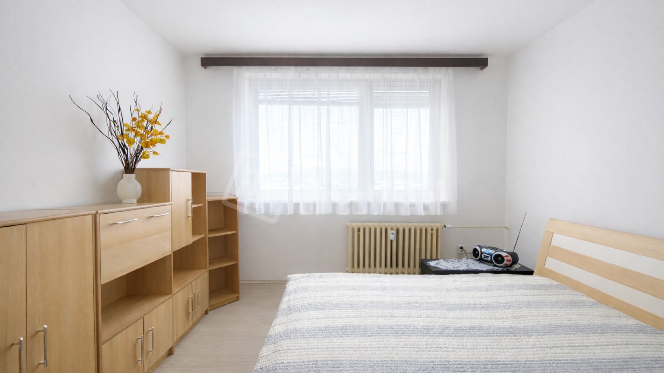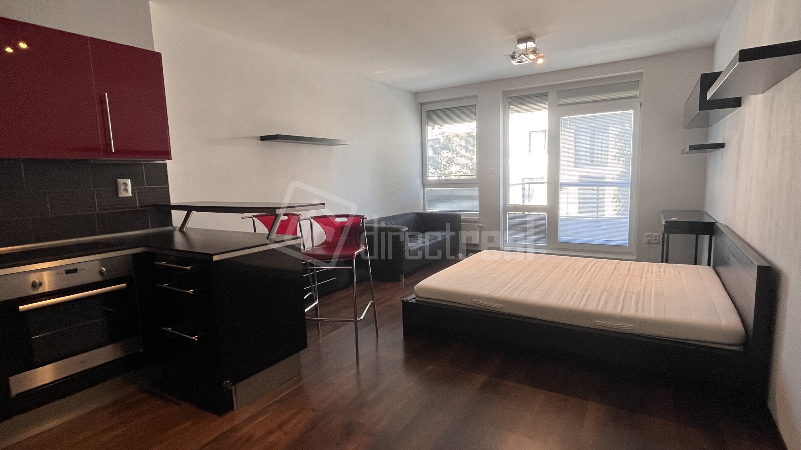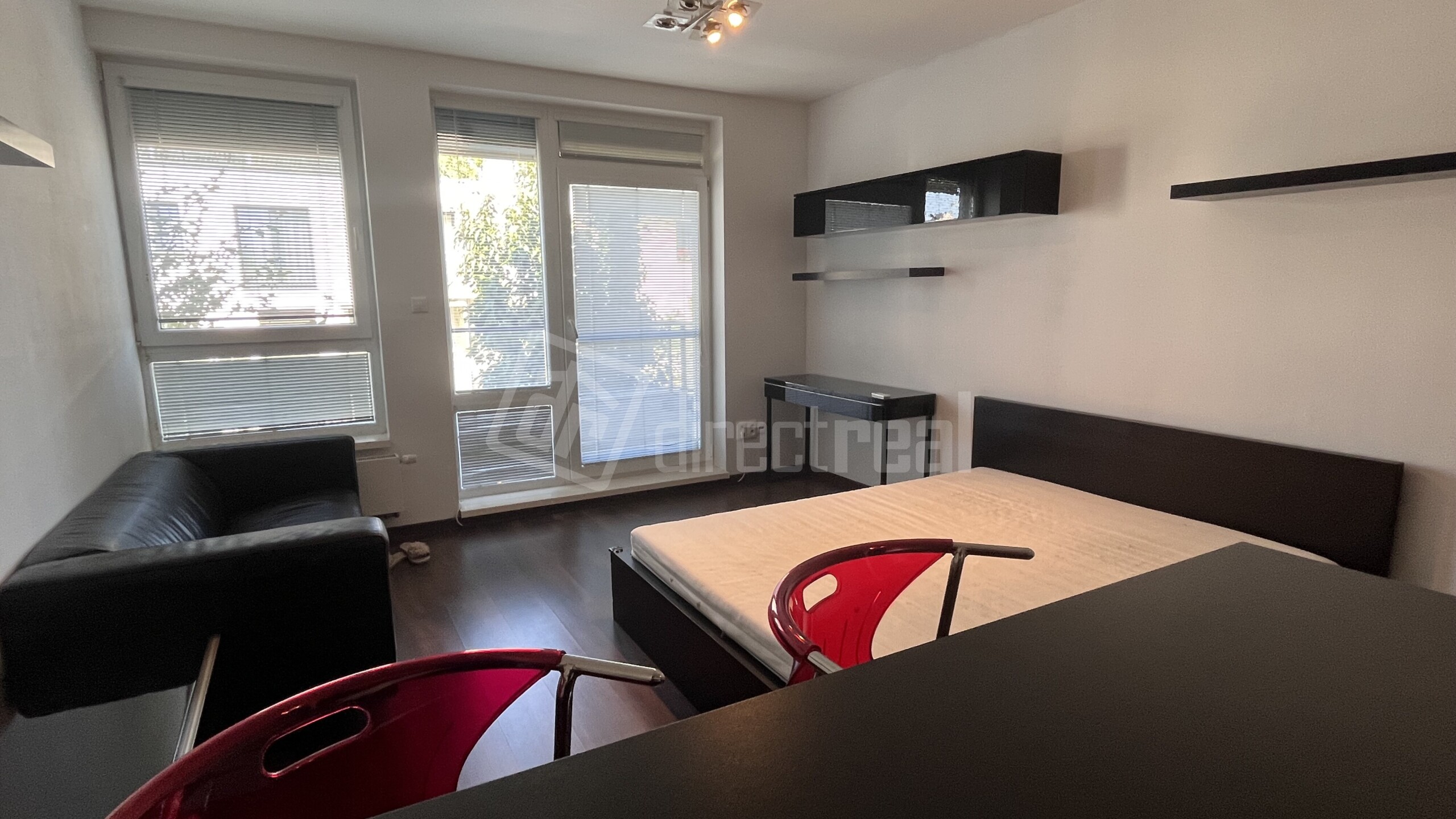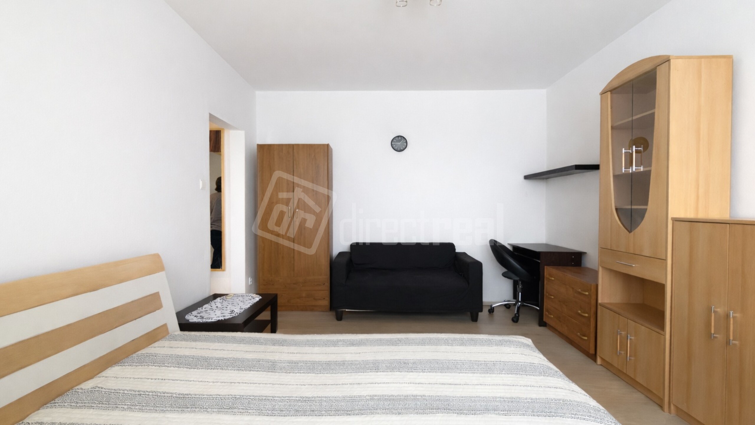 - priamo oproti vchodu je vstup do priestrannej izby s obyvačkovou stenou, posteľou, gaučom a písacím stolom.