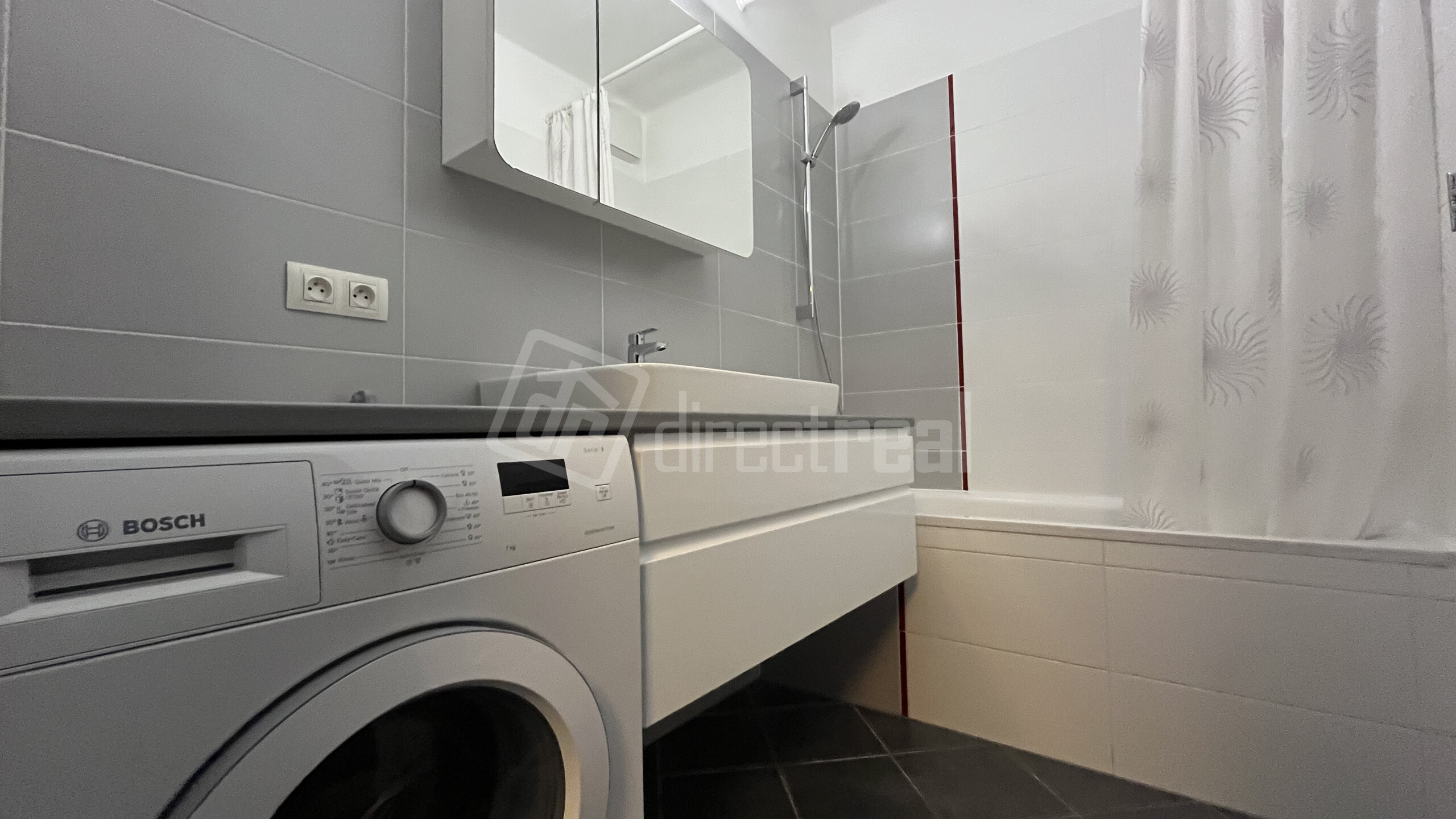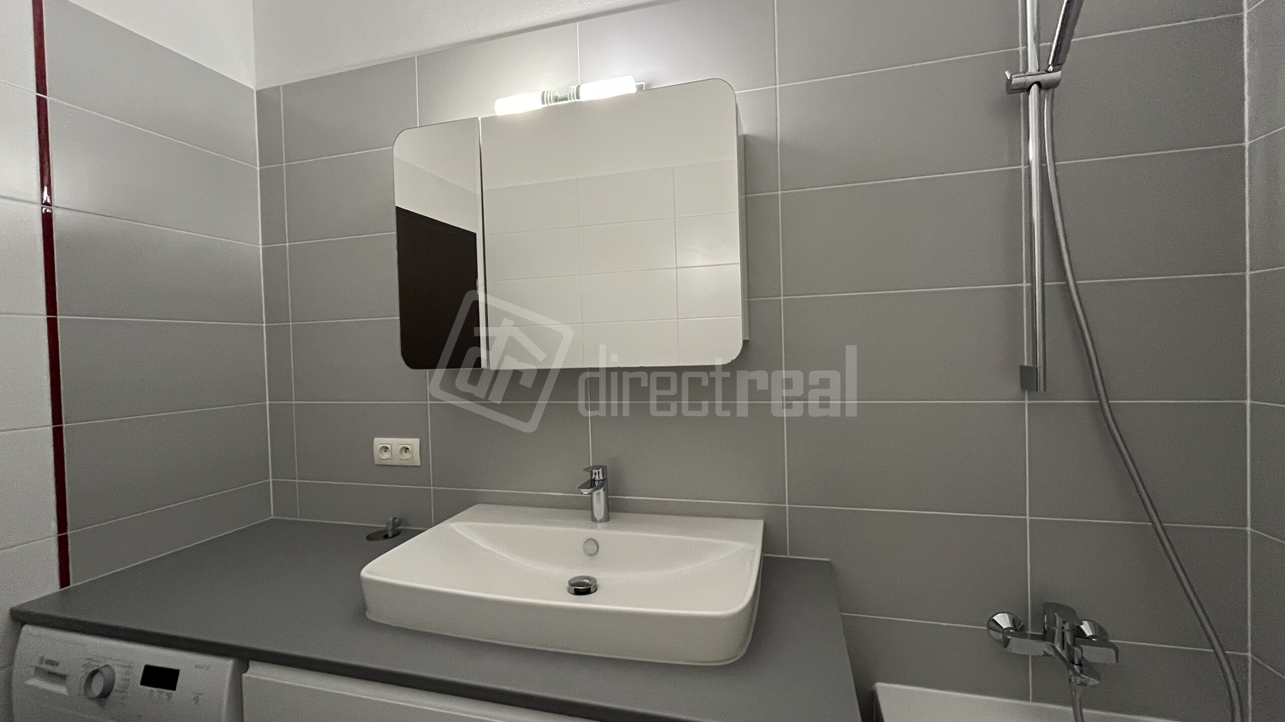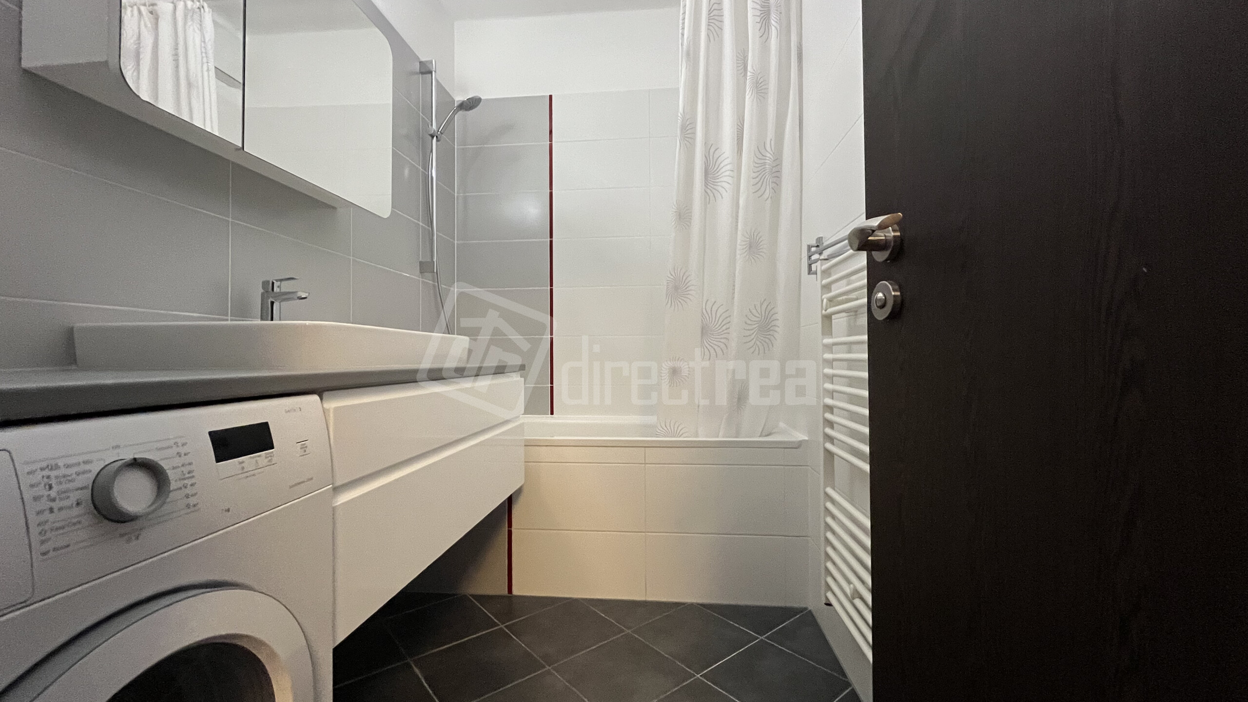 - Kúpeľňa – s vaňou, umývadlom so skrinkou a práčkou Bosch