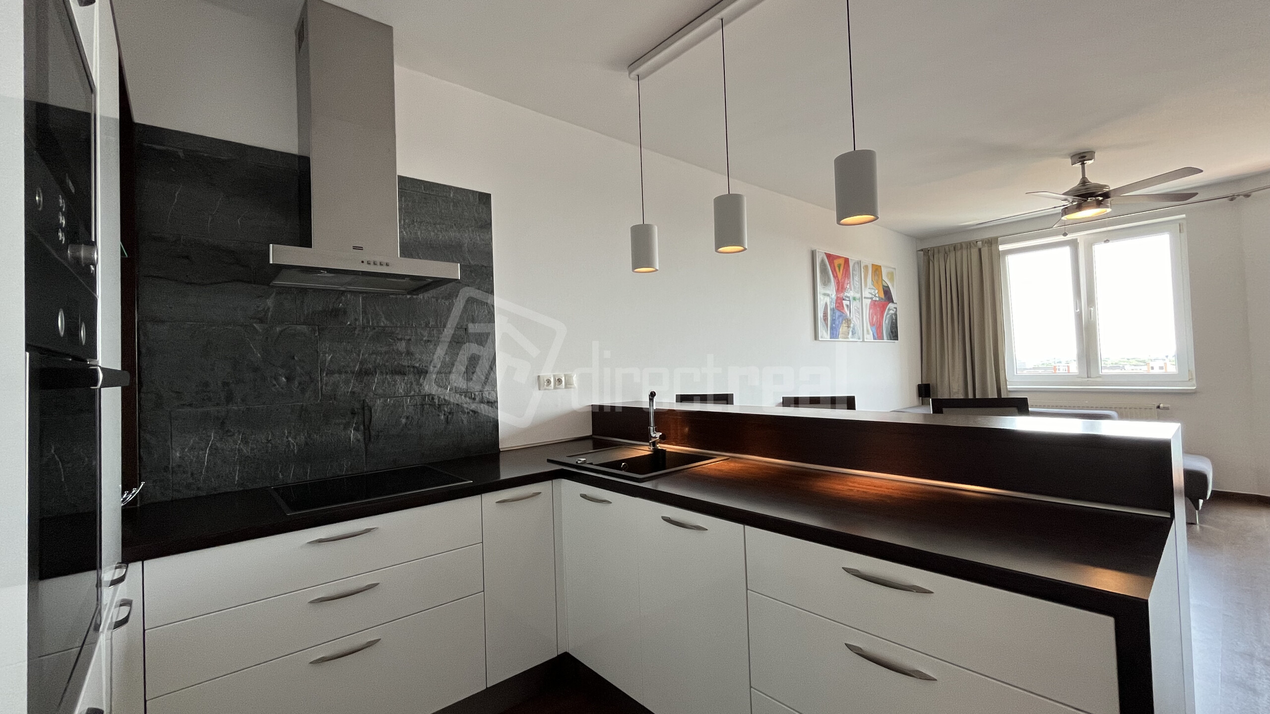 - Vzdušný priestor kuchyne prepojenej s obývačkou s východom na loggiu: