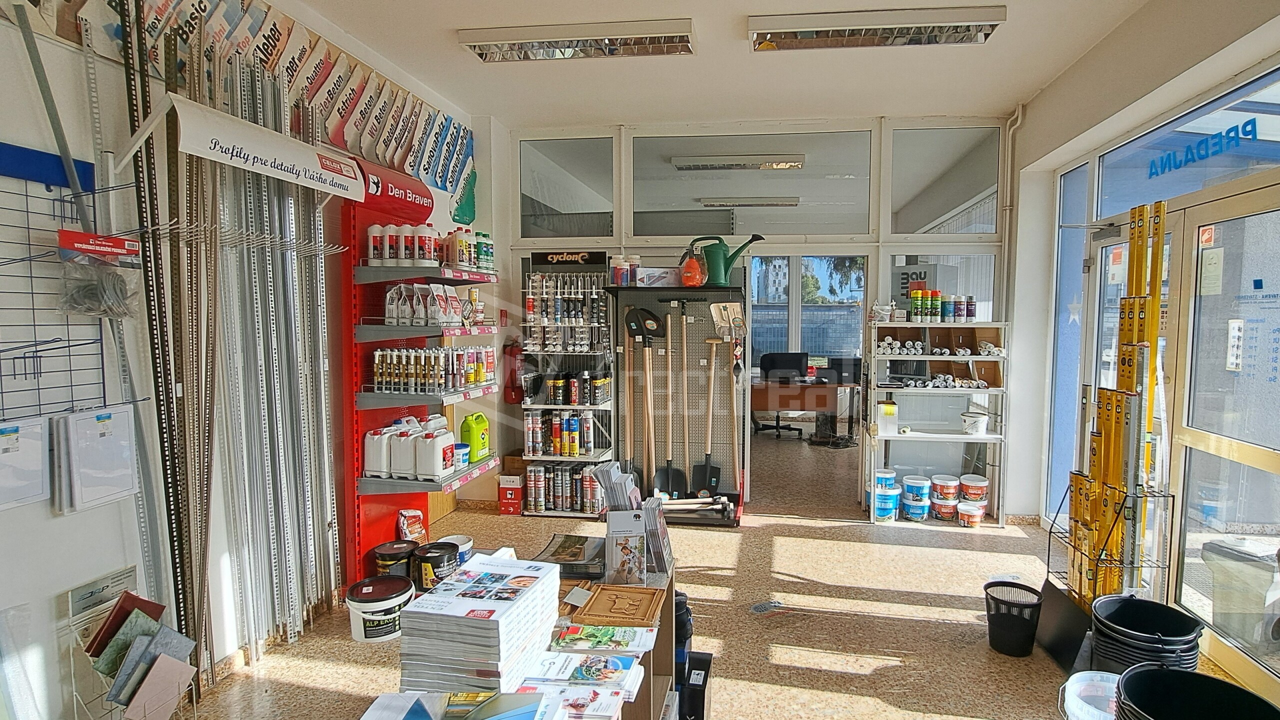 - Jednoposchodovej administratívnej budovy, na prízemí sa nachádzajú obchodné priestory so sociálnym zázemím, vykurovaný sklad 54m2,na poschodí sa nachádzajú kancelárske priestory so sociálnym zázemím + terasa