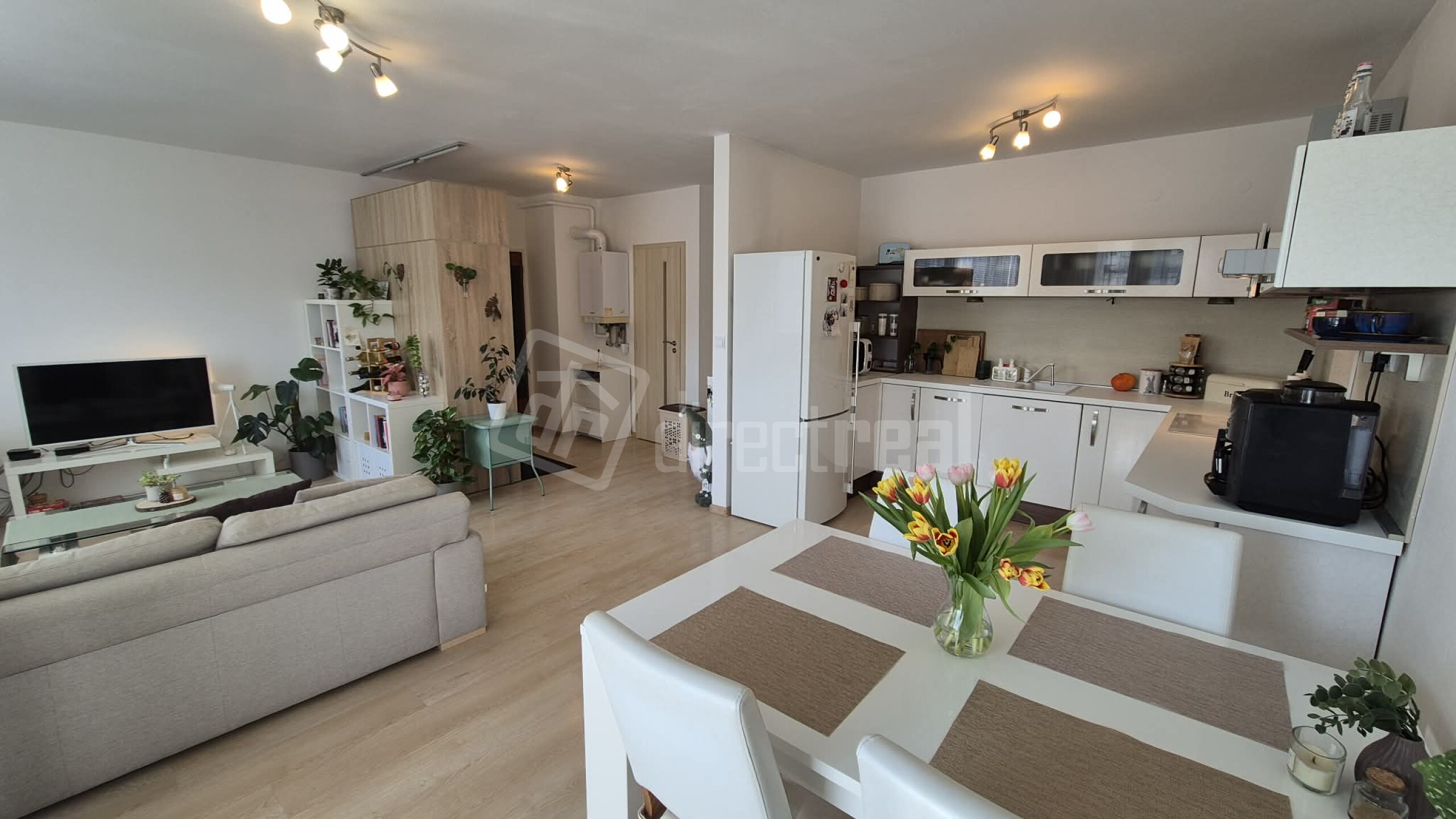 Centrum bytu: Svetlá obývacia izba plynule prepojená s modernou kuchyňou.