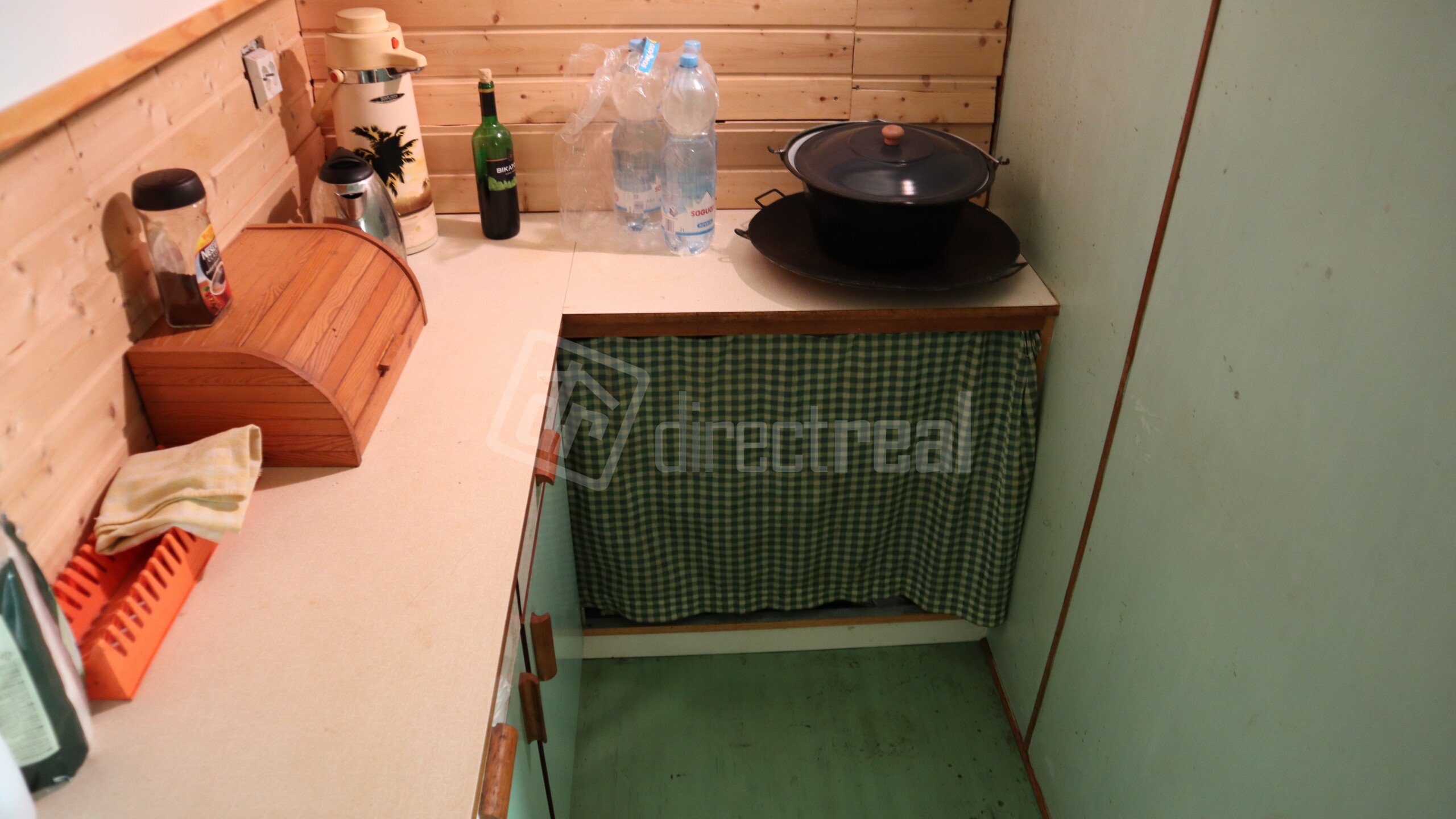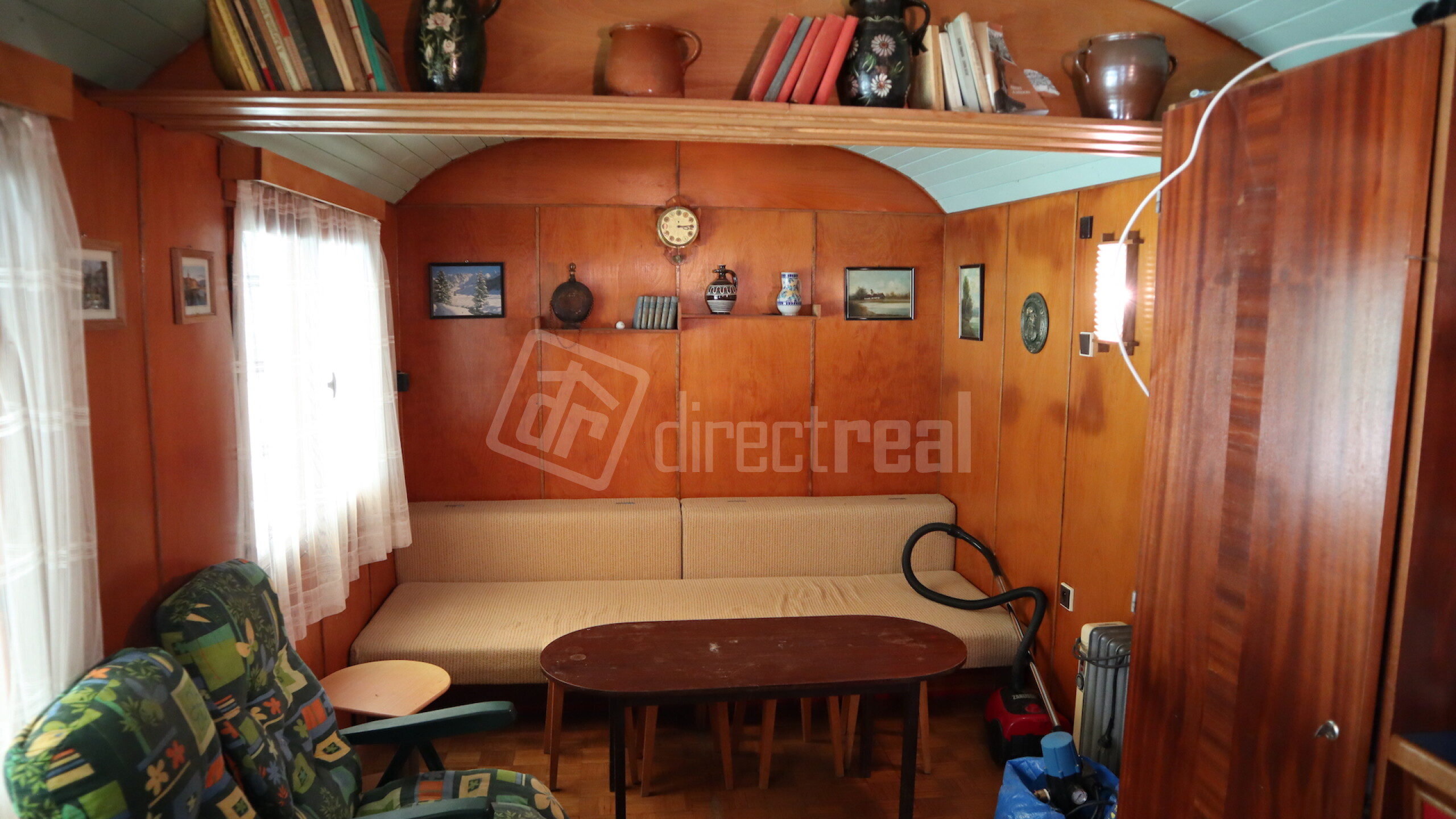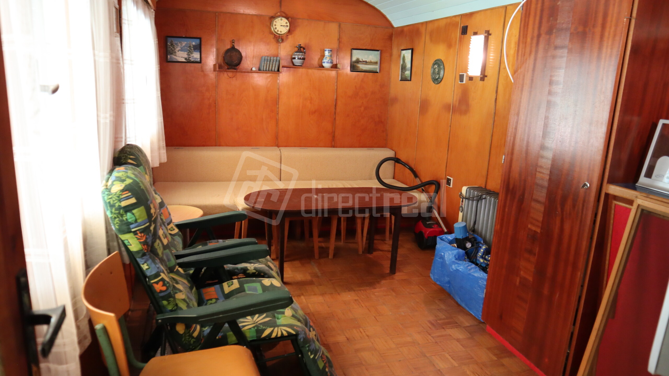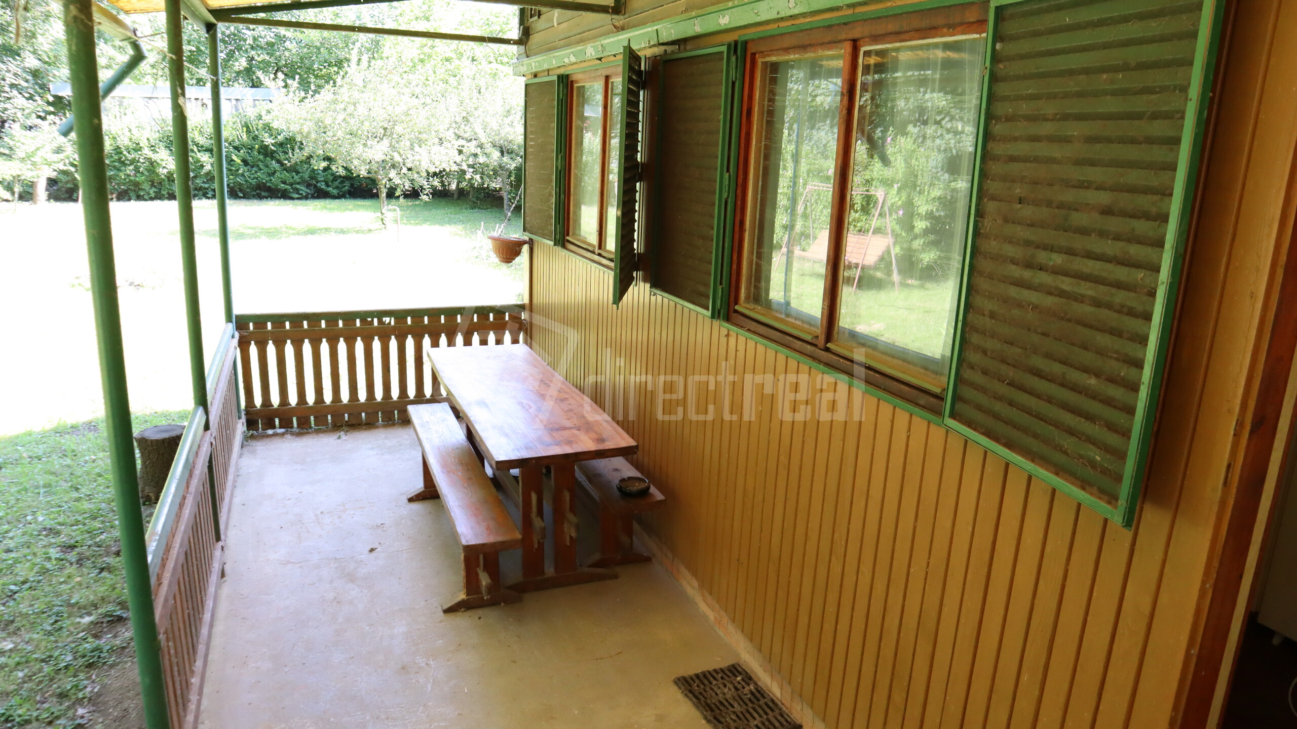 Čo Ťa čaká v tejto kúzelníckej chatke? Predsieň, útulná izbička, kuchynský kút, toaleta a dokonca aj záhradná sprcha vzadu za chatou! A čo poviem na krytú terasu s posedením? Ideálne miesto na relax a grilovačku! Celý tento raj tvorí skelet vlakového voza obložený drevom zvonka aj zvnútra, a na strechu sa usmieva klasická sedlová strecha. Chatka je pripojená na elektriku 220/380V a studňu, takže Ti v nej nič nebude chýbať!