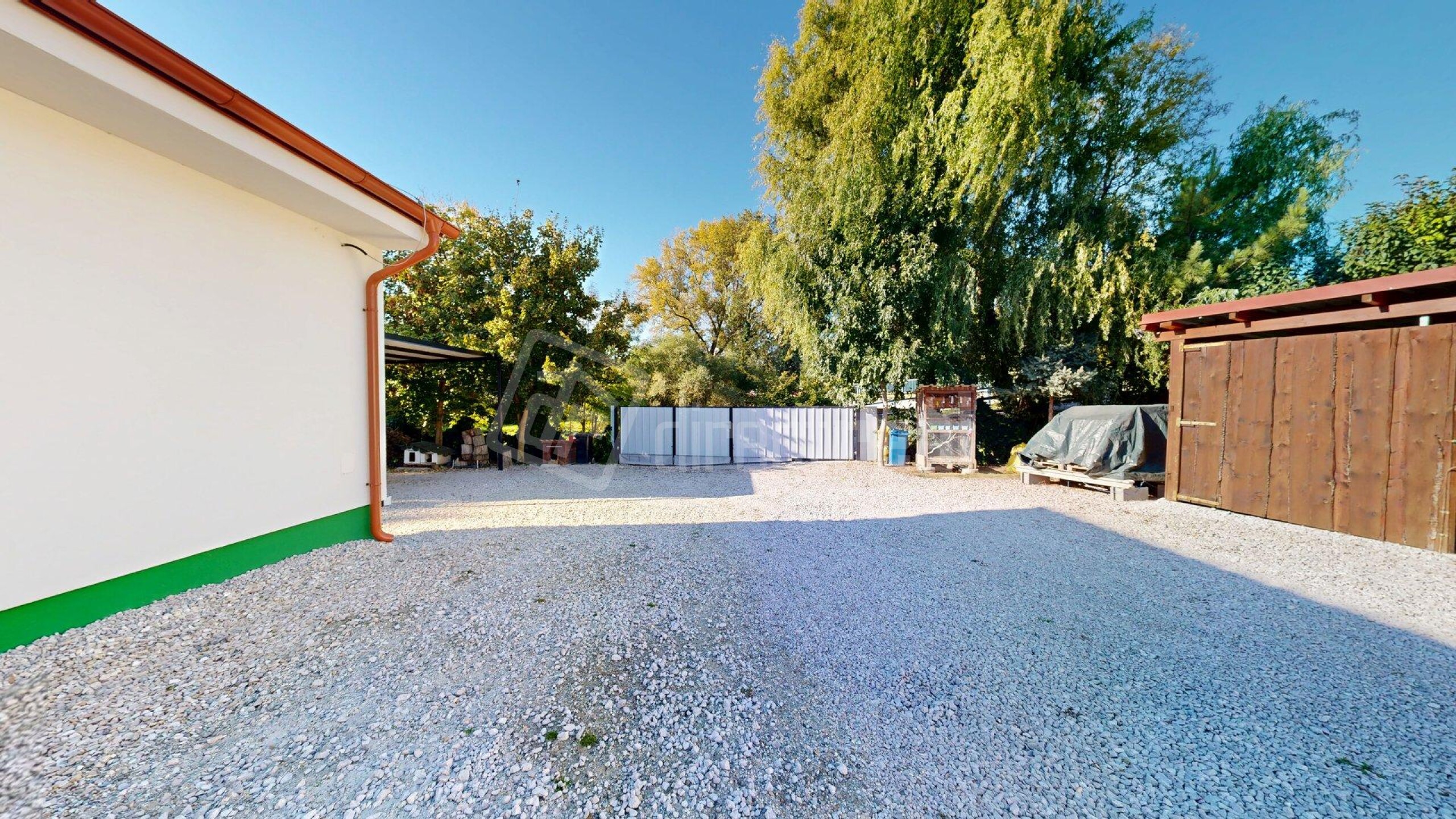 Zadná časť pozemku je momentálne využívaná ako presvetlená záhrada, ktorá poskytuje absolútne súkromie a priestor na oddych, pestovanie alebo relax v prírodnom prostredí.