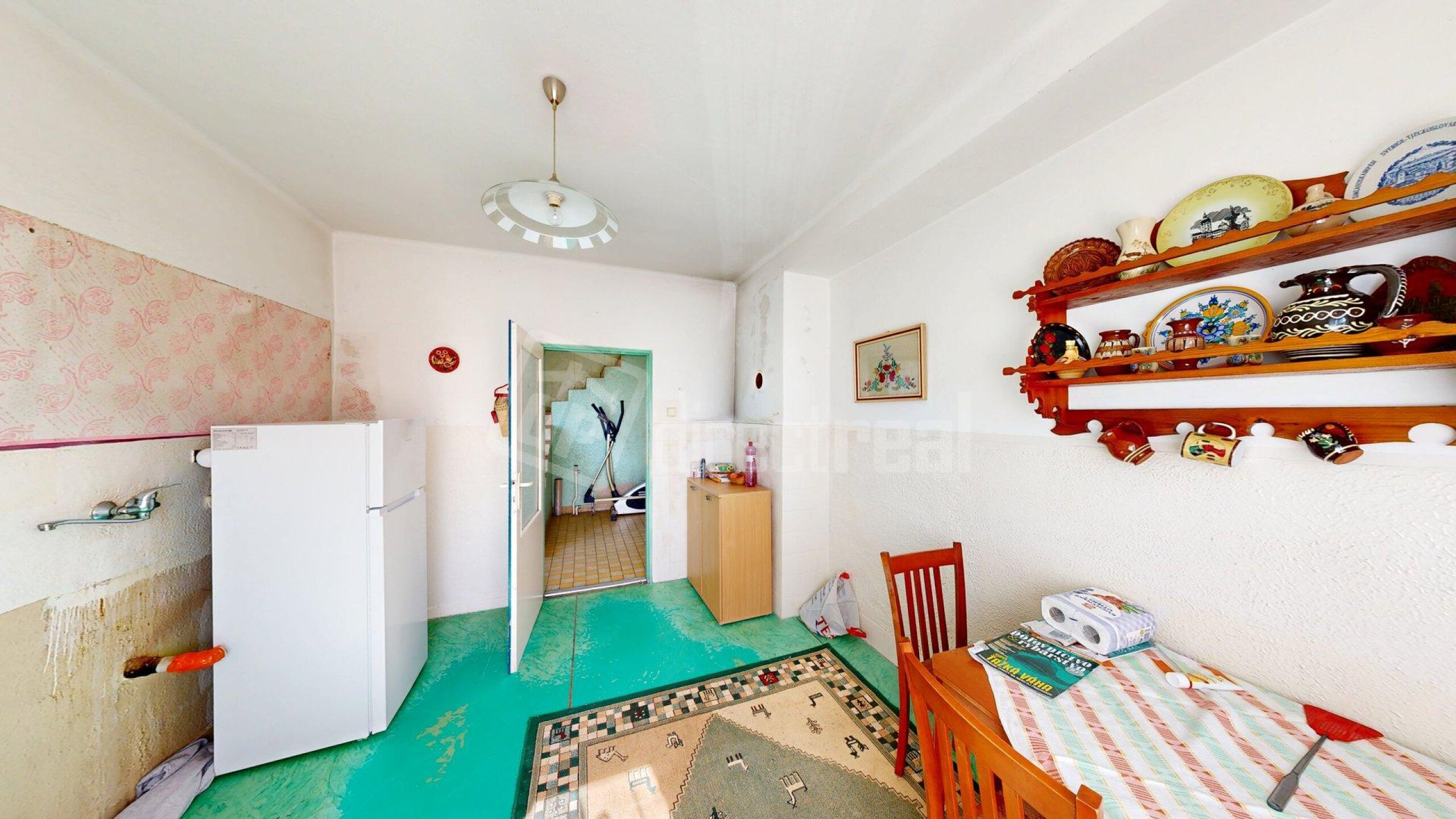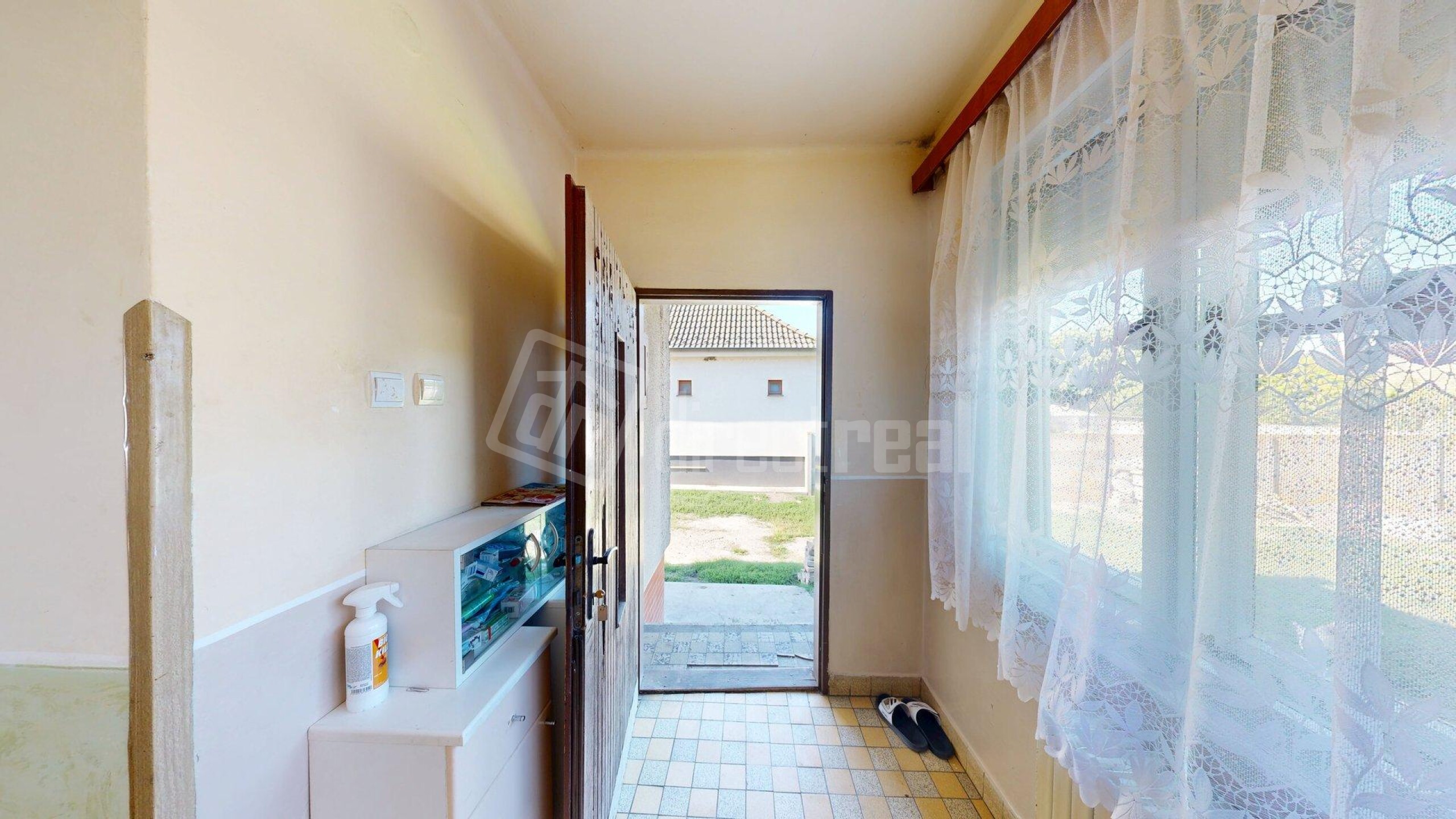 Predsieň, chodba, samostatná toaleta, kúpeľňa s vaňou, vchod do pivnice, kuchyňa, špajza, obývacia izba