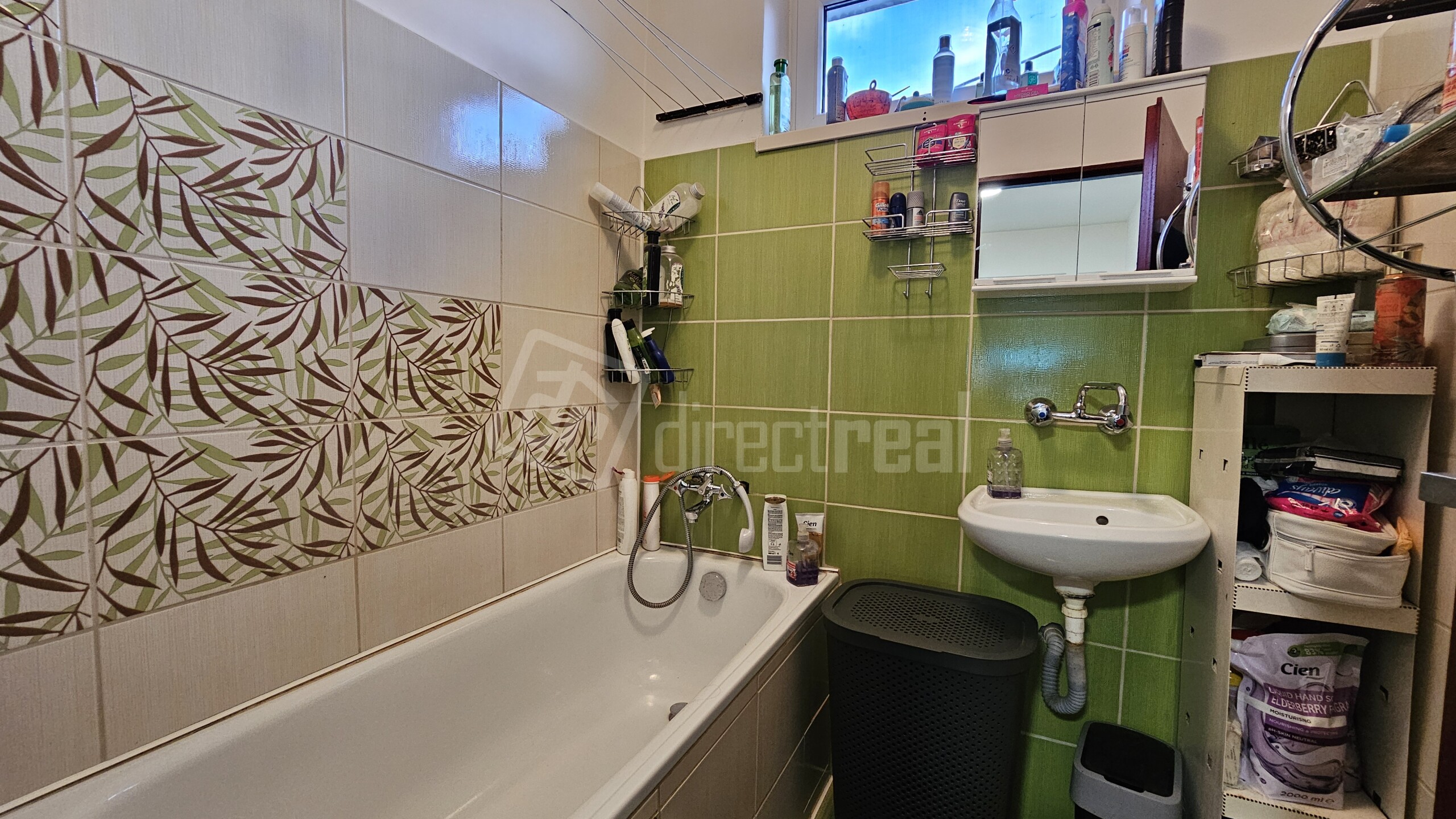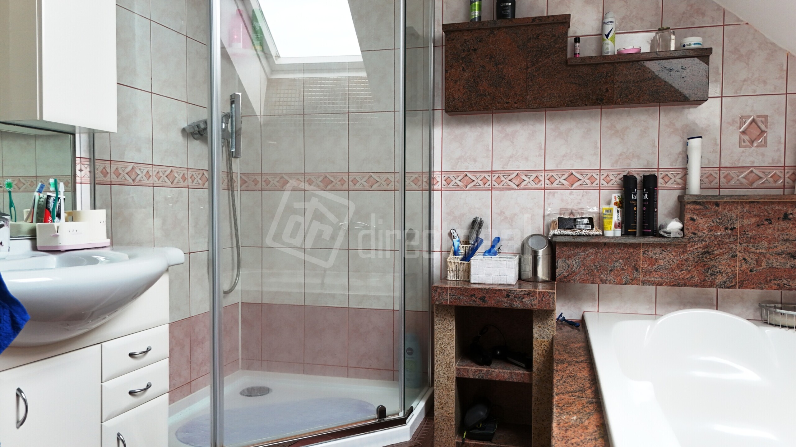 Kúpeľňa disponuje vaňou a sprchovým kútom, na chodbe je toaleta s umývadlom. V technickej miestnosti je umiestnený bojler a práčka.
