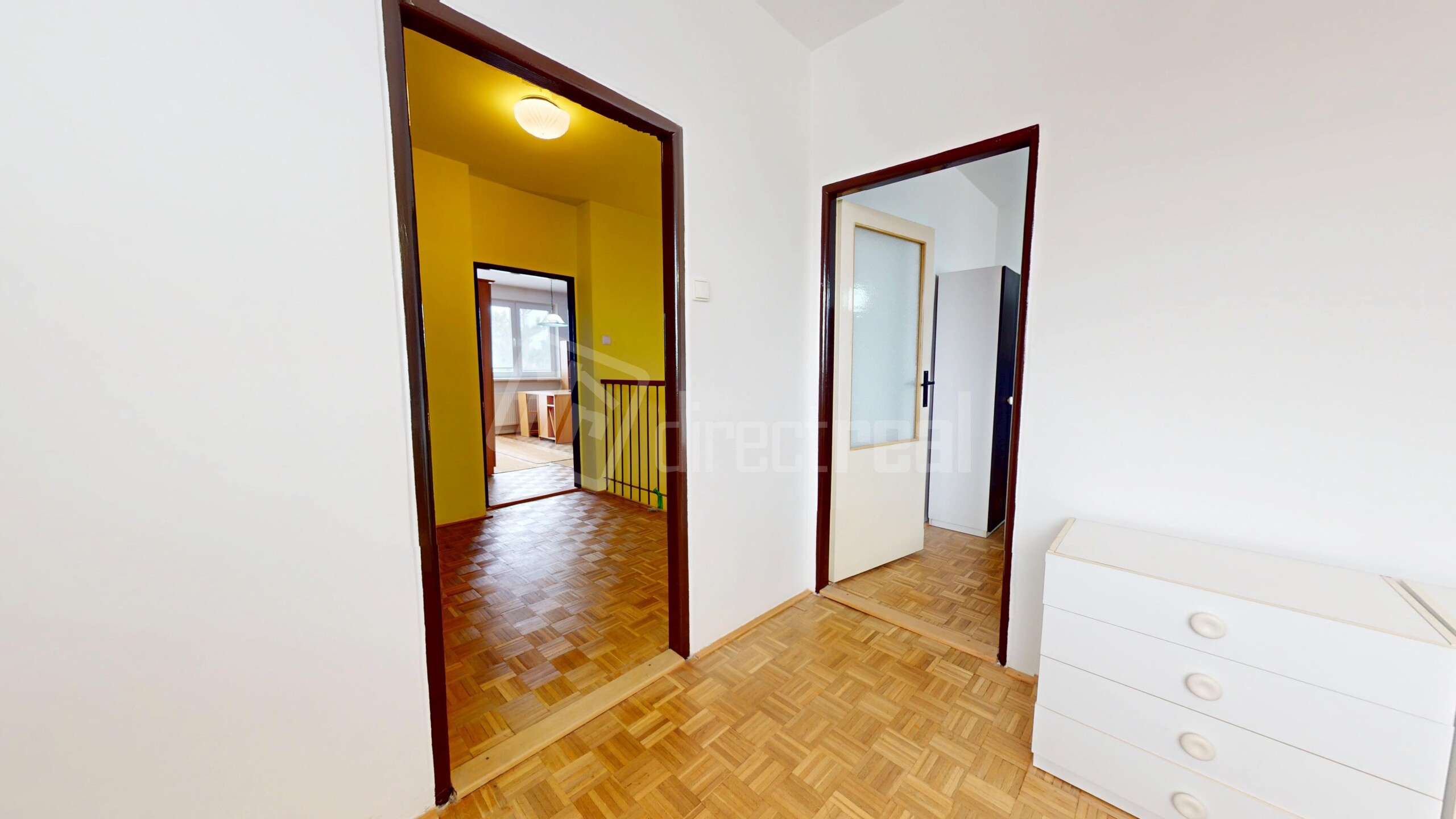 Na poschodí sa nachádzajú tri izby – dve sú samostatné a jedna je prechodná, čo ponúka rôzne možnosti využitia (detské izby, pracovňa či hosťovská izba). Praktickým bonusom je šatník, ktorý zabezpečí dostatok úložného priestoru.