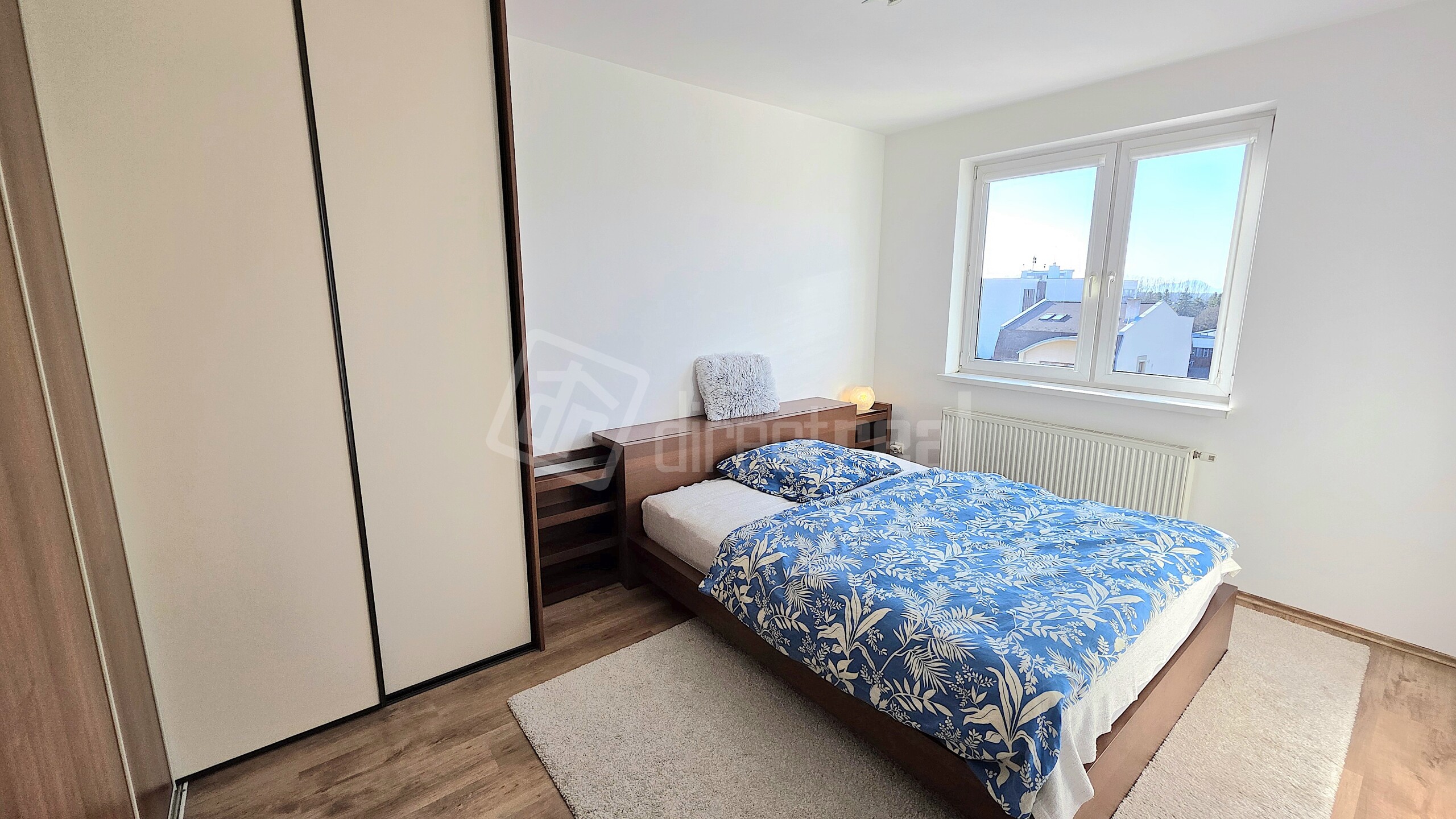 Tento 2-izbový byt má veľmi dobrú dispozíciu - vstup so šatníkovou skriňou, obývacia izba s kuchyňou, spálňa a kúpeľňa s WC na výmere 44 m2, plus 3 m2 loggia so slnečnou západnou orientáciou, plus 2,2 m2 pivnica a ako bonus 11,5 m2 vlastné parkovacie miesto vo dvore.