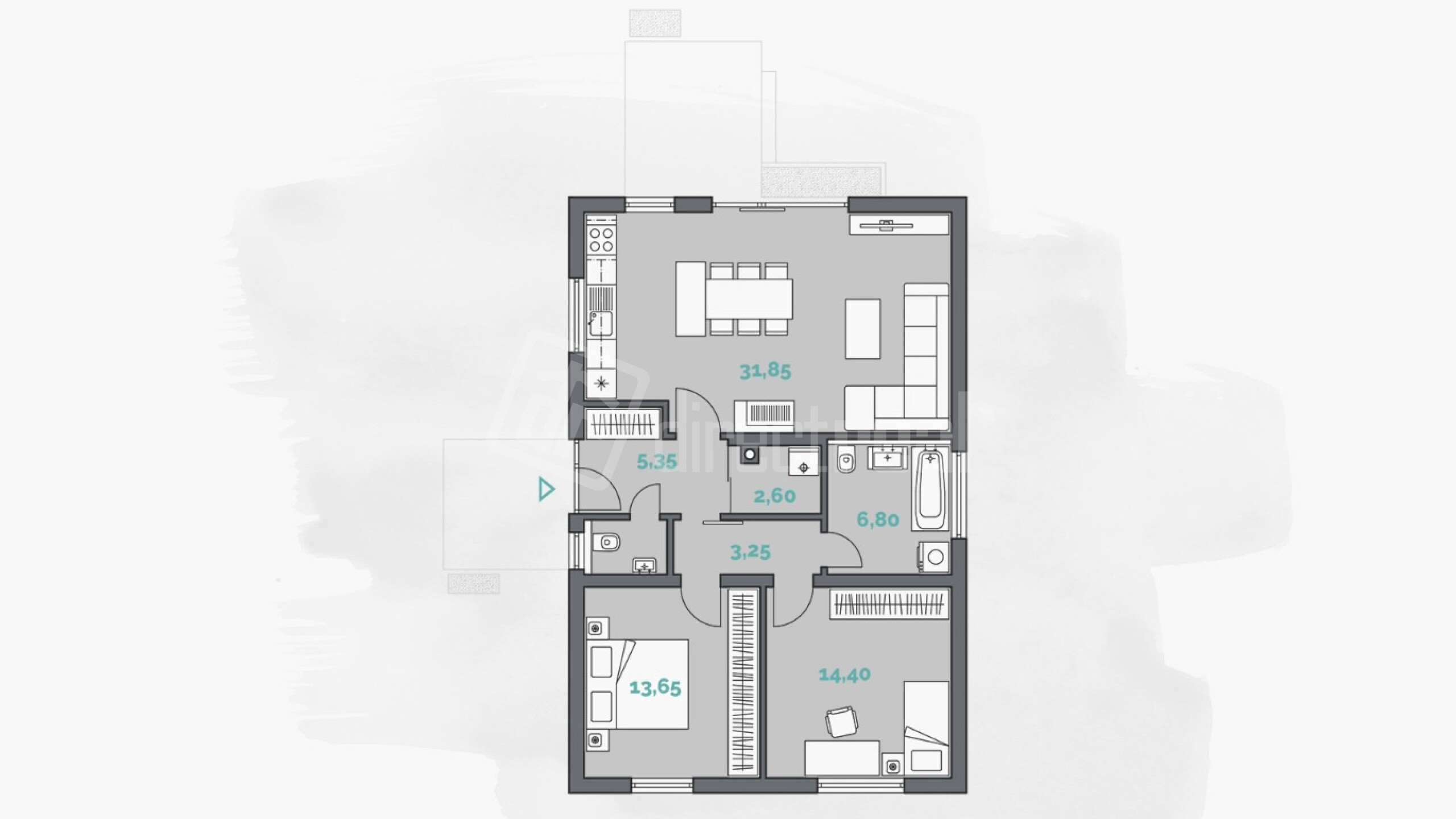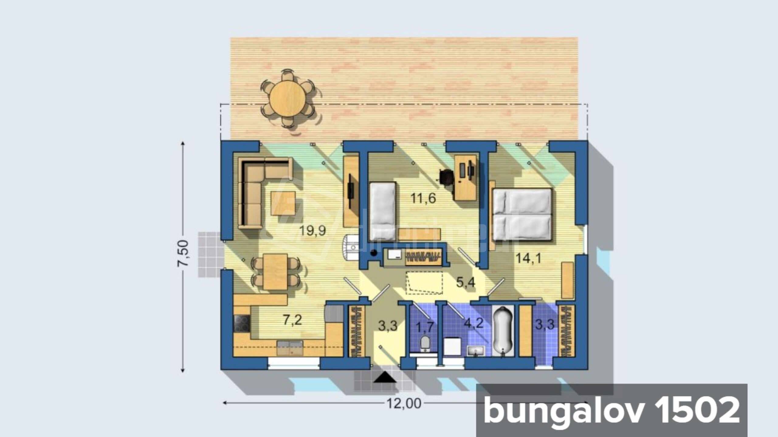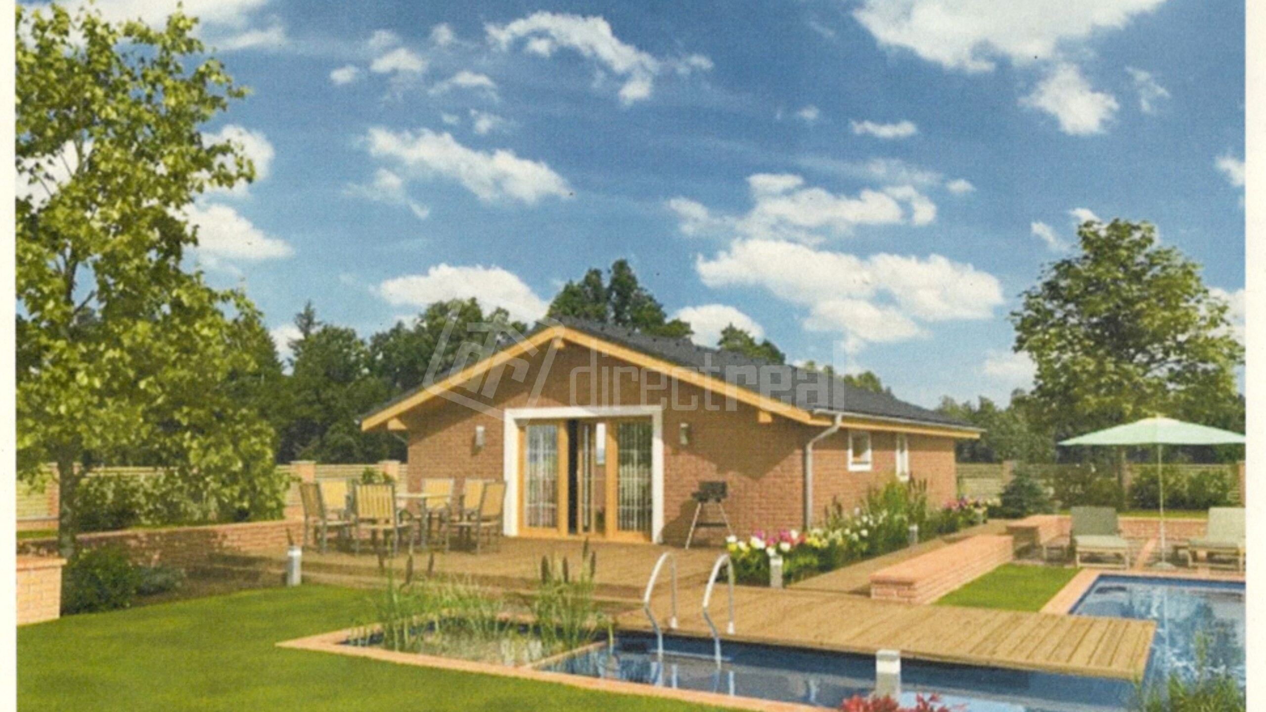 Obvodové murivo: Tehla – 300 mm Priečky: Tehla – 150 mm – 100 mm Zateplenie exteriéru: Polystyrén 150 mm – štandard Minerálna vlna 150 mm – nadštandard (príplatok) Omietka stien interiéru: Sadrová striekaná Kúrenie: Teplovodné – podlahové Elektrický kotol – štandard Tepelné čerpadlo – nadštandard (príplatok) Zateplenie stropu: Minerálna izolácia hr. 300 mm Strešná krytina: Tvrdá – škridla, prípadne plech (podľa typu domu) Výplne otvorov: Plastové – izolačné trojsklo, 6-komorové, hr. 80 mm Podlahy: Laminátová podlaha CLASSEN SKYLINE POOL Dvere: DTD plné laminátové Zárubňa: Obložková falcová CPL laminát – 600–900 / 1970 mm WC + kúpeľňa: Dlažba + obklad do výšky 2 m Povrchová úprava stien (interiér): Maľba – biela Cena nezahŕňa: