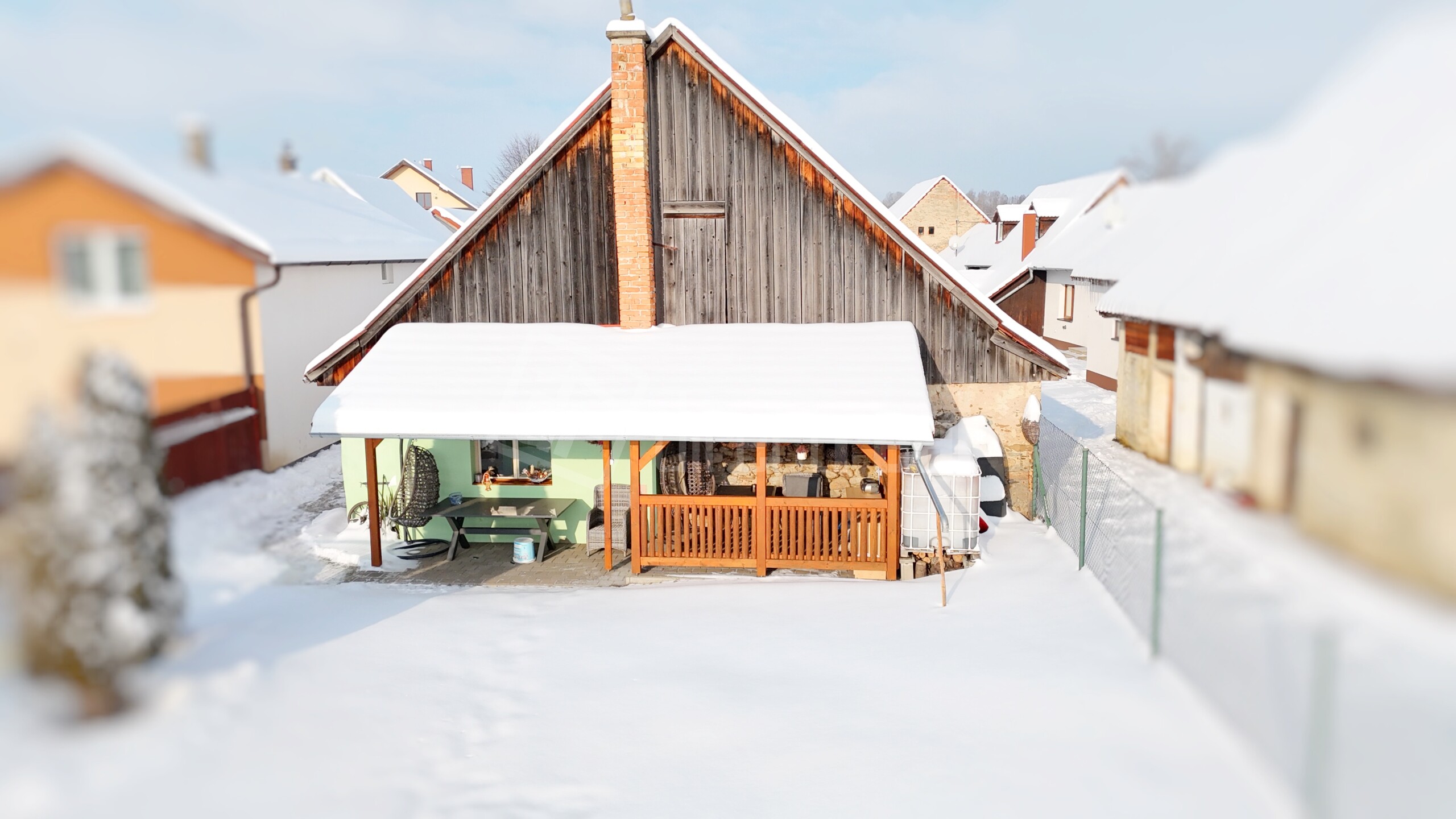 Dom má jednu spoločnú stenu s chalupármi a spoločný dvor, čo vytvára príjemnú, pokojne fungujúcu komunitu. Priami susedia sú chalupári a ostatní obyvatelia v okolí sú pozitívne naladení, slušní a priateľskí – presne ten typ susedstva, kde sa cítite dobre od prvého dňa 🤝😊.