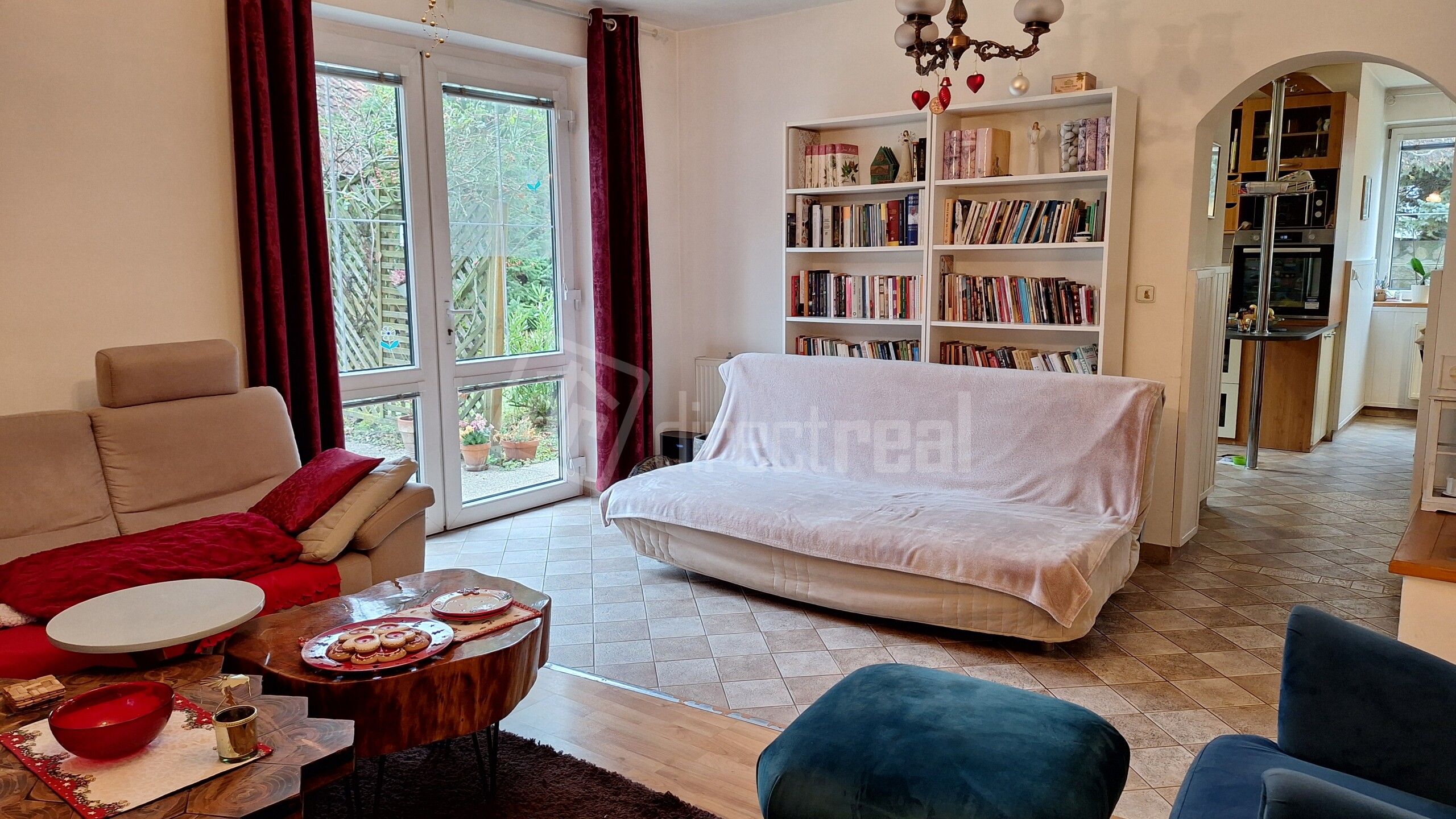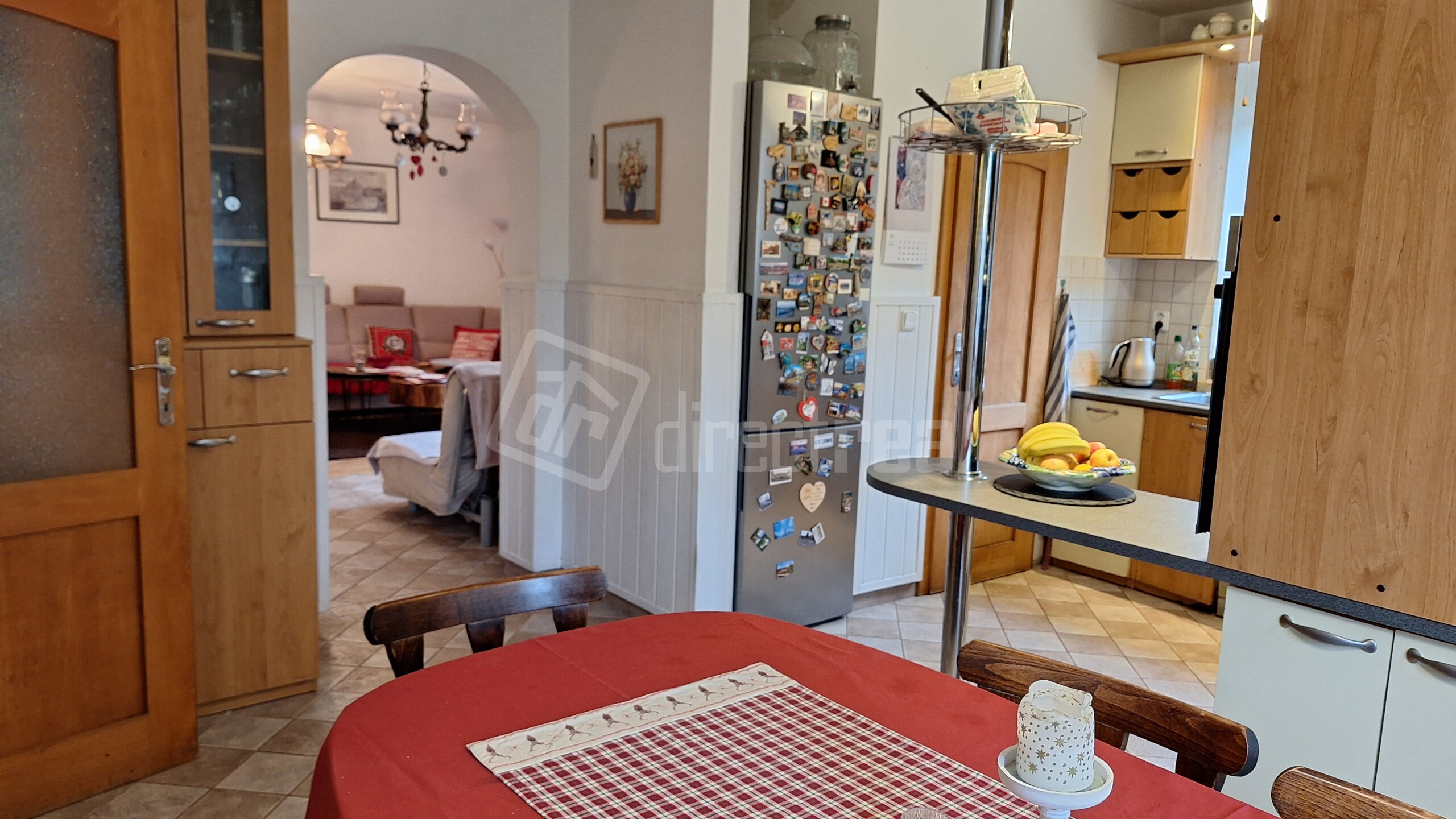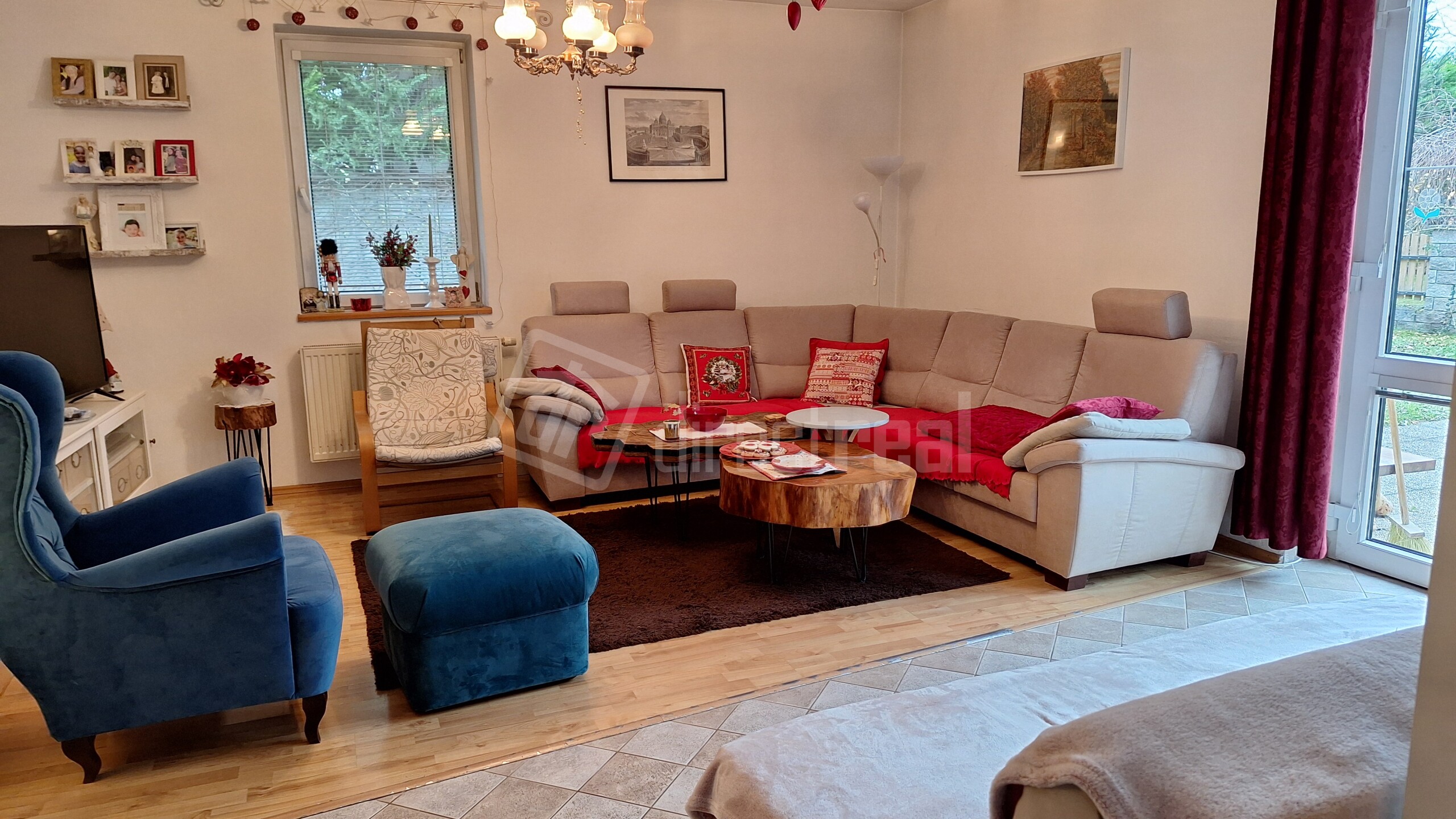Obývačka je prepojená dverovým otvorom s jedálňou a kuchyňou.