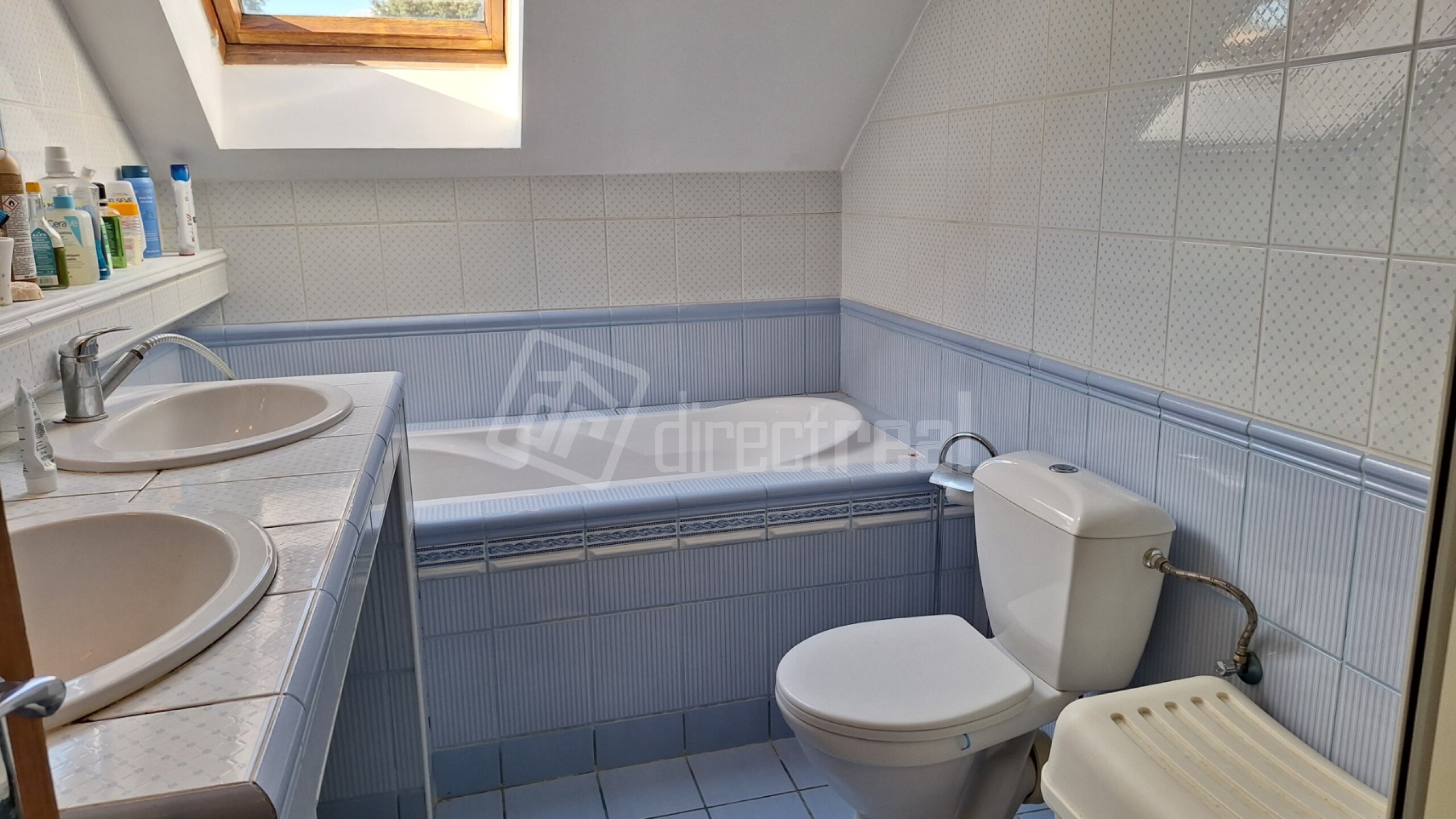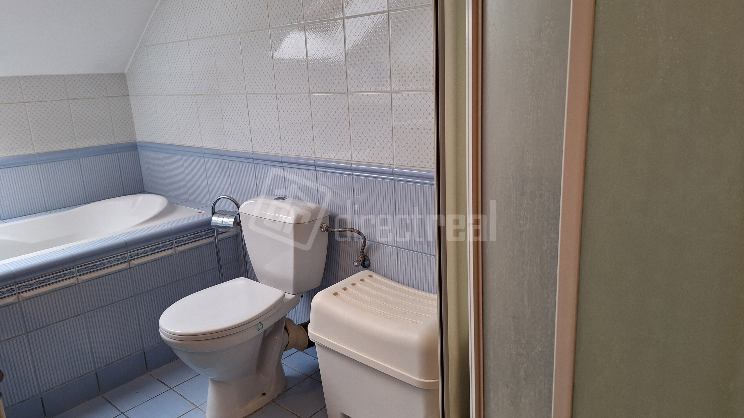 Na poschodí je tiež kúpeľňa s vaňou, sprchovacím kútom, dvoj-umývadlom a WC. V tejto kúpeľni sú nové vodovodné batérie.