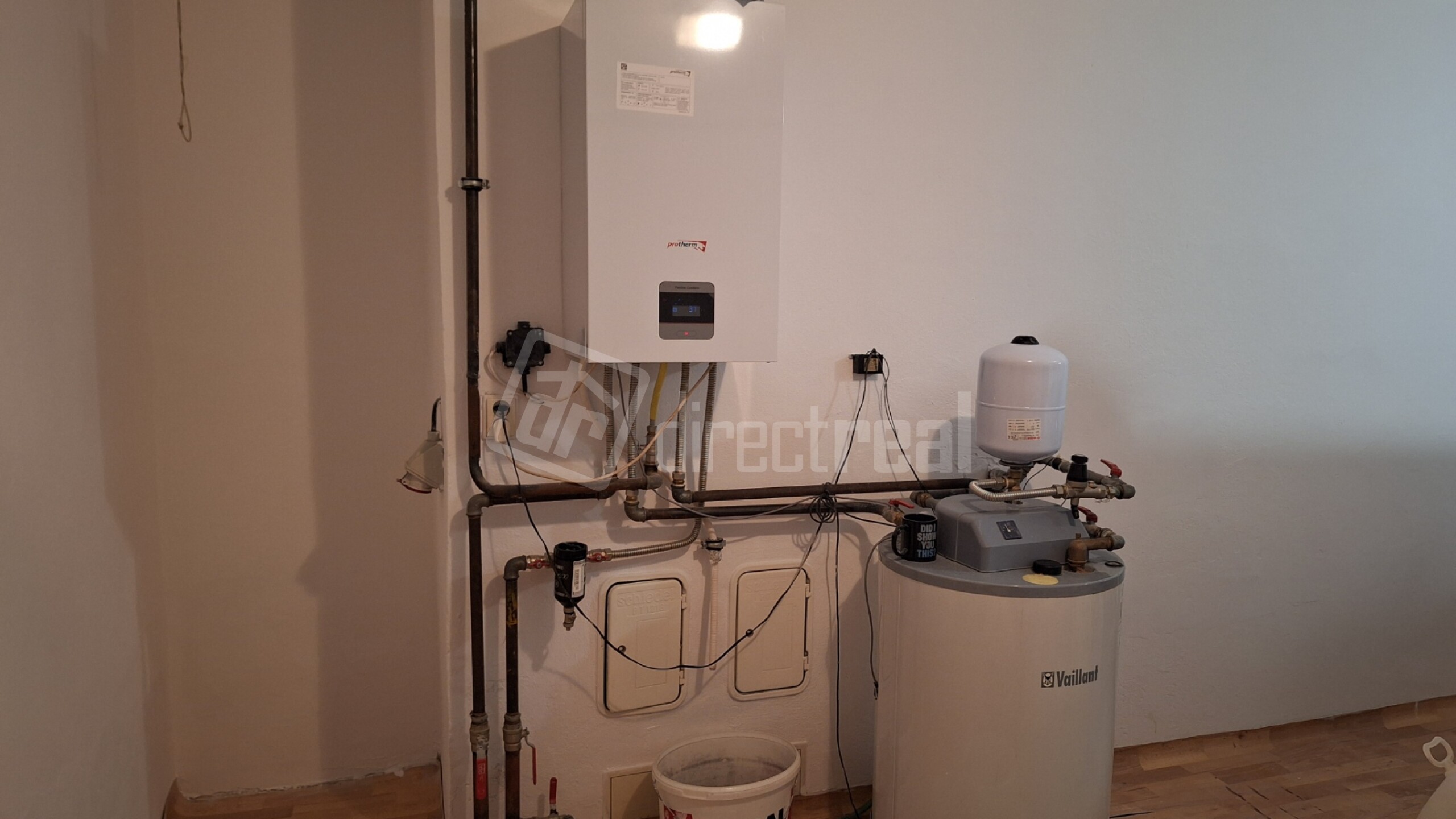 Rodinný dom je pripojený na nový plynový kondenzačný kotol zn. PROTHERM, ktorý slúži na kúrenie v celom dome a ohrev vody.