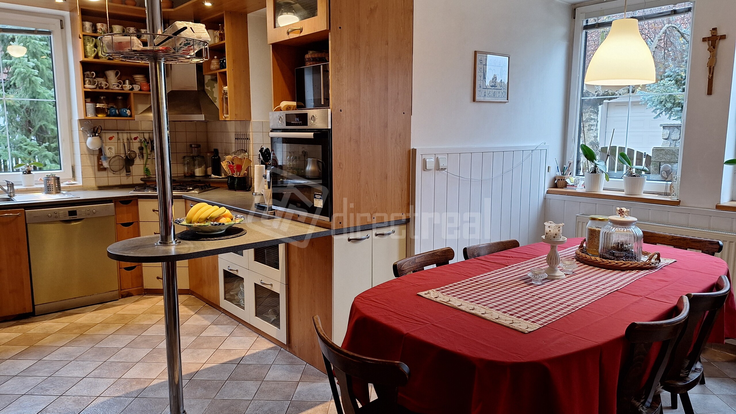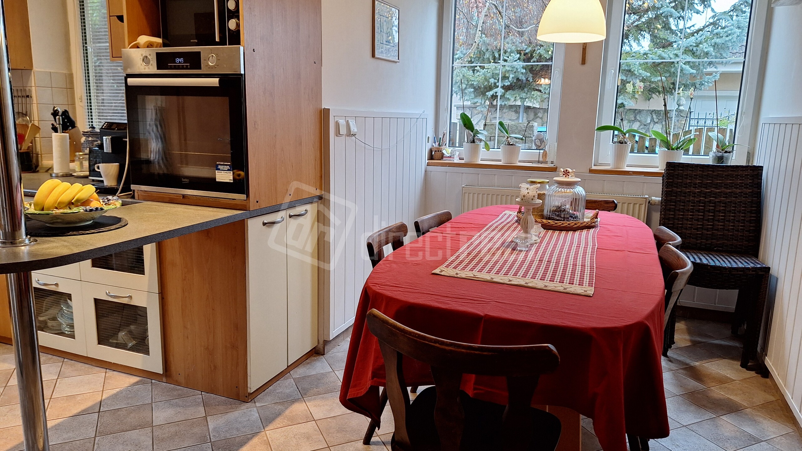 Kuchyňa má okná na juh a západ a jedáleň má 2 okná na západ.
