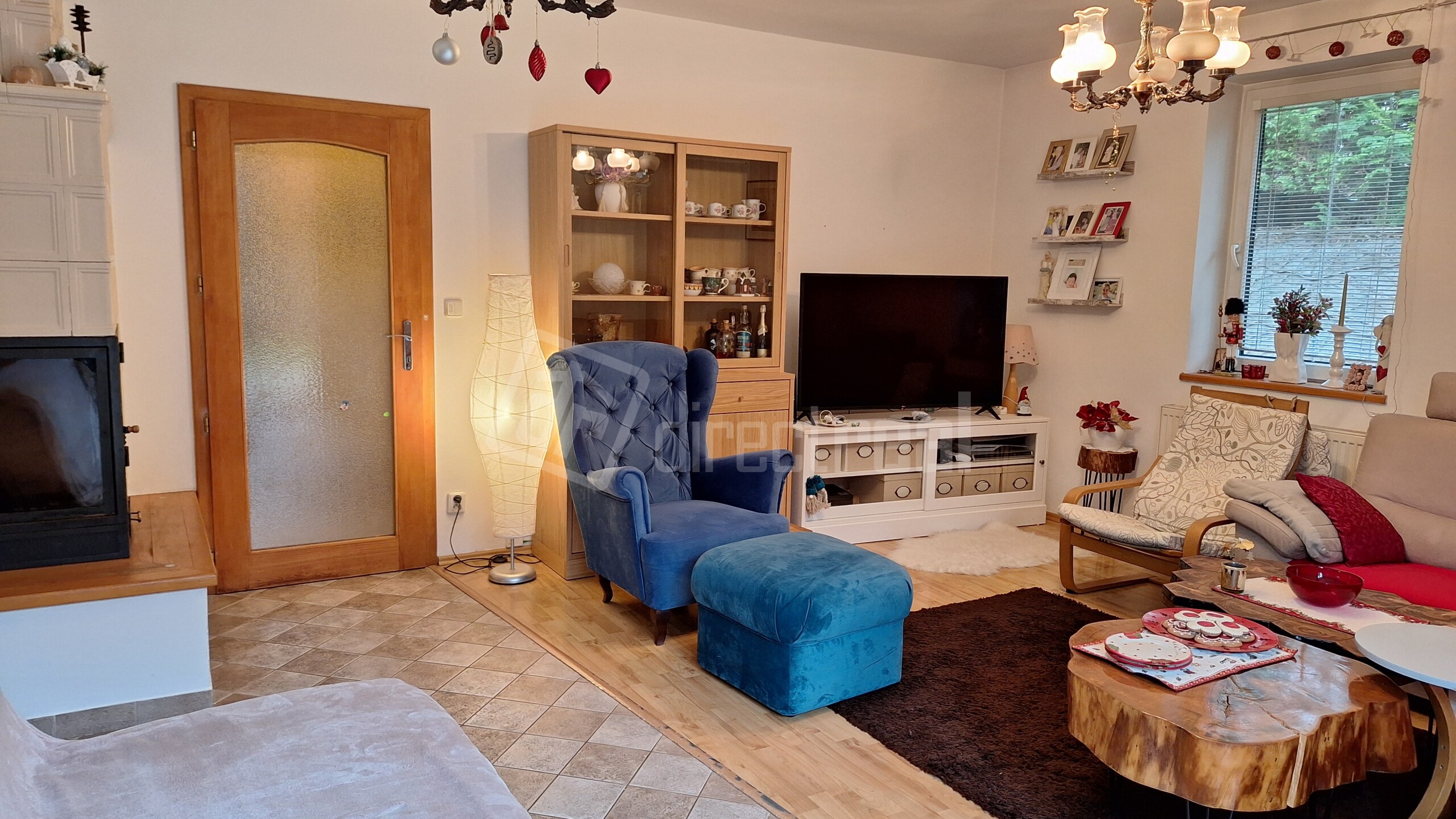 V obývačke sa nachádza krb na tuhé palivo.