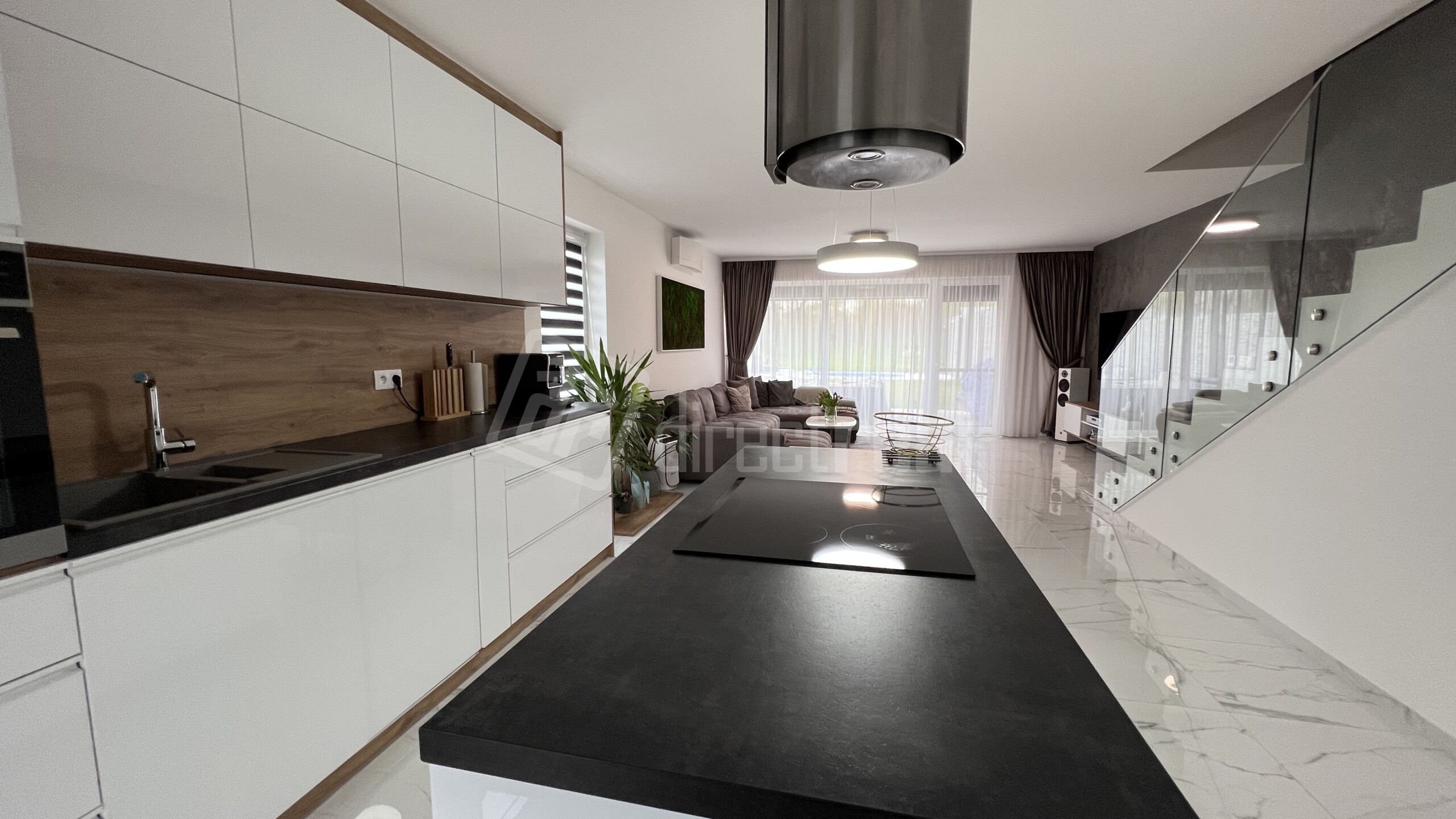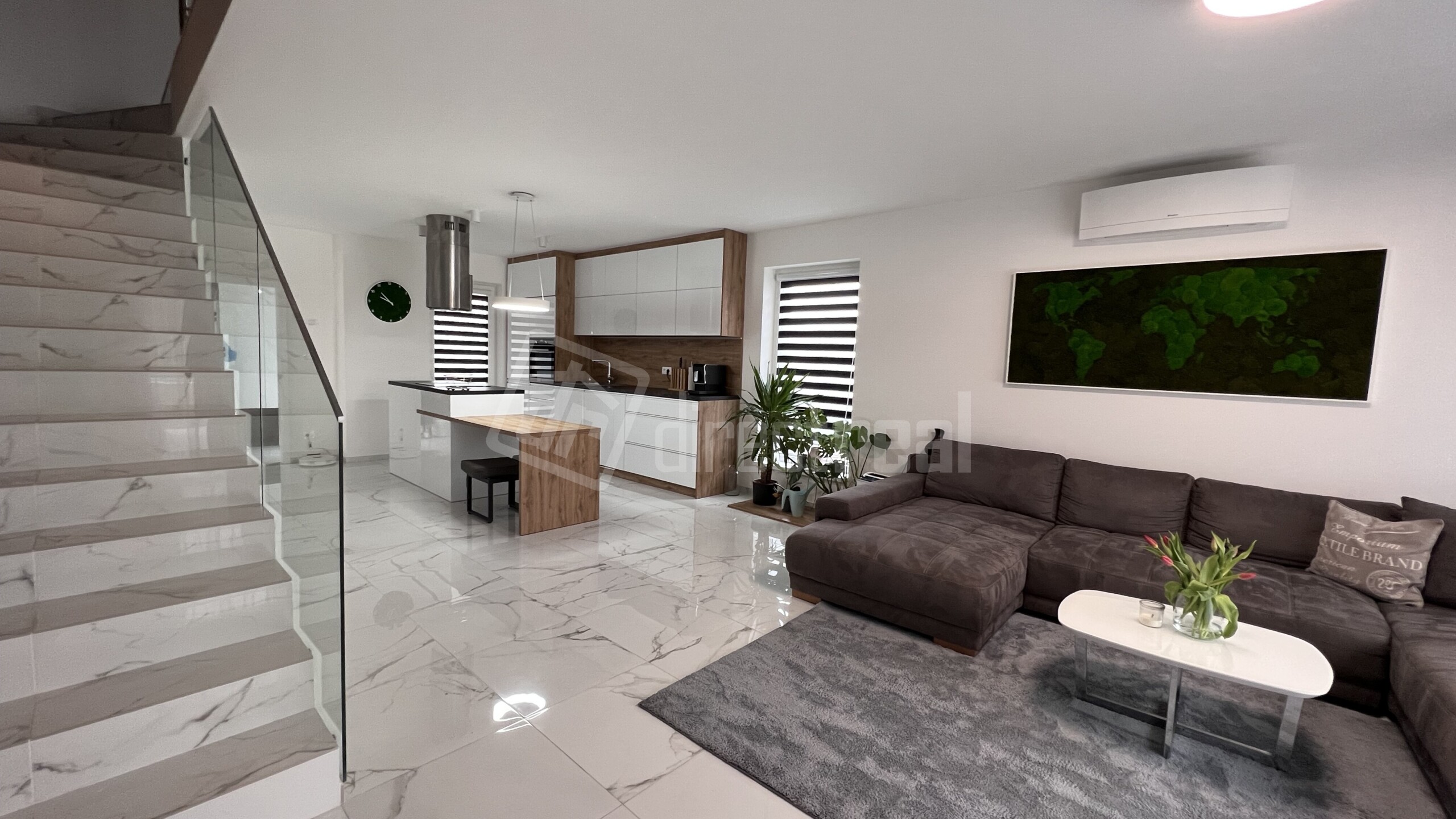 Z haly je vstup do veľkej obývačky s rozlohou 32 m2.
