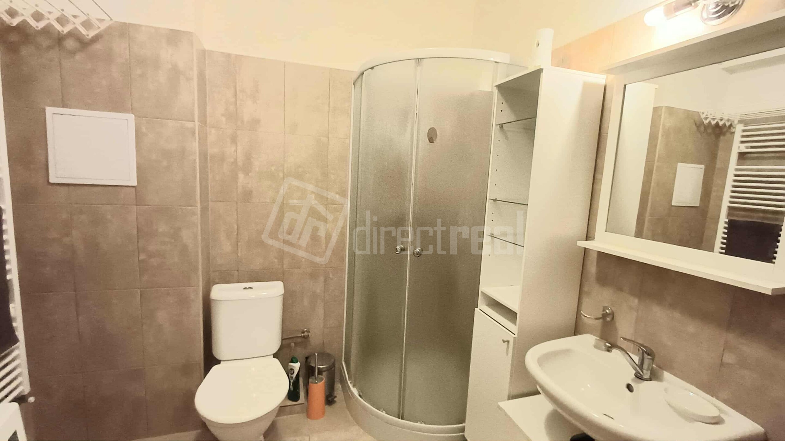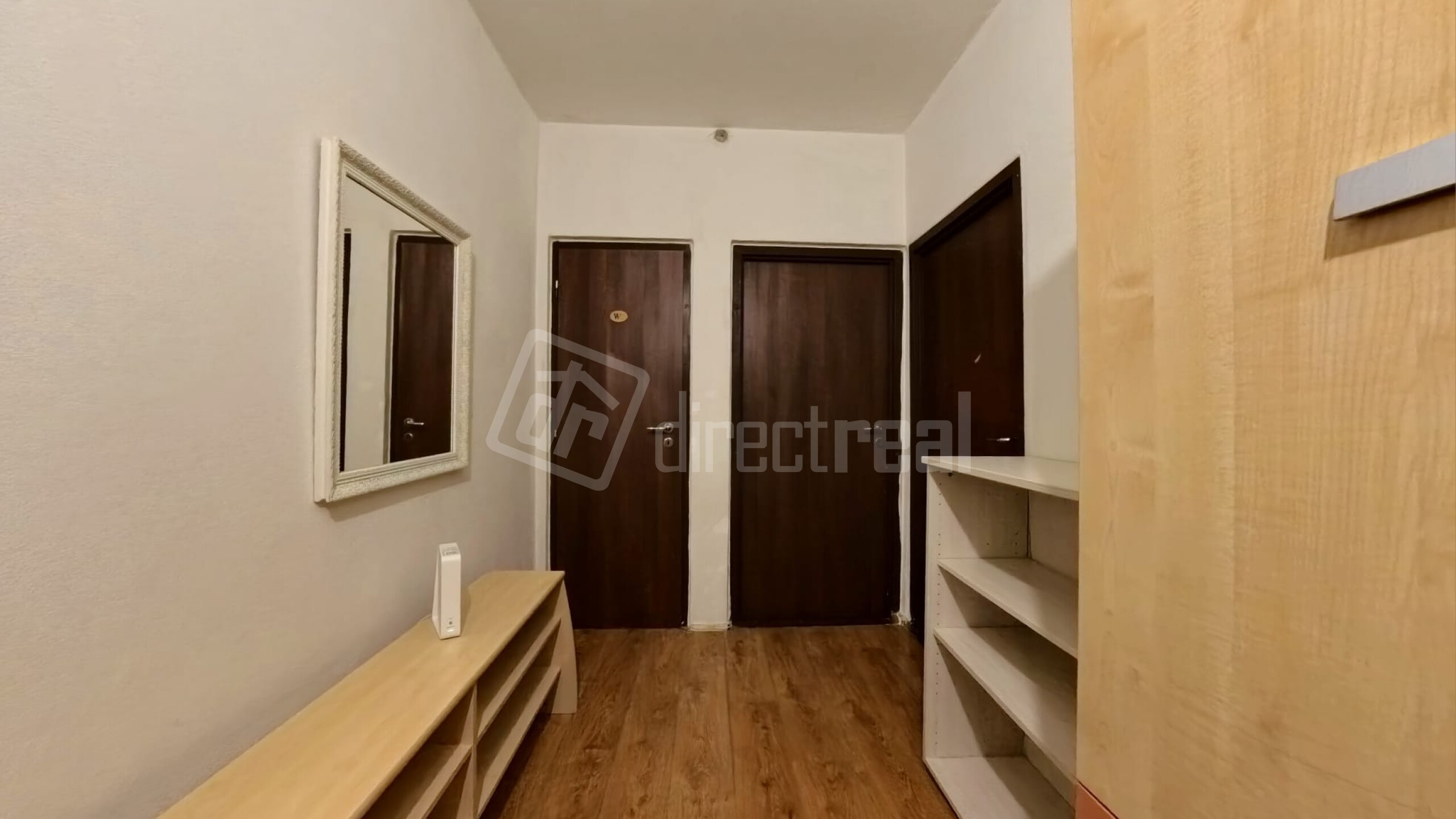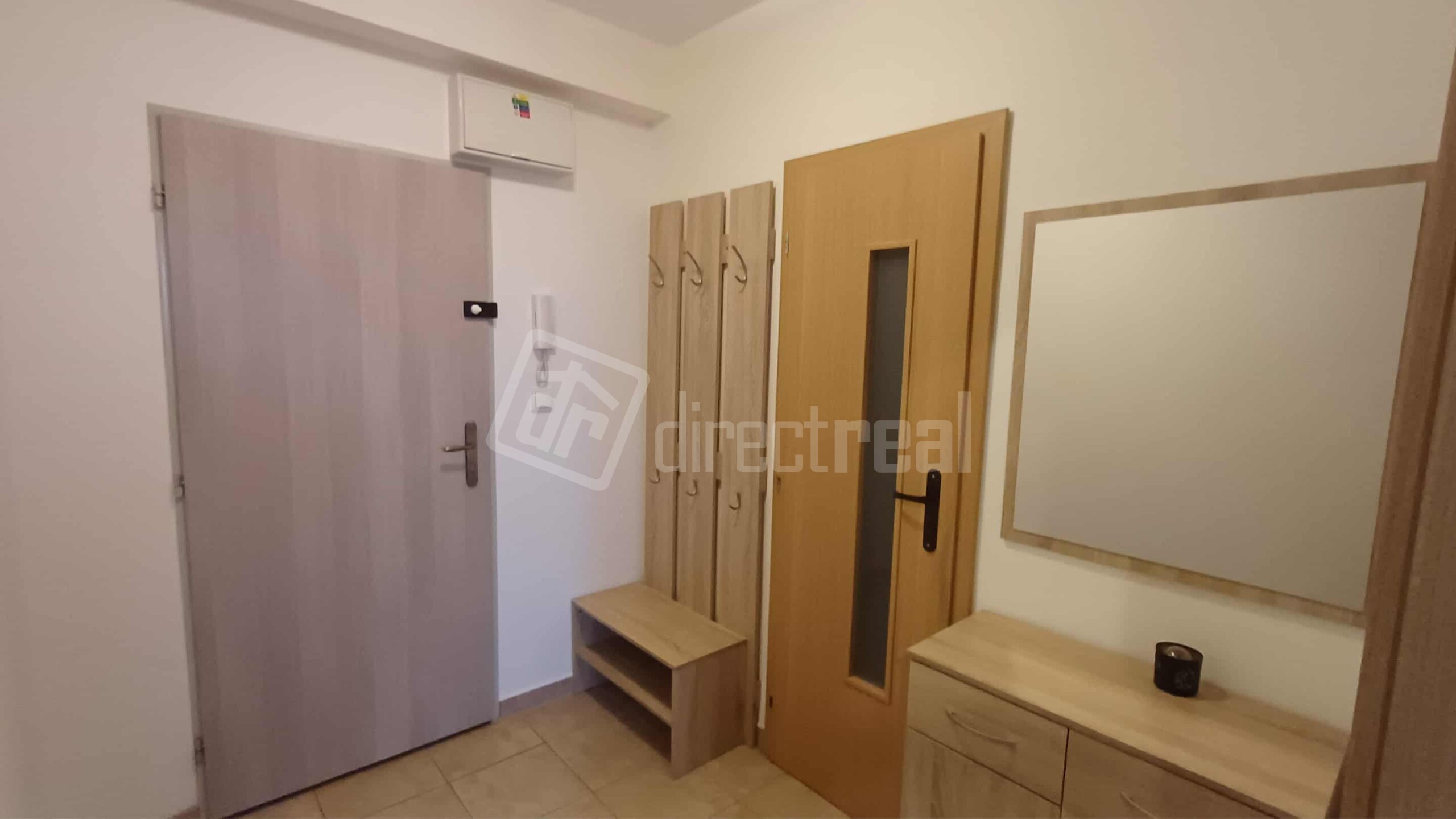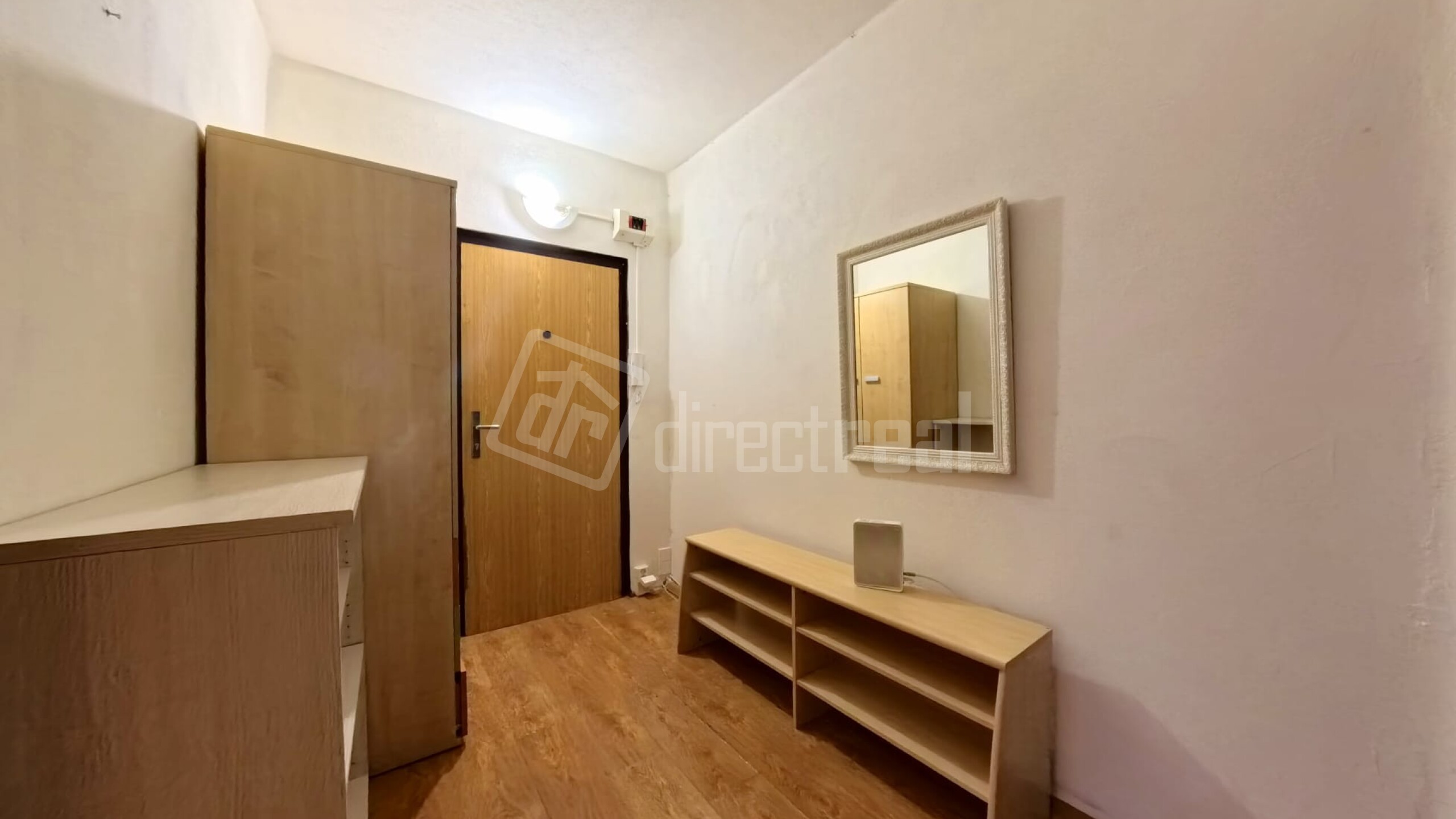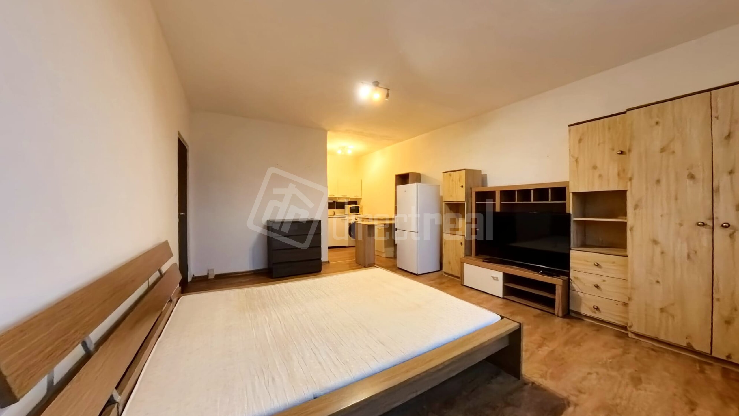 Byt disponuje priestrannou predsieňou. Po ľavej strane sa nachádza kúpeľňa so sprchovým kútom a toaletou. Z predsiene sa vstupuje do obývačky spojenej s kuchyňou a po ľavej strane sa nachádza spálňa.