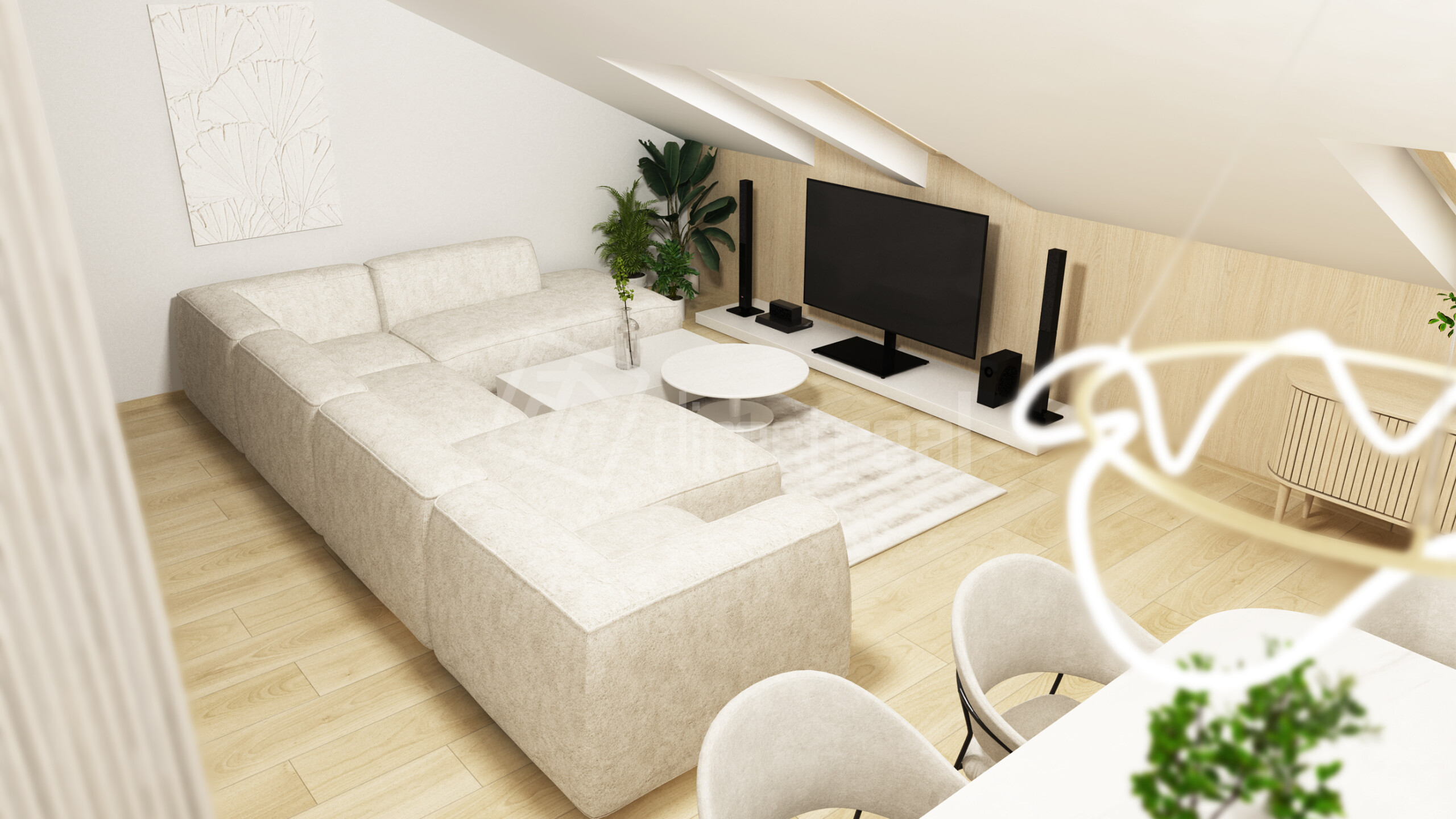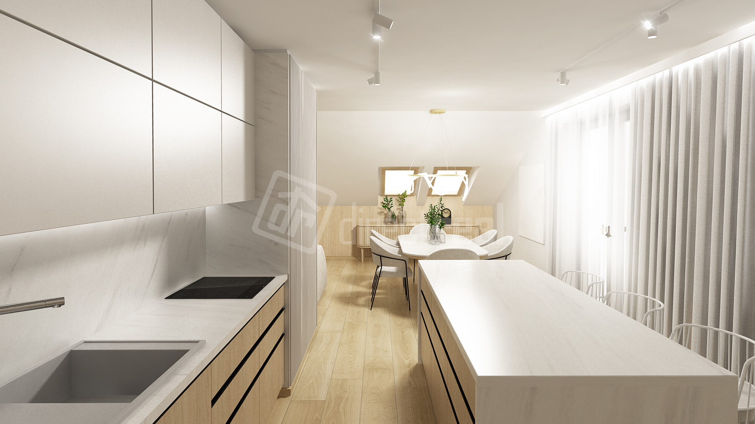 3 izbový veľkometrážny byt s výmerou necelých 92m2 plus balkón 4,73m2 je situovaný na vrchnom 4 tom nadzemnom podlaží v podkroví. Sú tu niektoré okná podkrovné strešné a niektoré klasické, nakoľko je byt na dve svetové strany rozmiestnený. Po vstupe do bytu je na chodbe priestor na veľký šatníkový rooldor. Všetky miestnosti sú samostatné nepriechodné. WC je samostatné s malým umývadlom. Kúpeľňa je veľká komfortná s priestorom na 2 umývadlá, prípadne 2 práčky , s vaňou aj so sprchovým kútom. Obývacia miestnosť je jeden veľký otvorený priestor ,spojený s kuchyňou a s výstupom na balkón. Navyše pri kuchyni je veľká potravinová špajza, čo je veľkým bonusom. Naše video Vám priblíži dispozíciu bytu a vizualizácie pre inšpiráciu využitia celého priestoru.