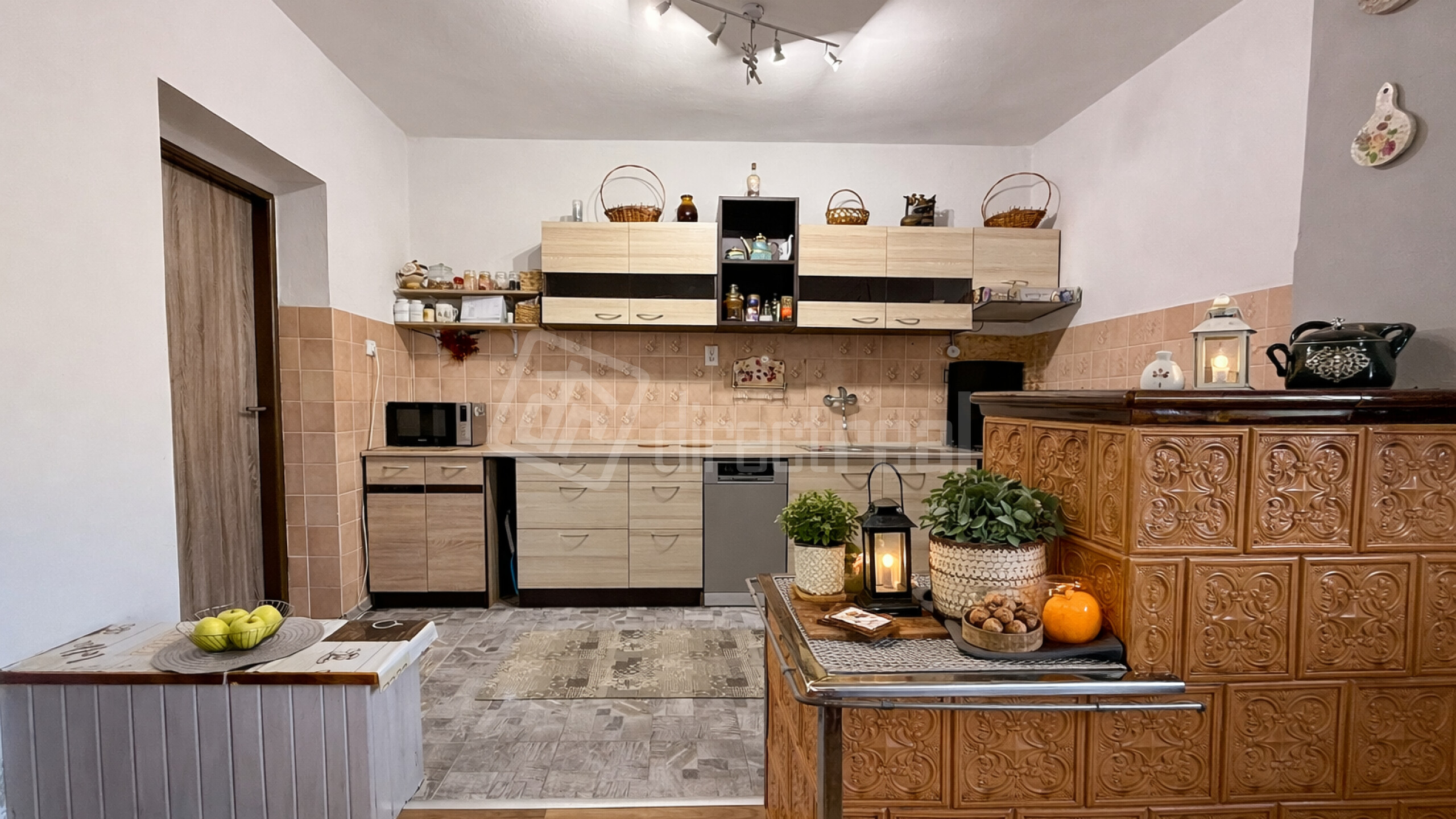 V suteréne je kotolňa, v ktorej sa nachádza plynový kotol aj kotol na tuhé palivo. V kuchyni sú nádherné krbové kachle a v obývacej izbe je dominantou krb, ktorý vytvára príjemnú a útulnú atmosféru.