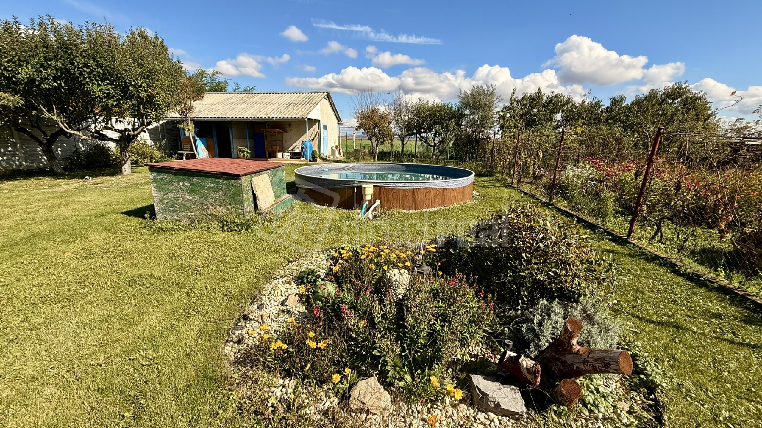 V exteriéri vás čaká priestranný pozemok o výmere 875 m² s krásne udržiavanou záhradou, záhradným domčekom, altánkom na posedenie a bazénom, skvelým na letné chvíle s rodinou či priateľmi. V záhrade je množstvo ovocných stromov jablone, broskyňa, hruška, nektárinka, figa a tiež drobné ovocie - maliny .