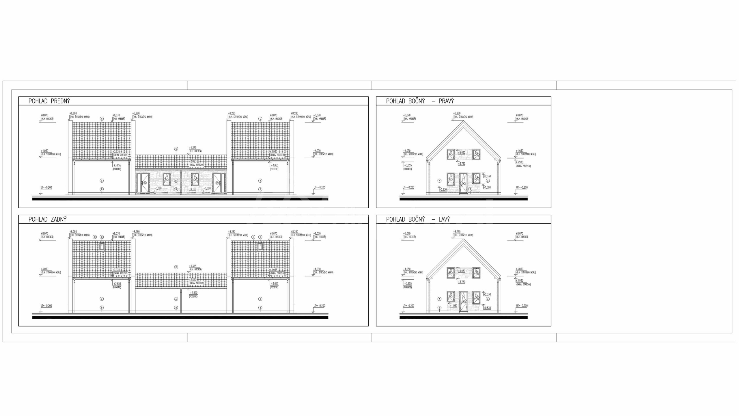 Popis pozemku: Ponúkame na predaj stavebný pozemok s projektom s právoplatným stavebným povolením na 2 rodinné dvojdomy v centre obce so všetkými IS.