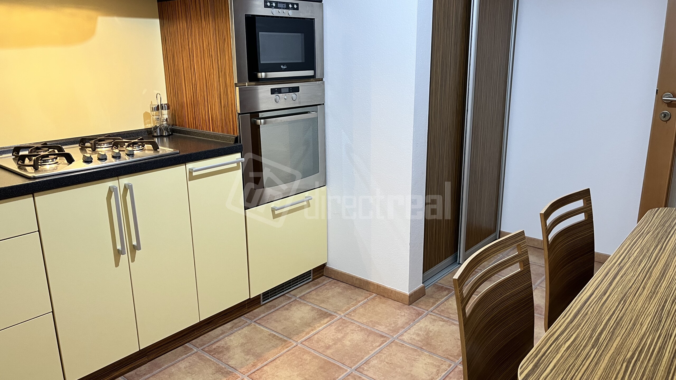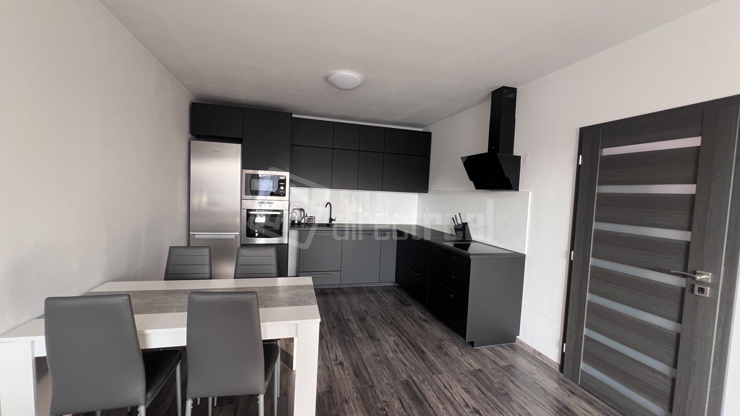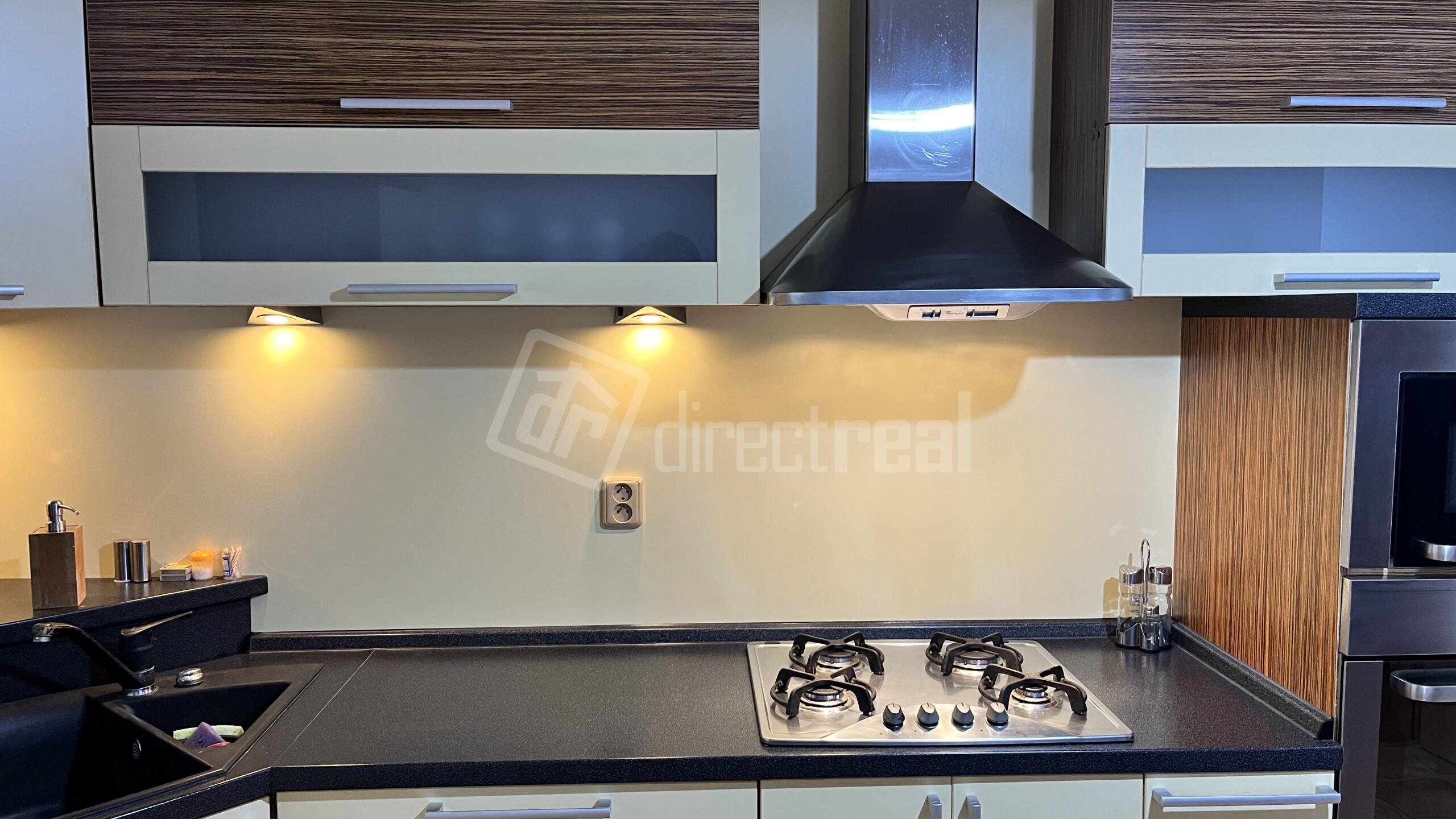 Veľkoryso riešená kuchynská linka na mieru je zariadená vstavanými spotrebičmi ako sú: chladnička s mrazničkou, umývačka riadu, elektrická rúra, elektrická varná doska, digestor. Kuchyňa je kompletne vybavená riadom. Súčasťou kuchyne je stôl so 4. stoličkami. Obývacia časť je zariadená sedacou súpravou, nábytkom a TV. V spálni je dvoj lôžko s úložným priestorom. V byte je samostatný šatník s policami. Elektrické podlahové kúrenie, vlastný zásobník na vodu a práčka. Okná majú žalúzie. K bytu patrí parkovacie státie, ktoré je zabezpečené rampou s diaľkovým ovládaním.