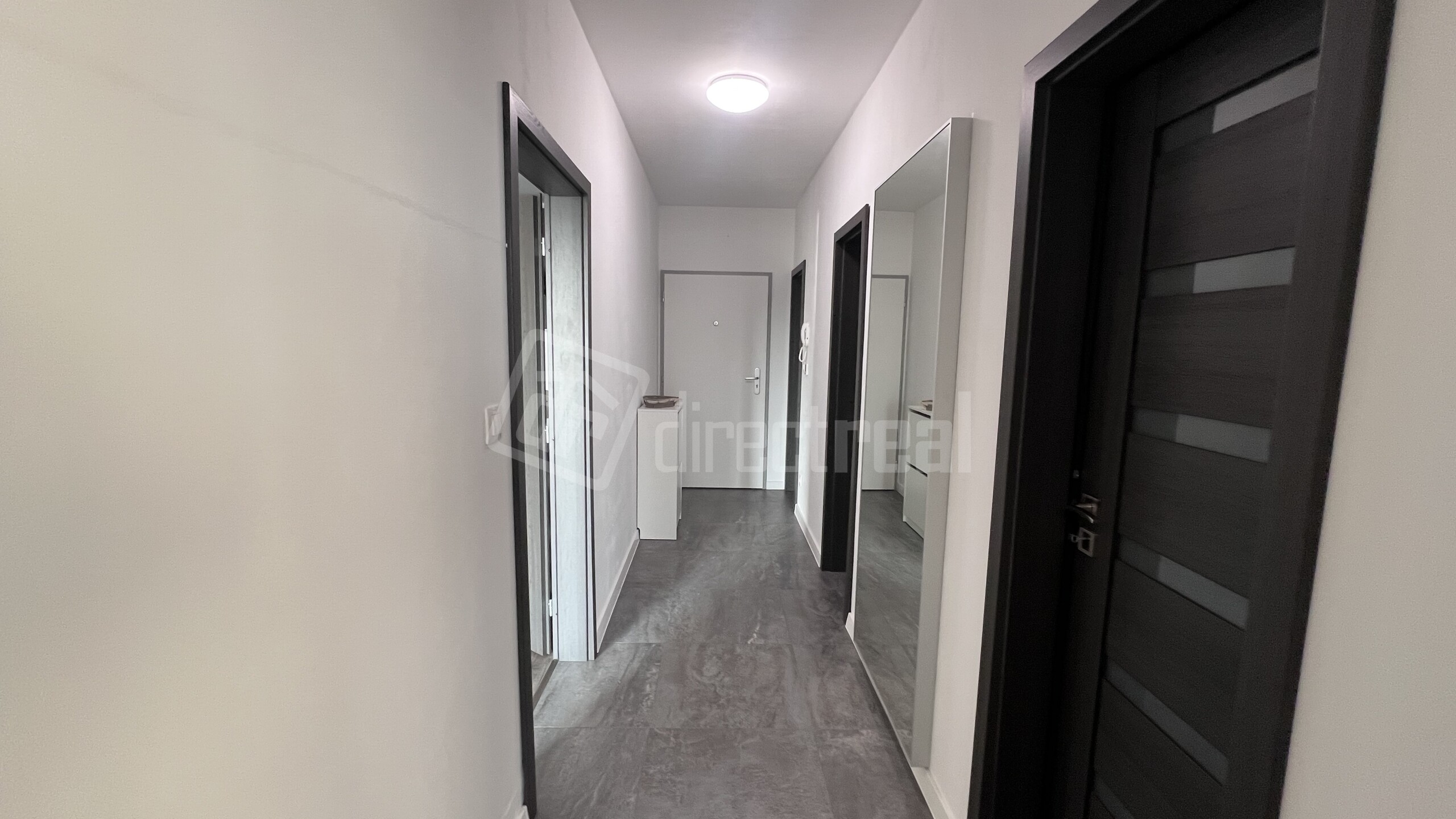 vstupná chodba, priestranná obývacia časť spojená s kuchyňou, 1x spálňa, 1x kúpeľňa so sprchovým kútom, samostatná toaleta, samostatný šatník.