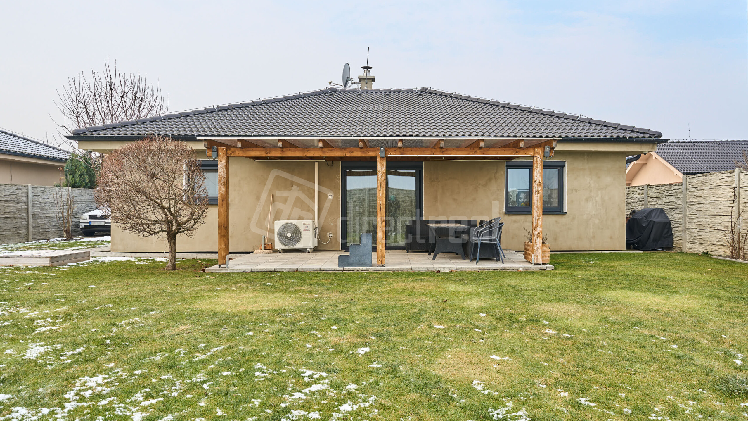K domu patrí terasa zo zámkovej dlažby o výmere 21m2, dvor s dokončenou terénnou úpravou a oplotením.